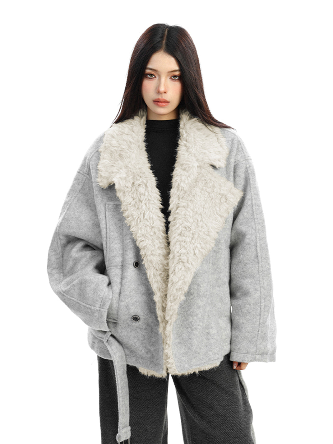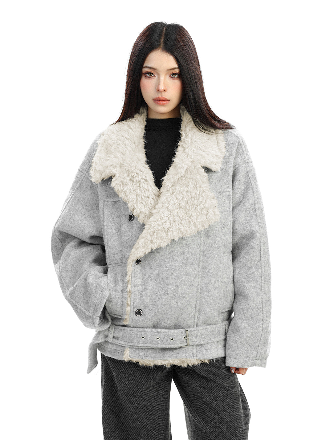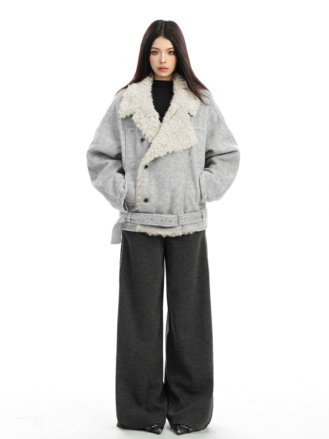 BIGGOLD | Shearling-Lined Belted Suede Jacket