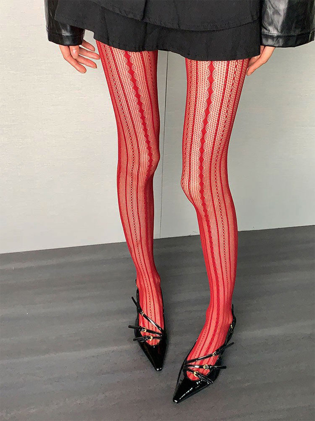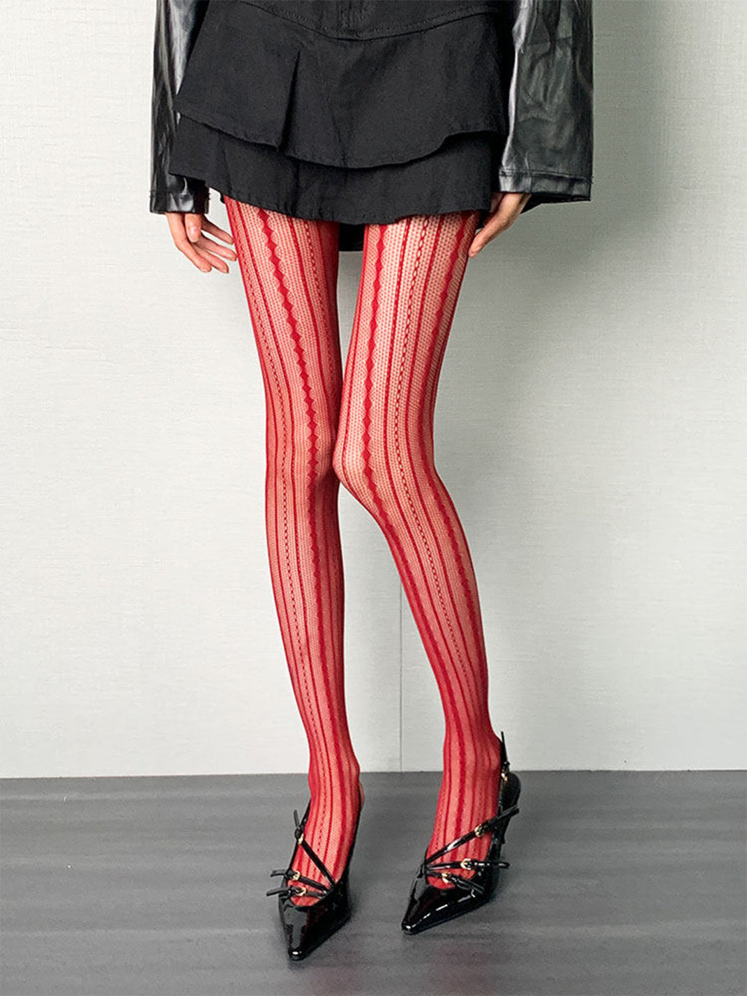 Bokior | Vintage Red Vertical Striped Mesh Pantyhose