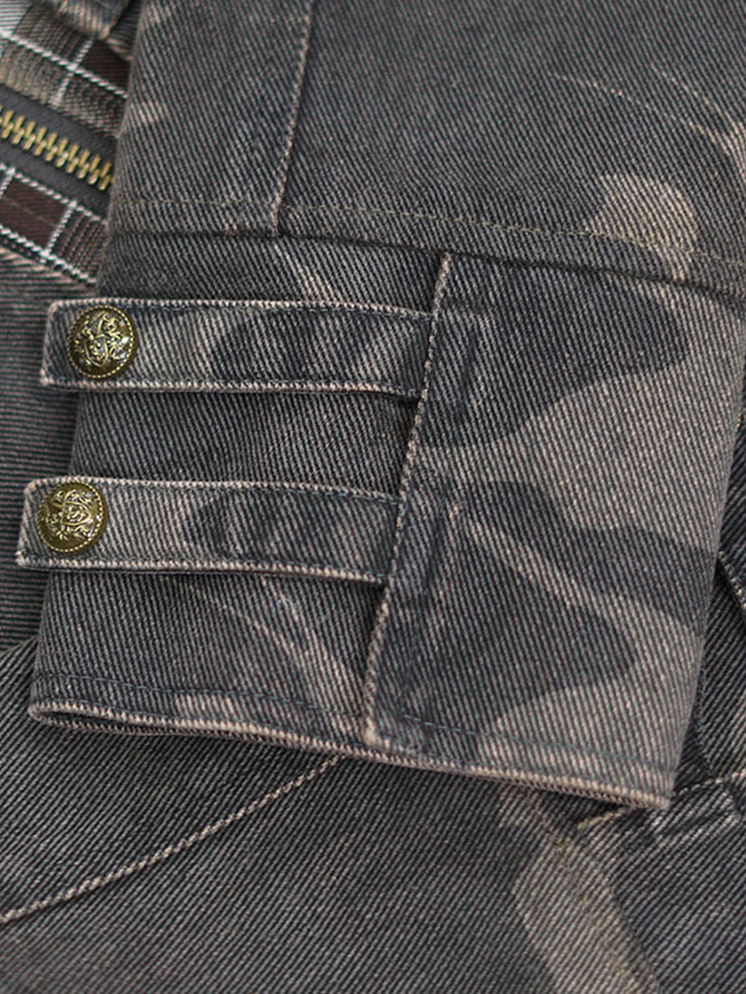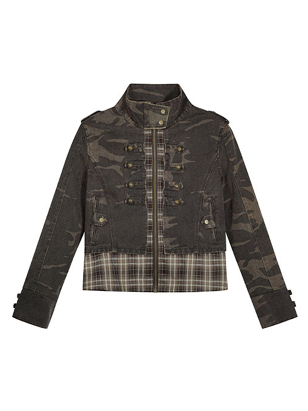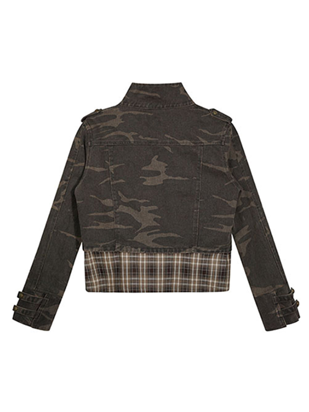 CestNous | Camo Patchwork Cropped Jacket with Zipper Skip to content