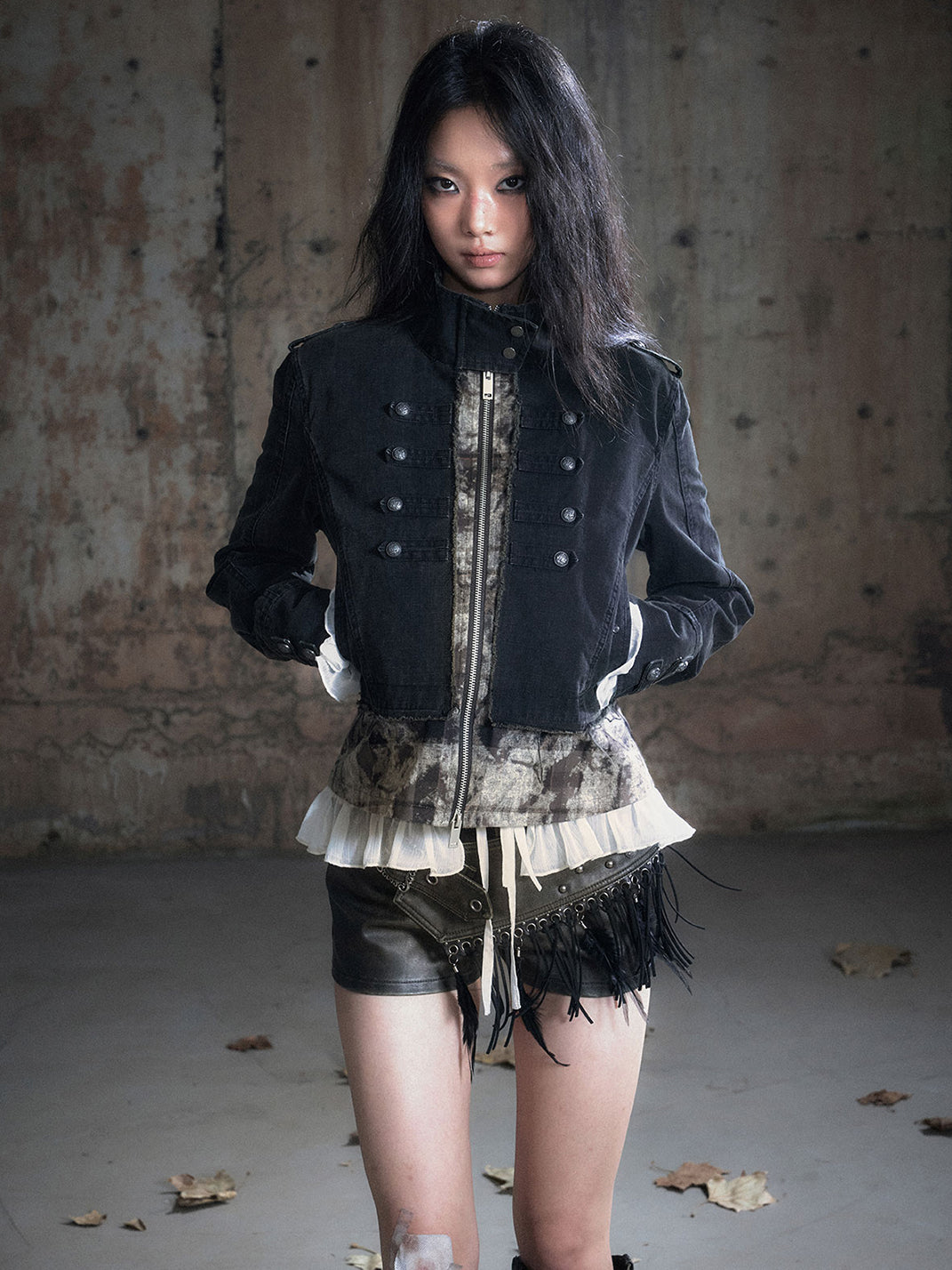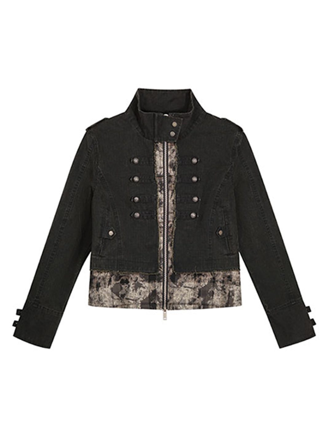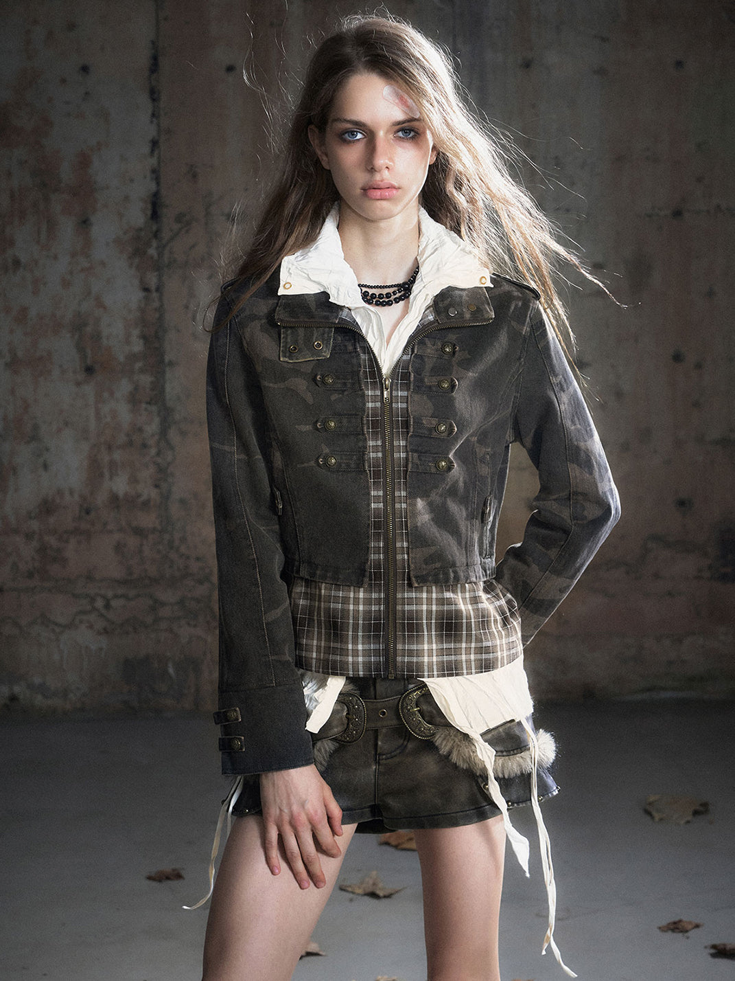 CestNous | Camo Patchwork Cropped Jacket with Zipper Skip to content
