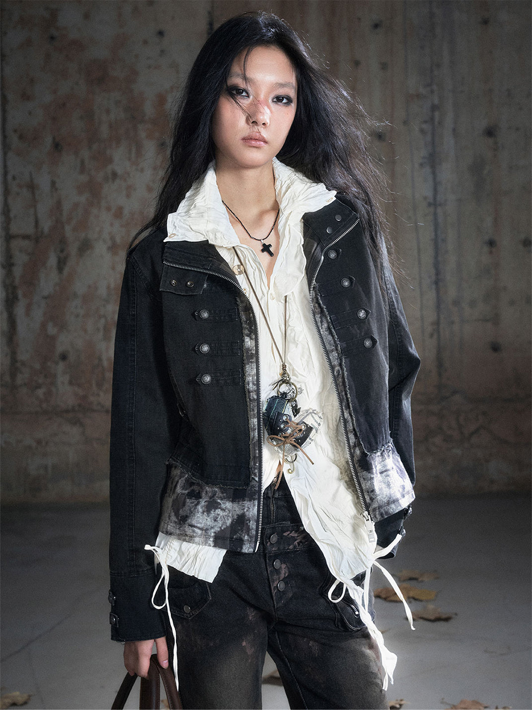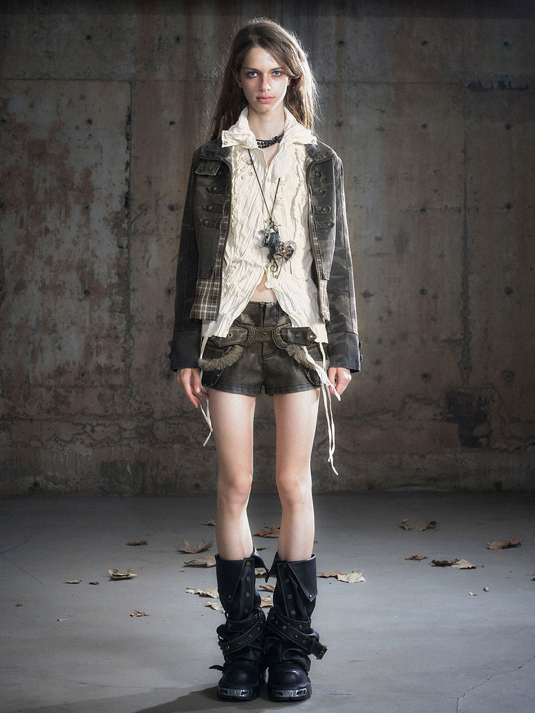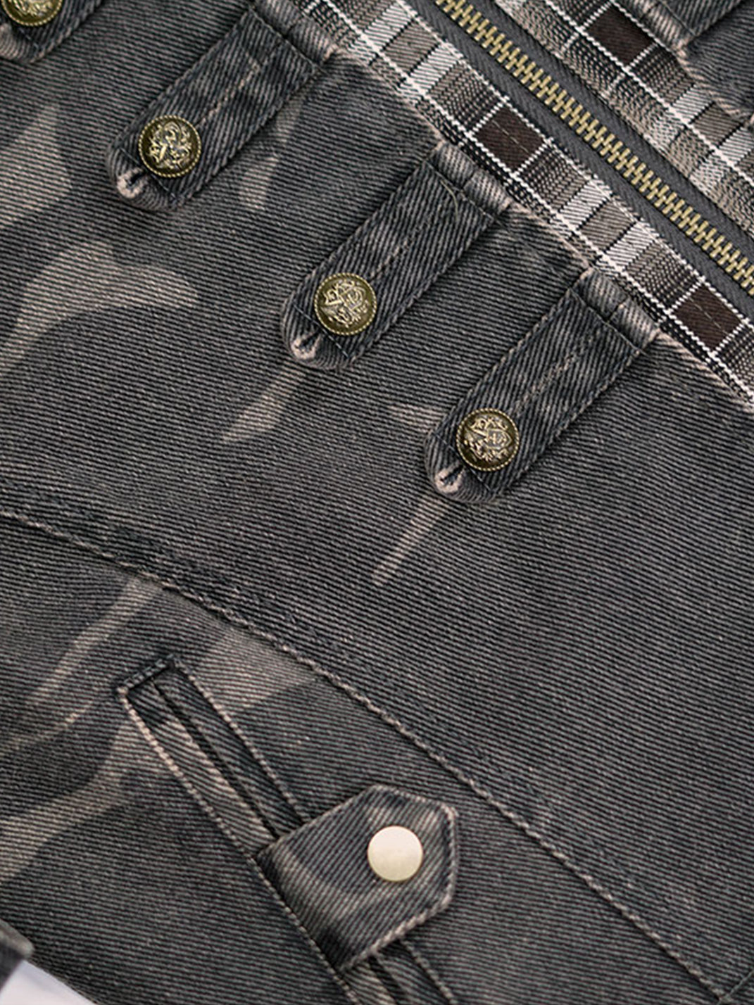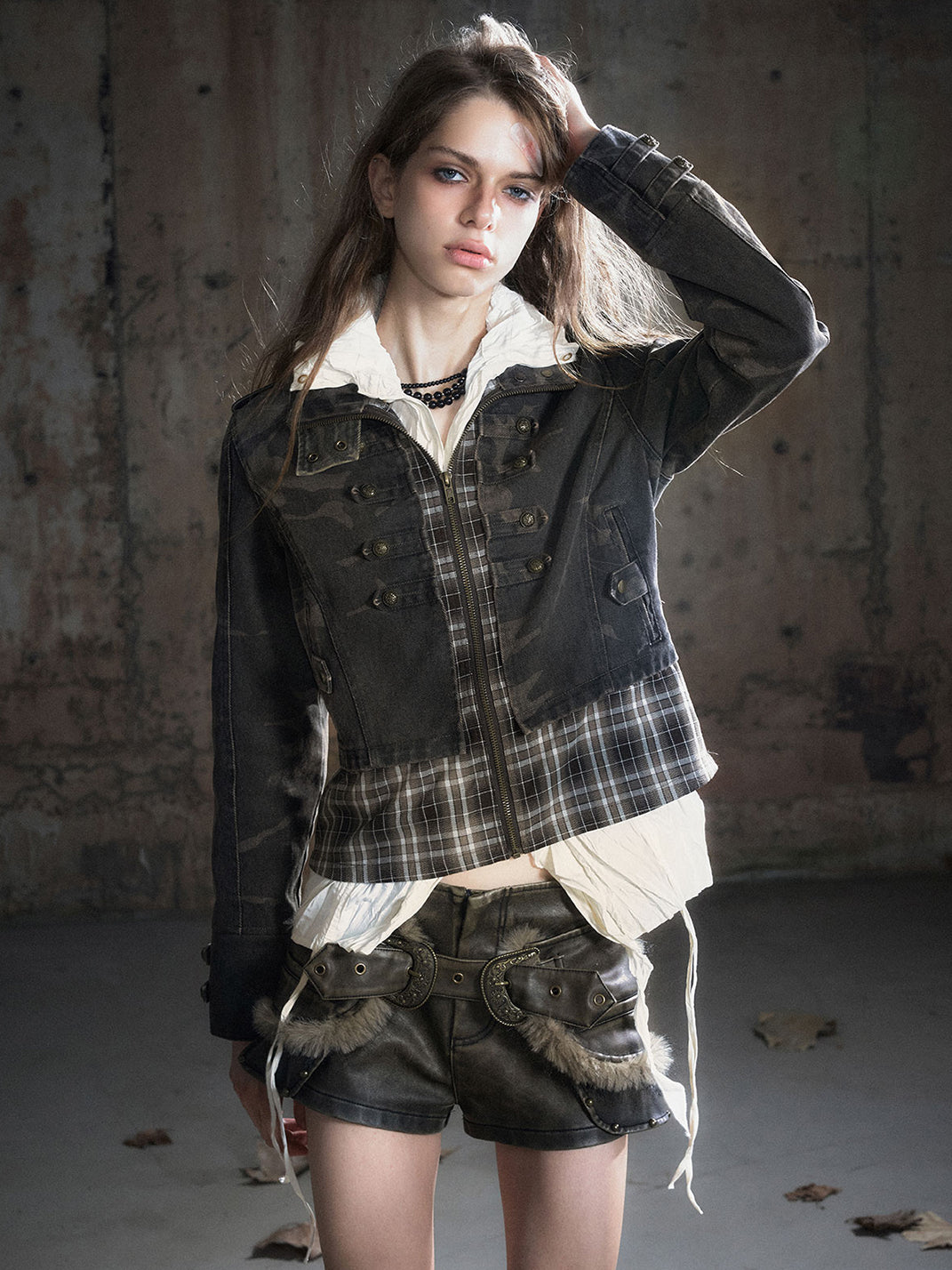 CestNous | Camo Patchwork Cropped Jacket with Zipper