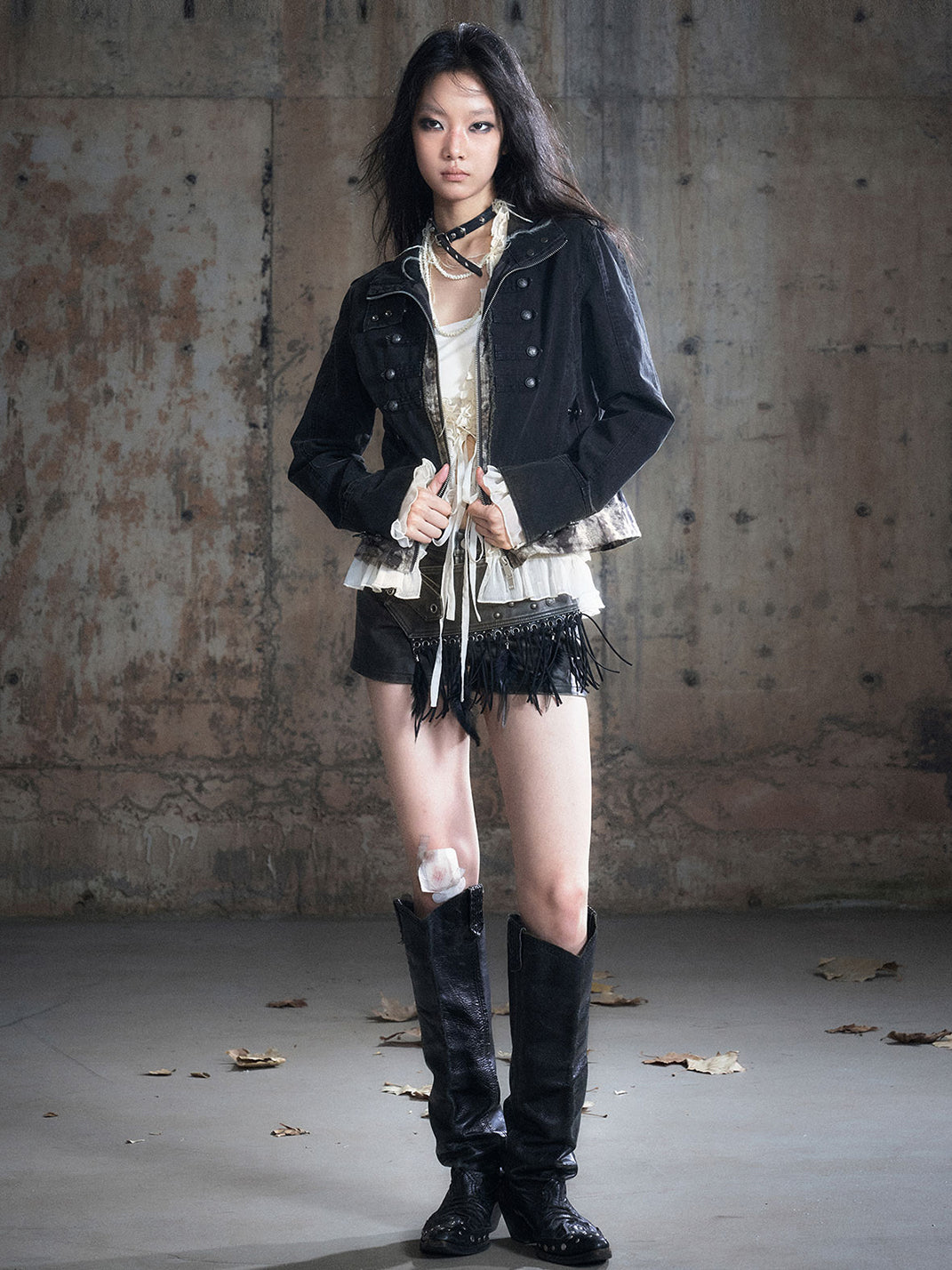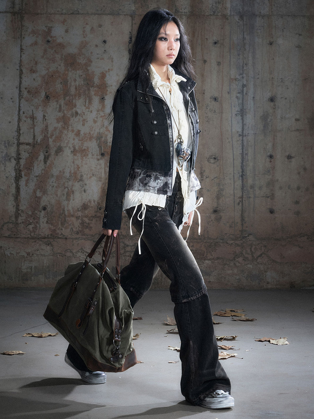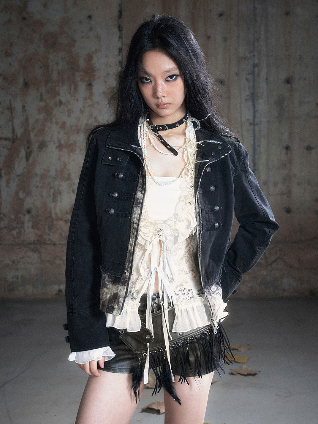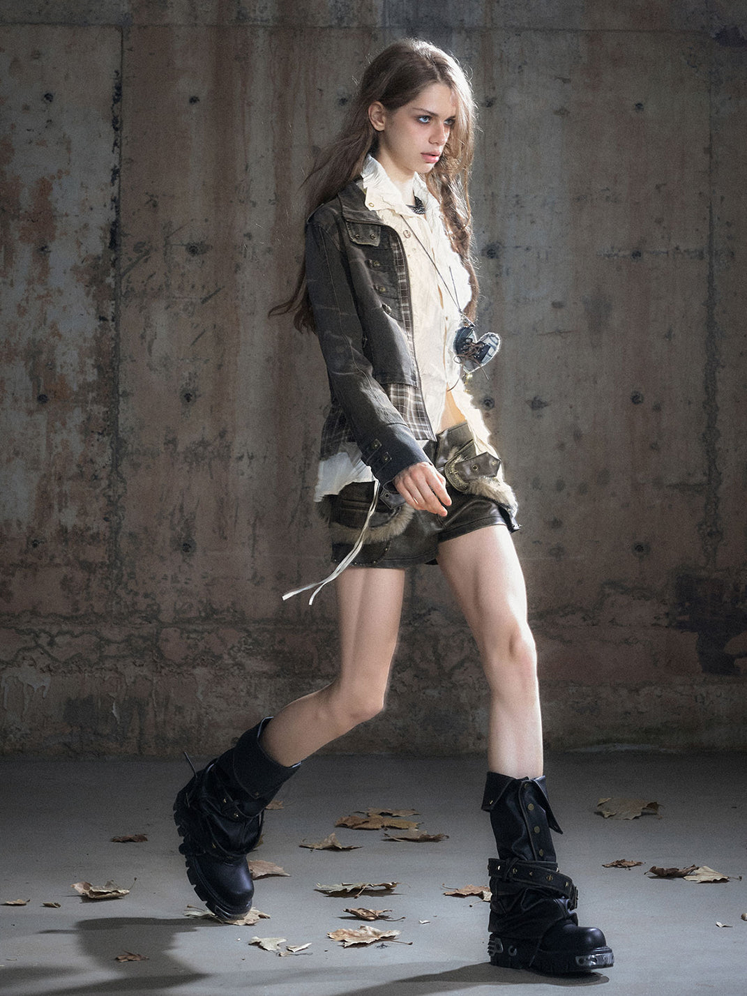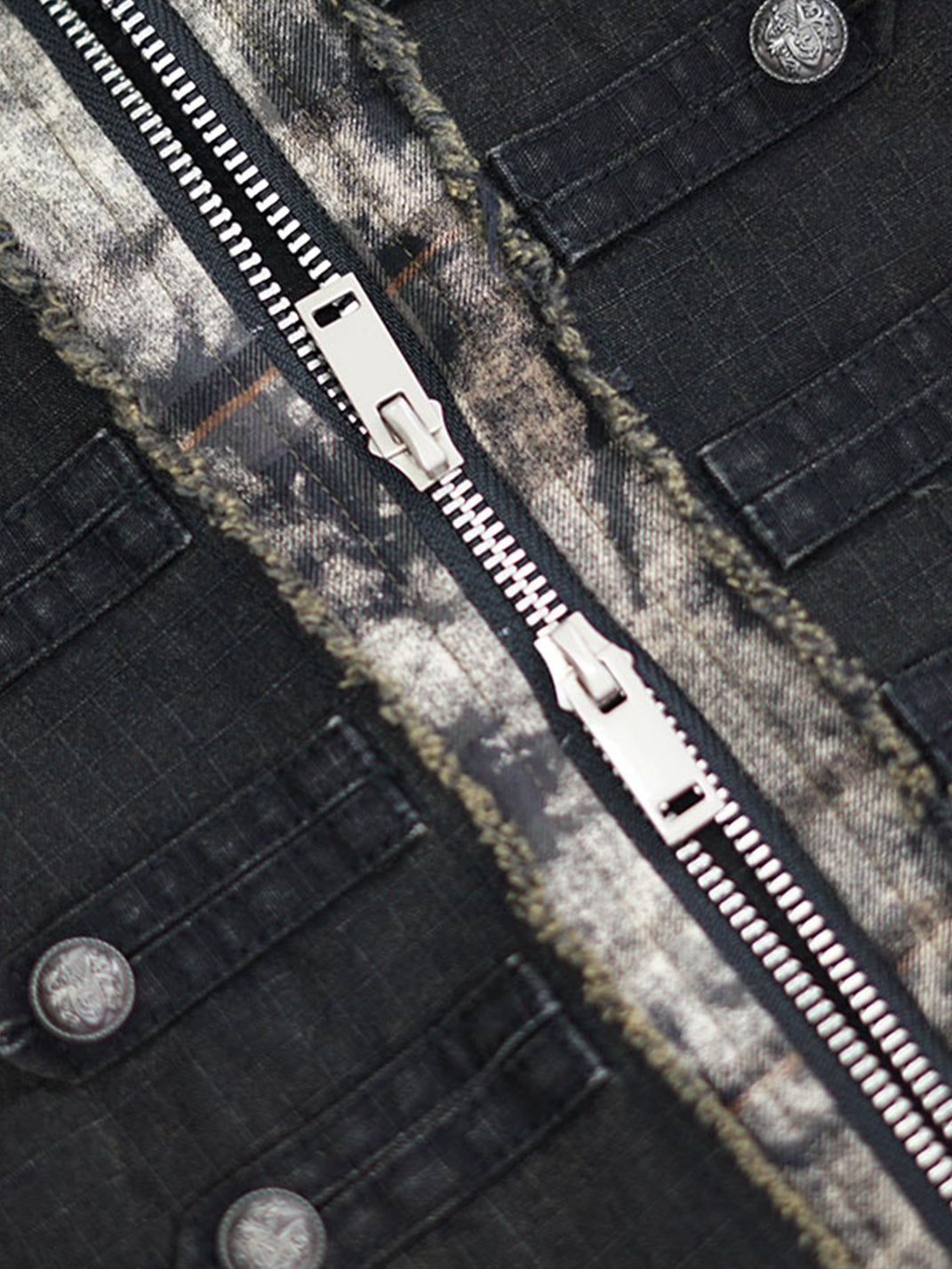 CestNous | Camo Patchwork Cropped Jacket with Zipper