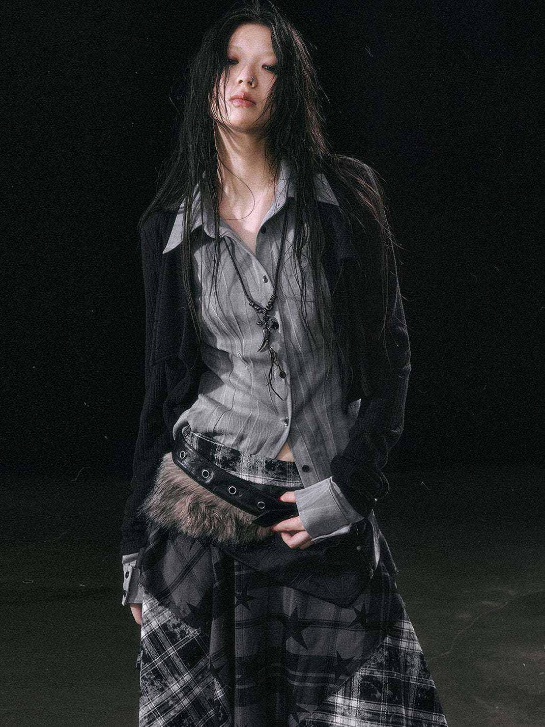 CestNous | Color-Block Faux Layered Long Sleeve Shirt