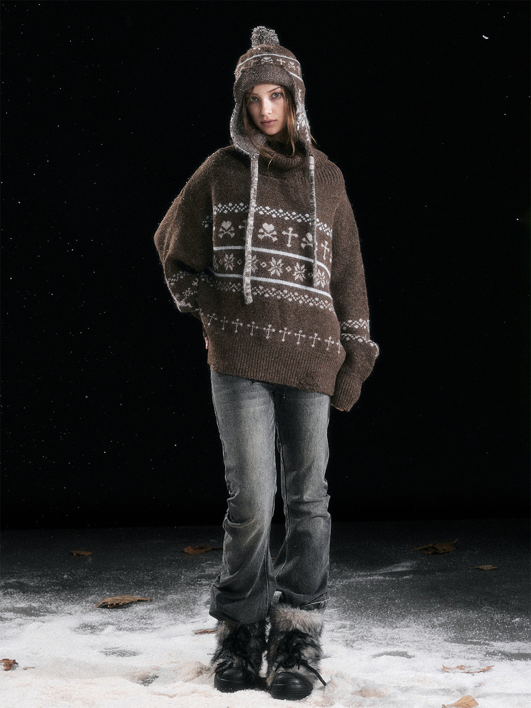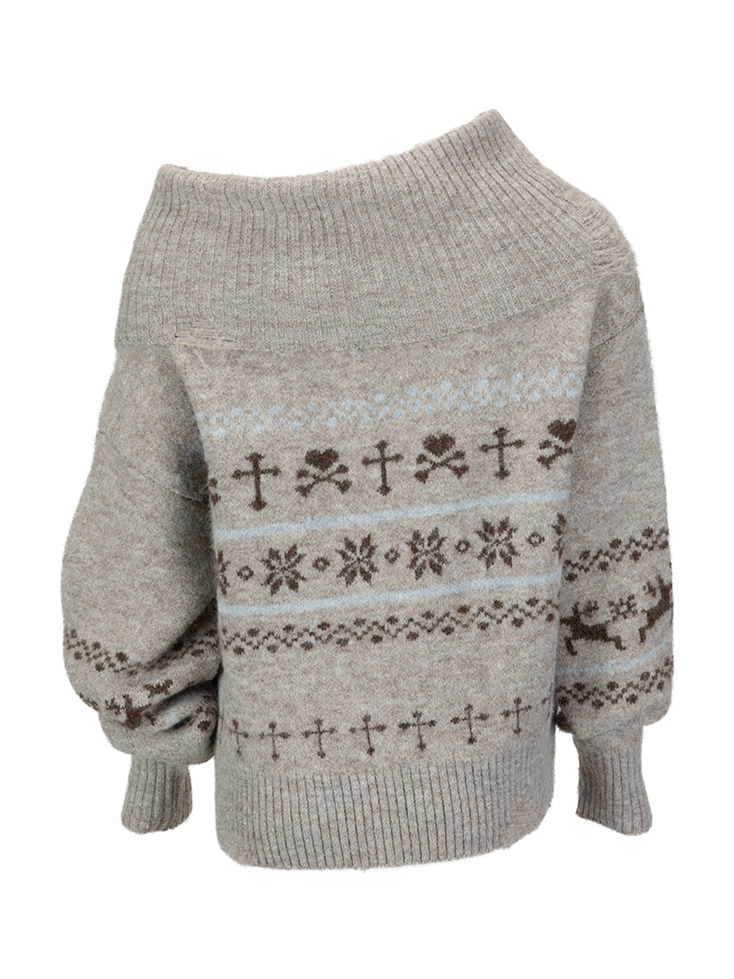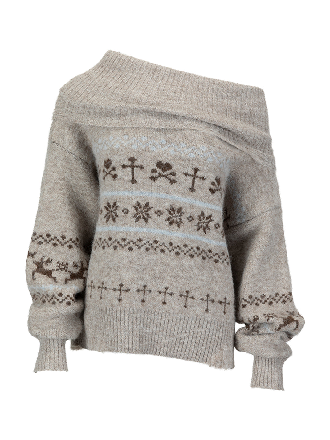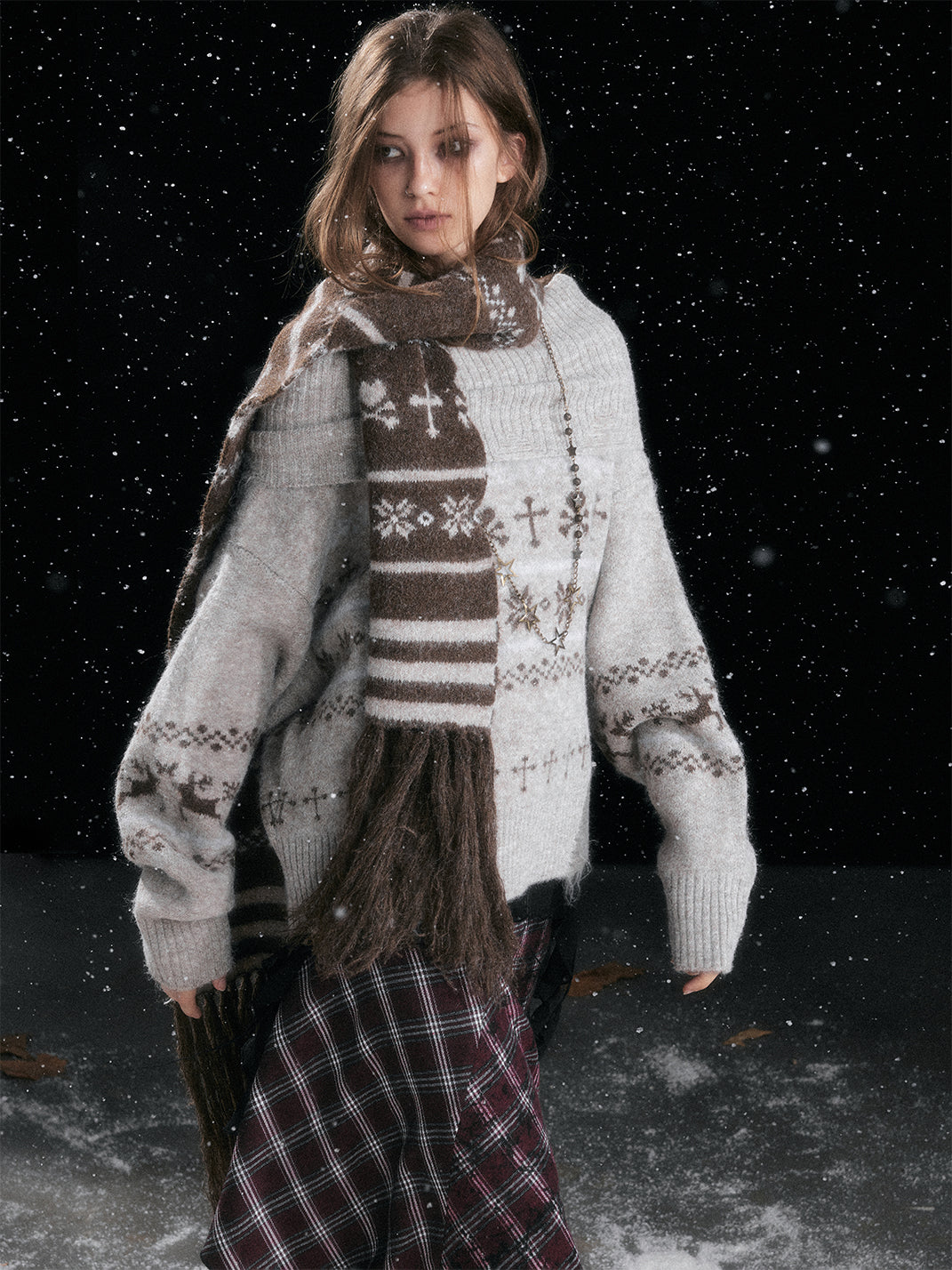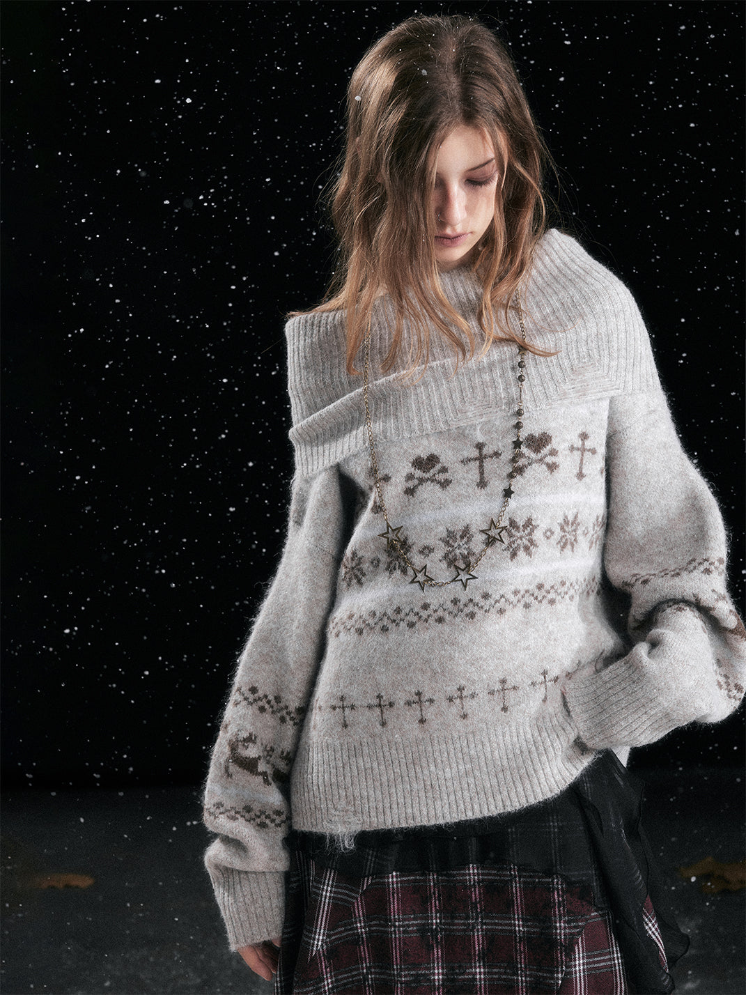 CestNous | Cross Pattern Fair Isle Vintage Knit Sweater