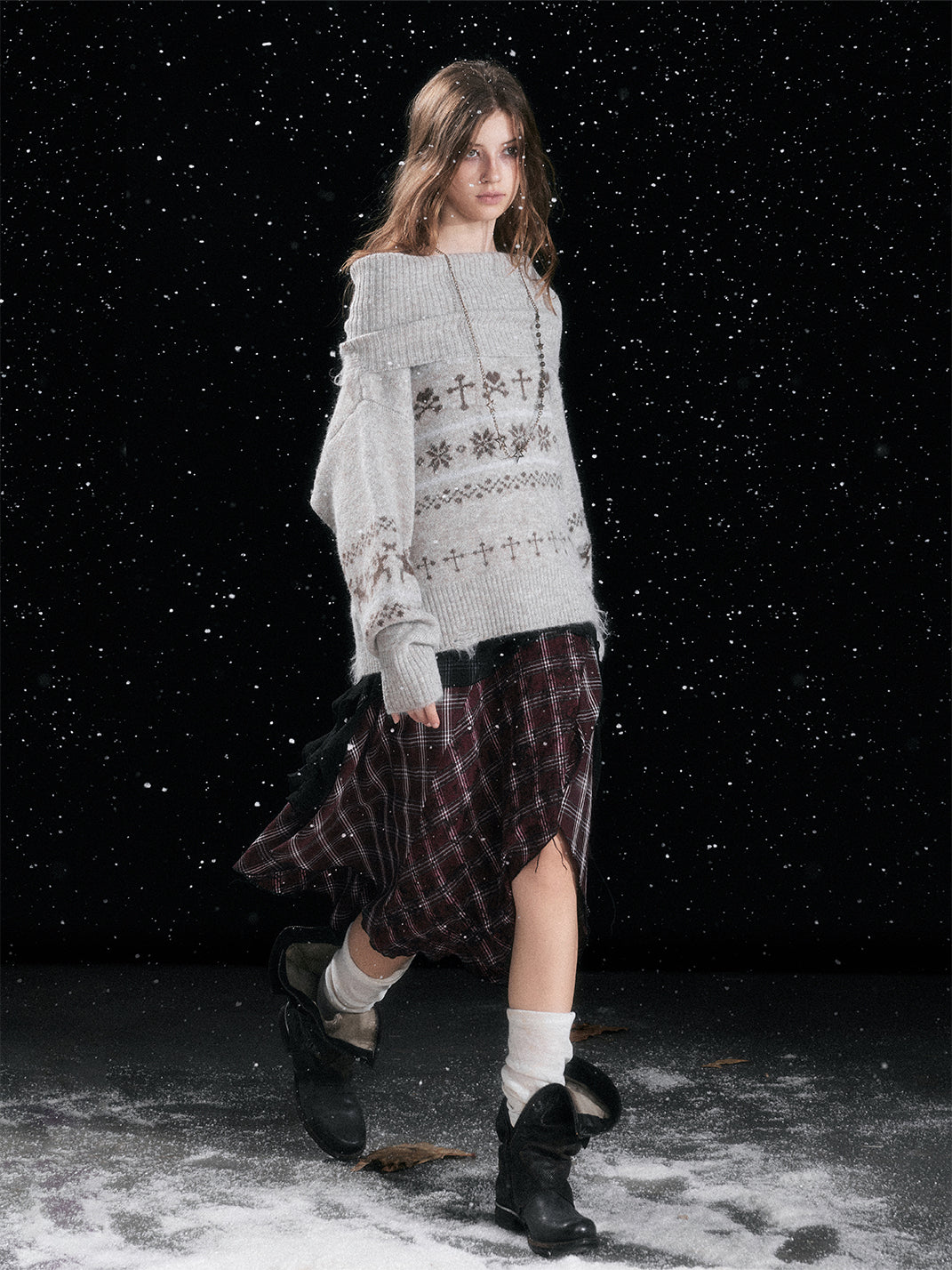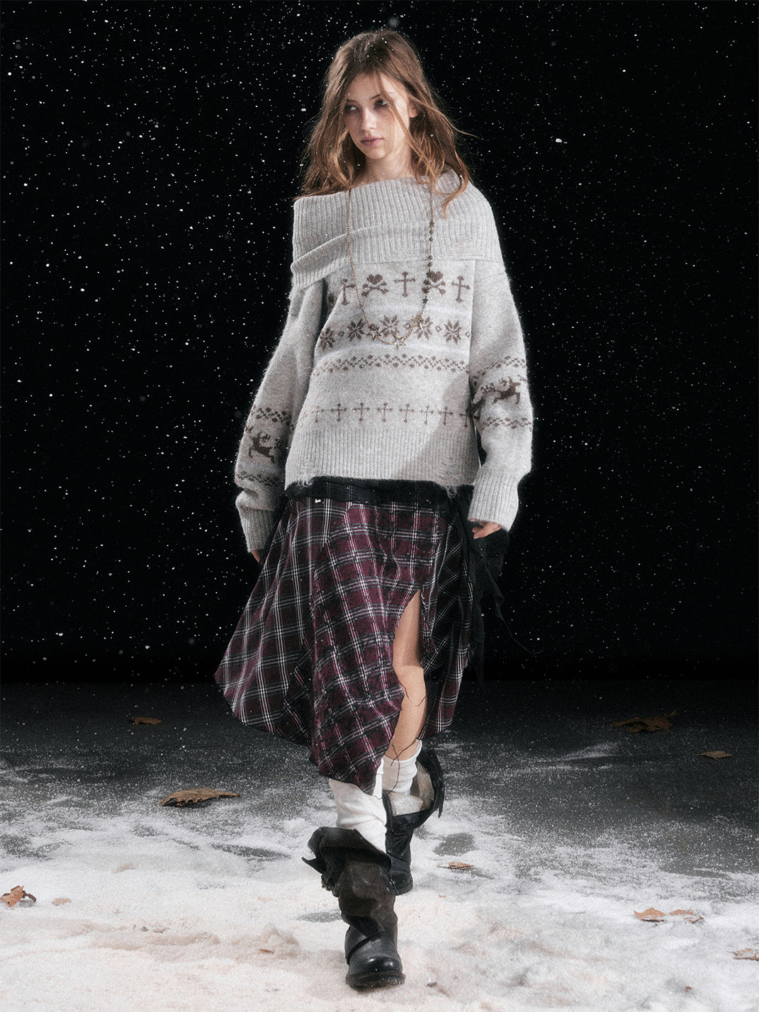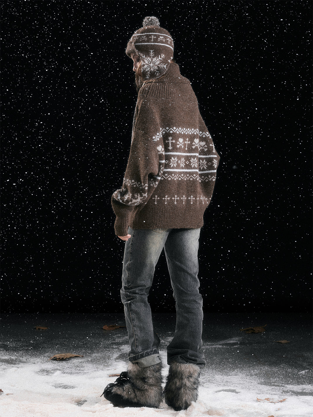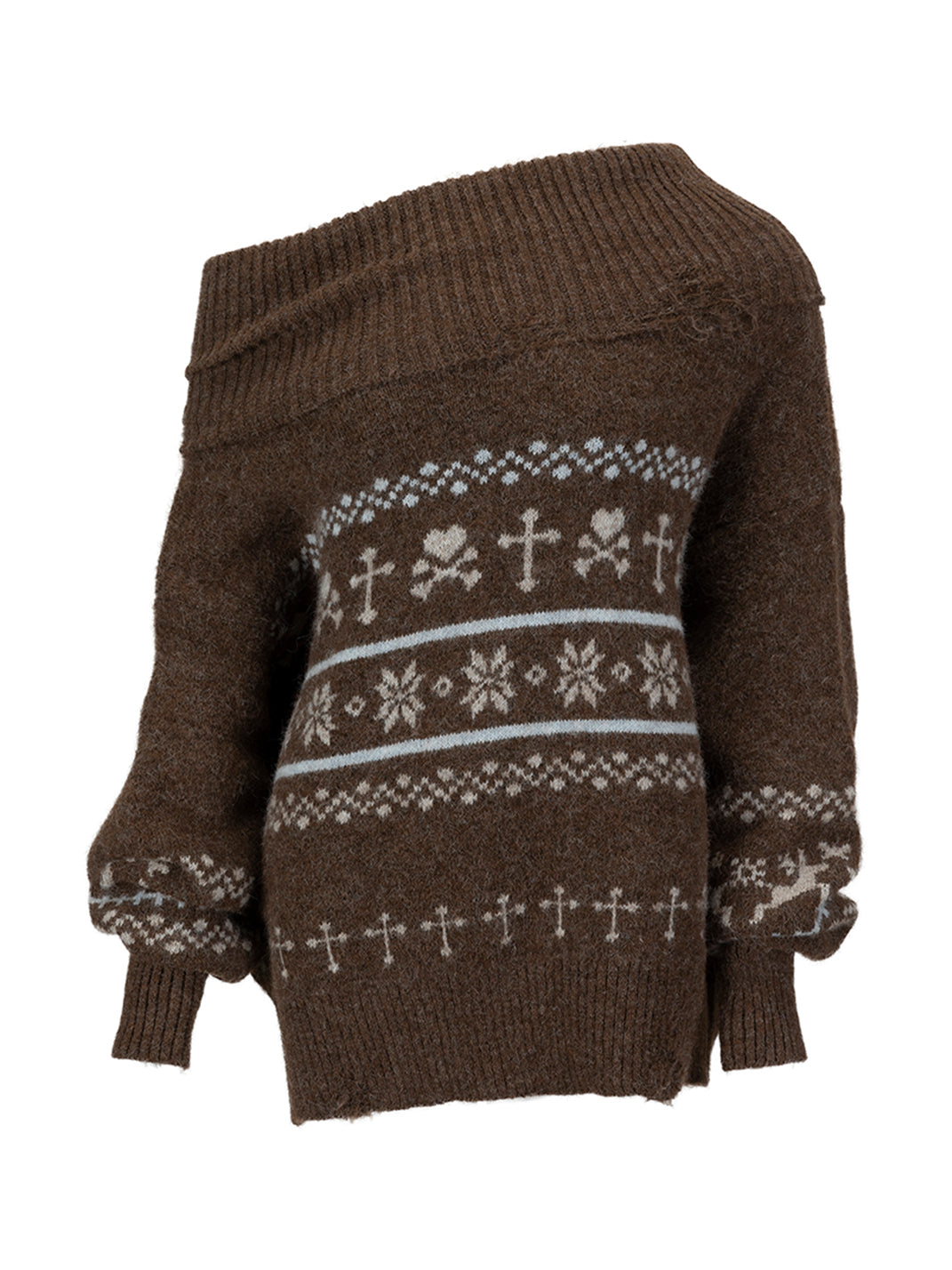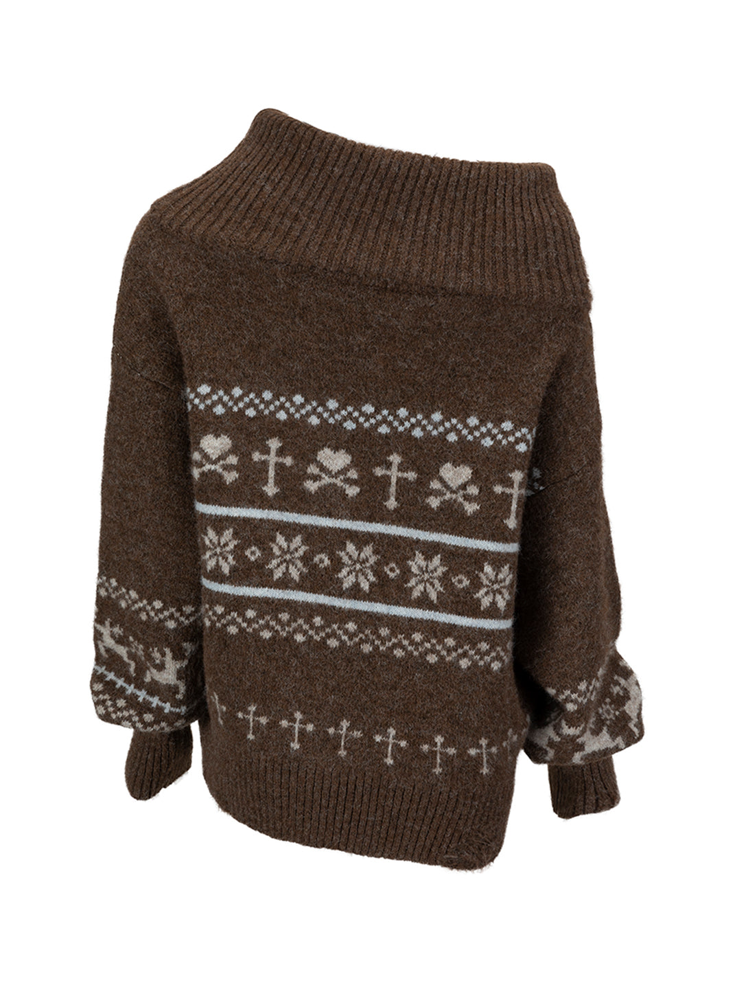 CestNous | Cross Pattern Fair Isle Vintage Knit Sweater