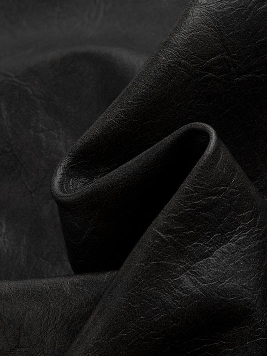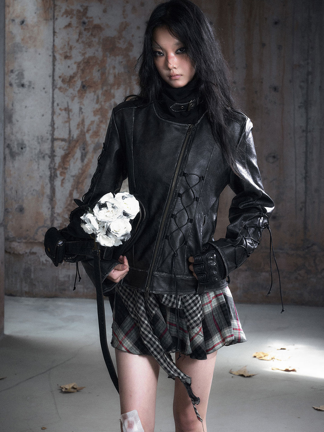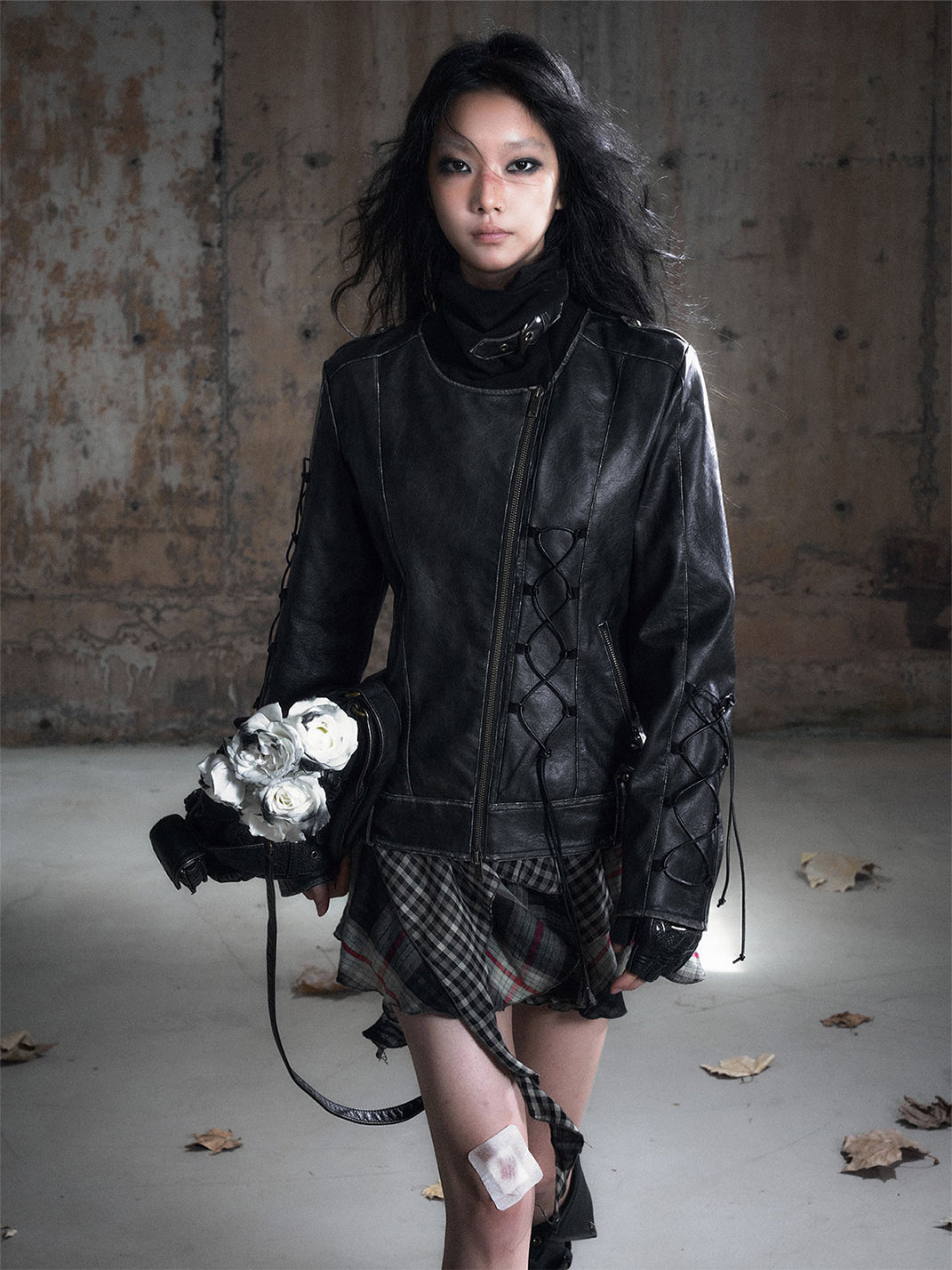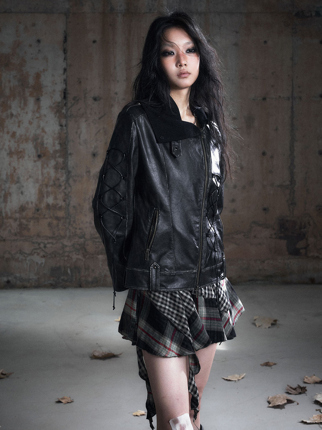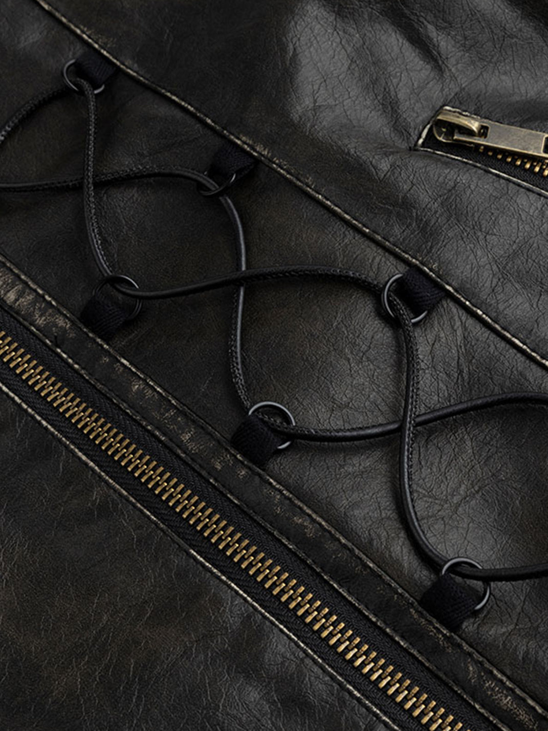 CestNous | Vintage Leather Jacket with Knit High Collar