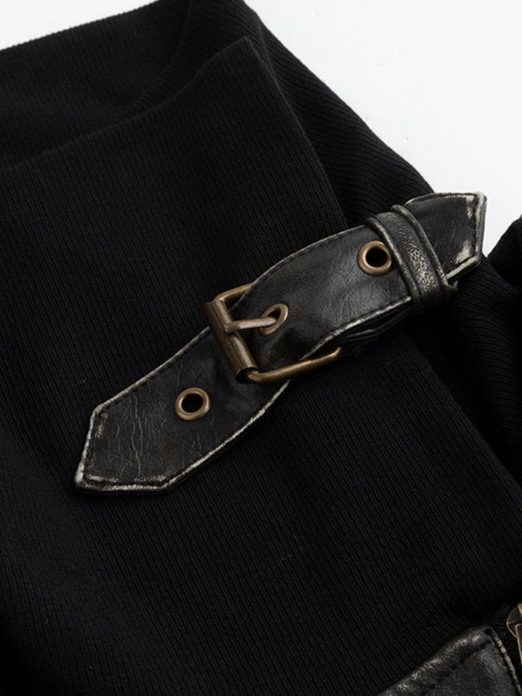 CestNous | Vintage Leather Jacket with Knit High Collar Skip to content