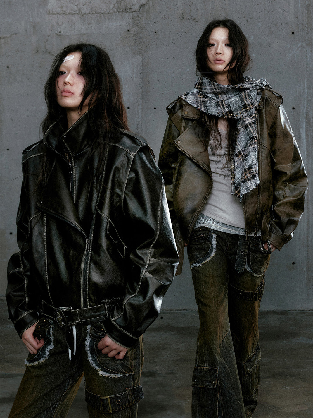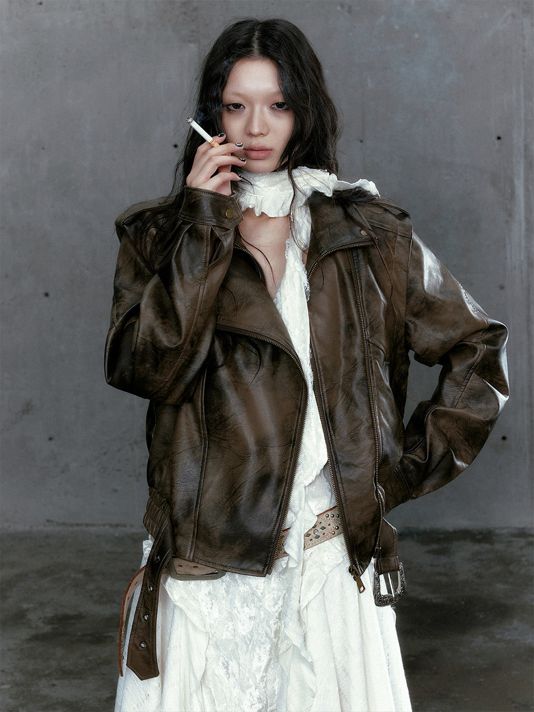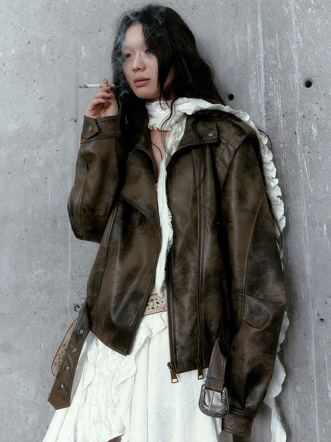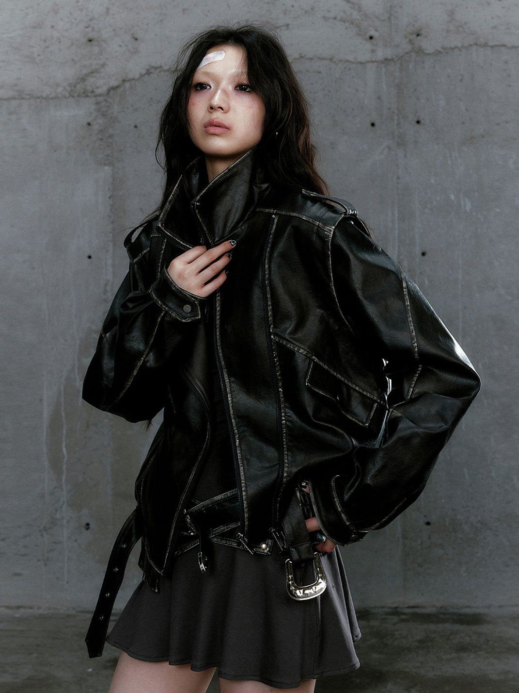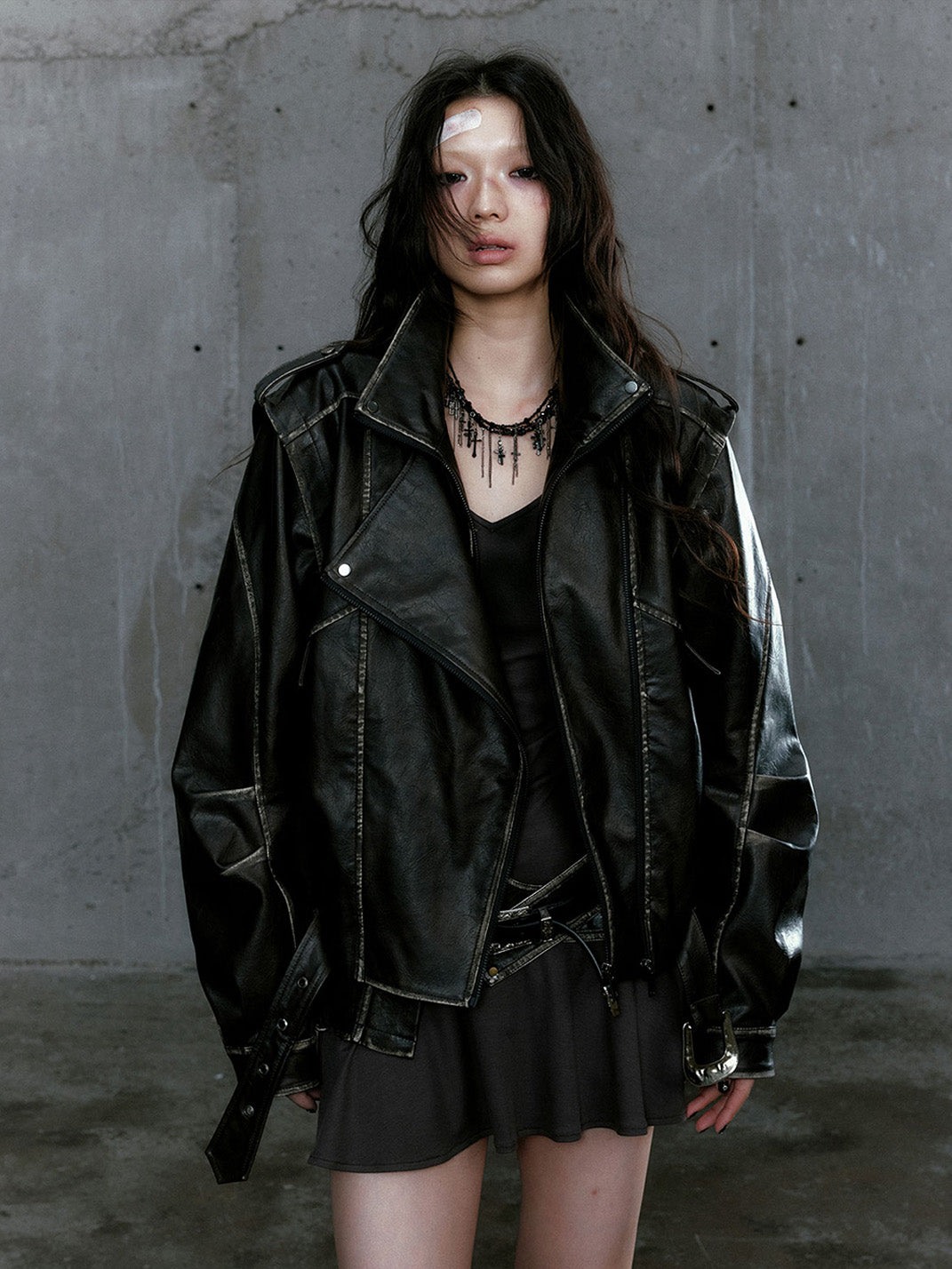 CestNous | Vintage Split Zipper Leather Biker Jacket
