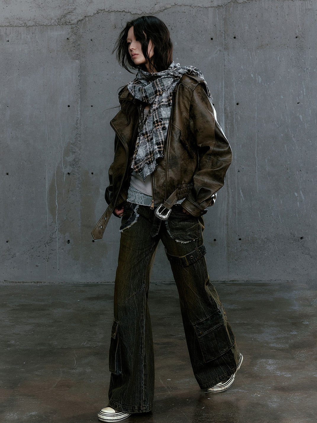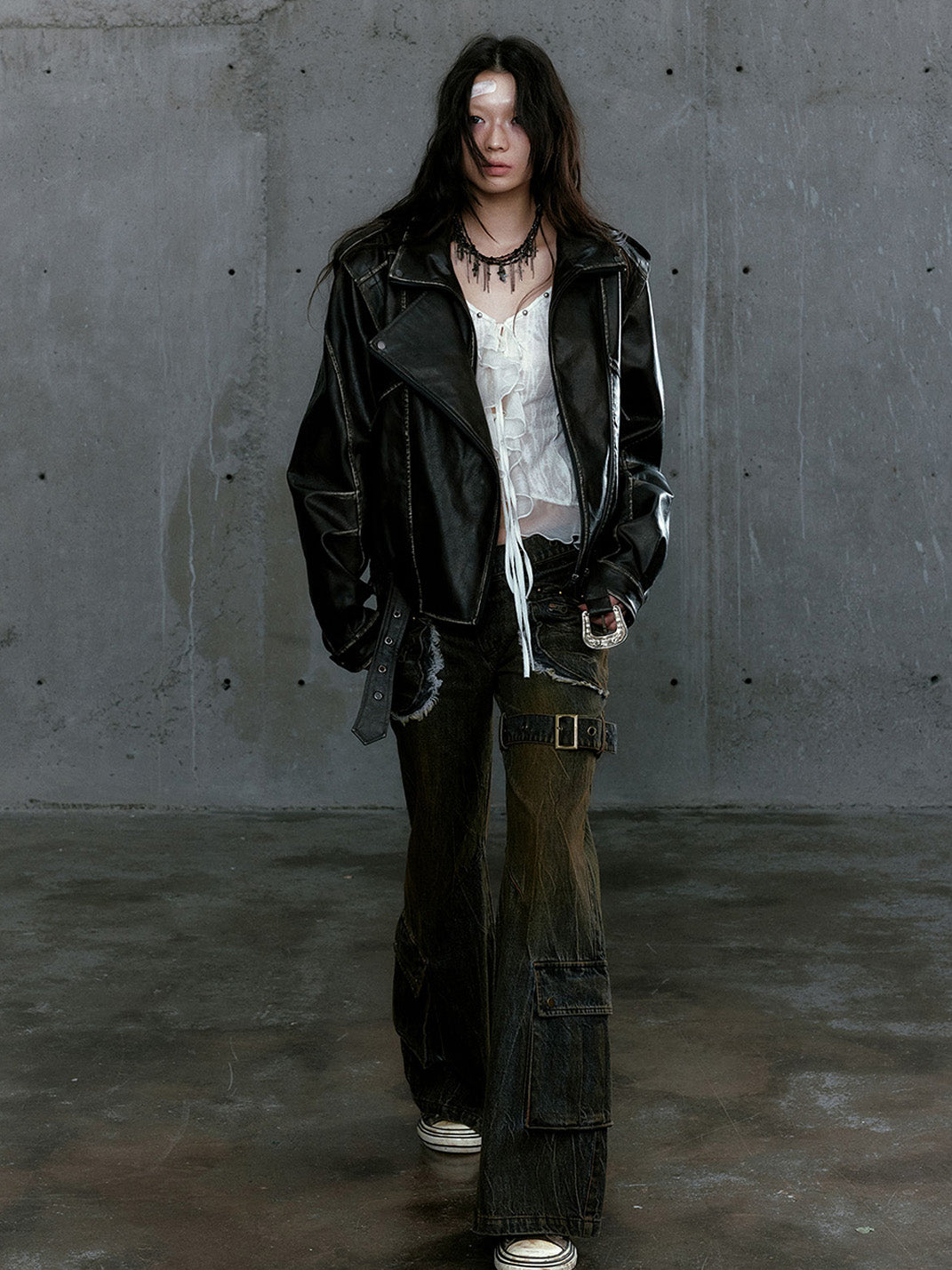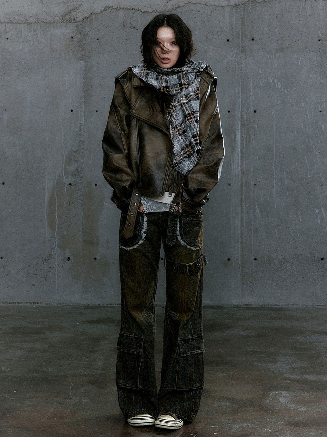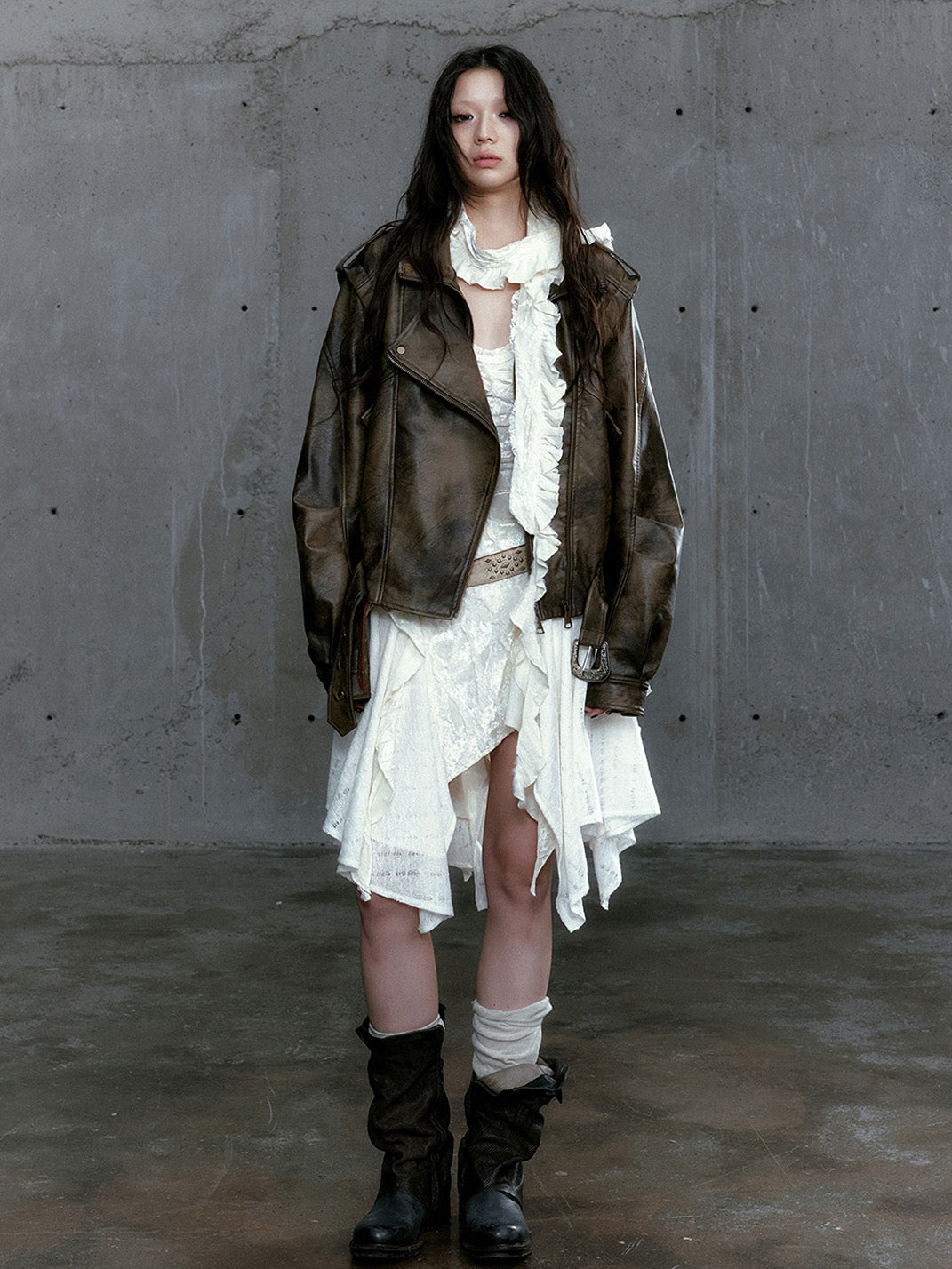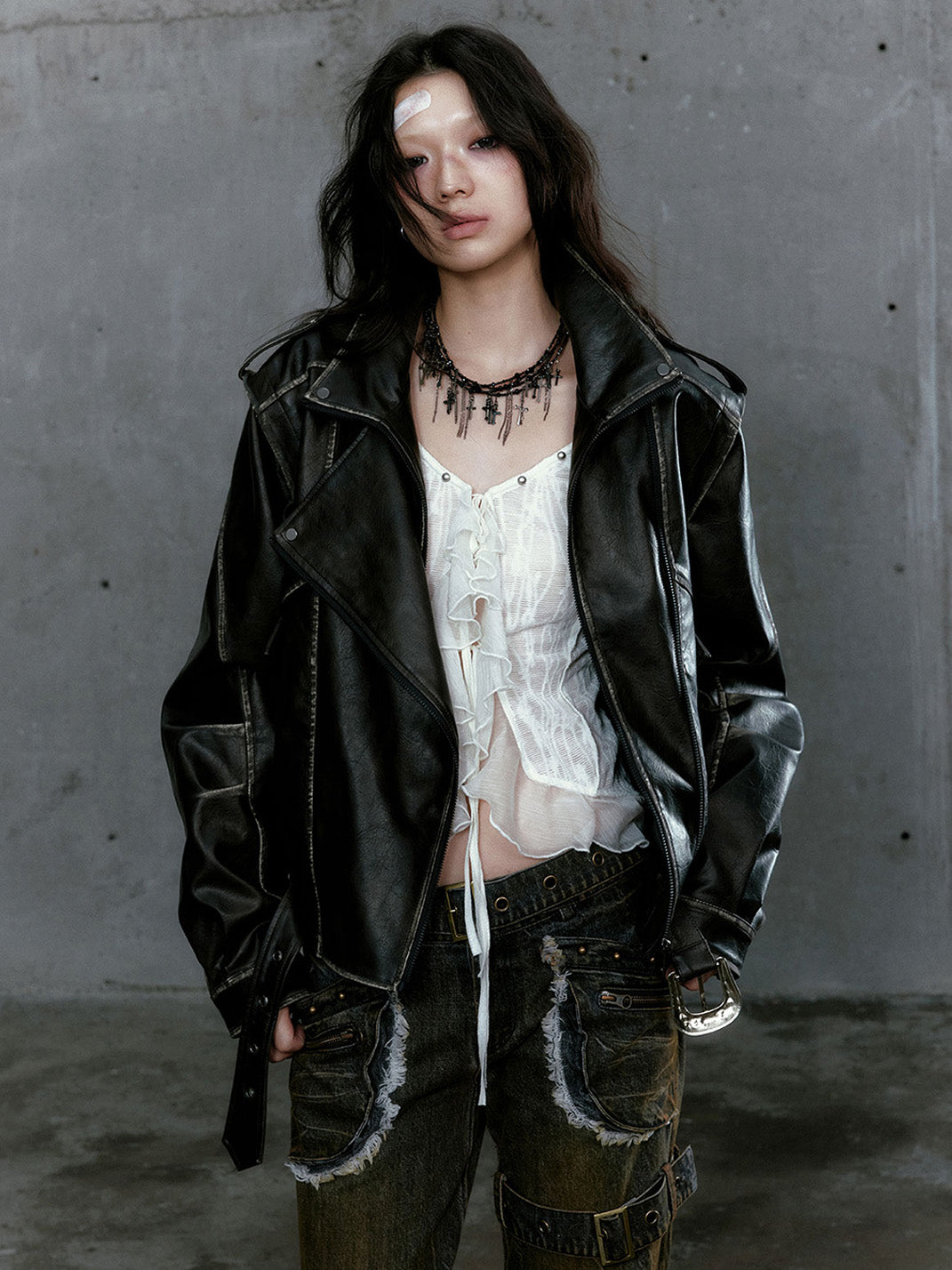 CestNous | Vintage Split Zipper Leather Biker Jacket