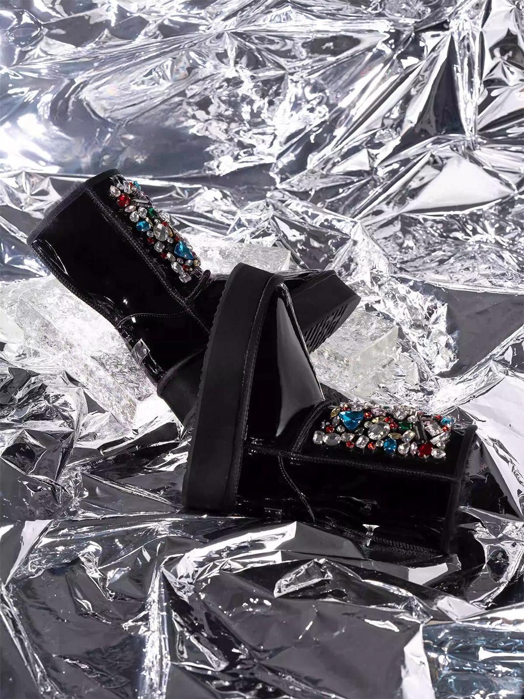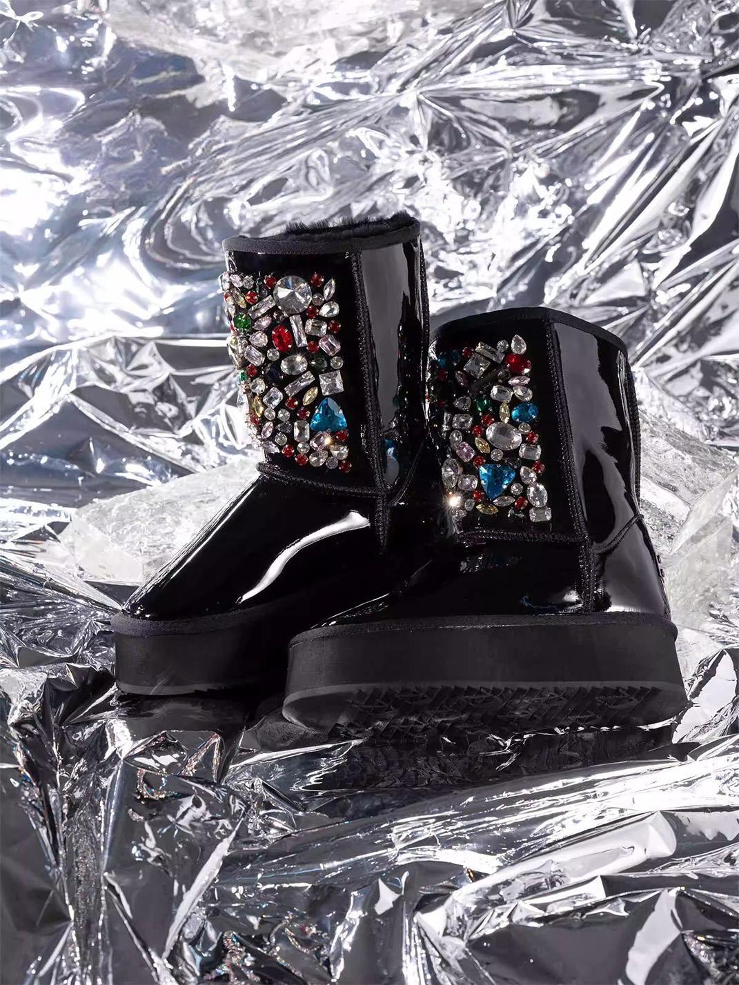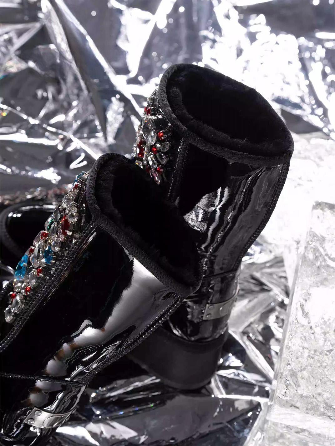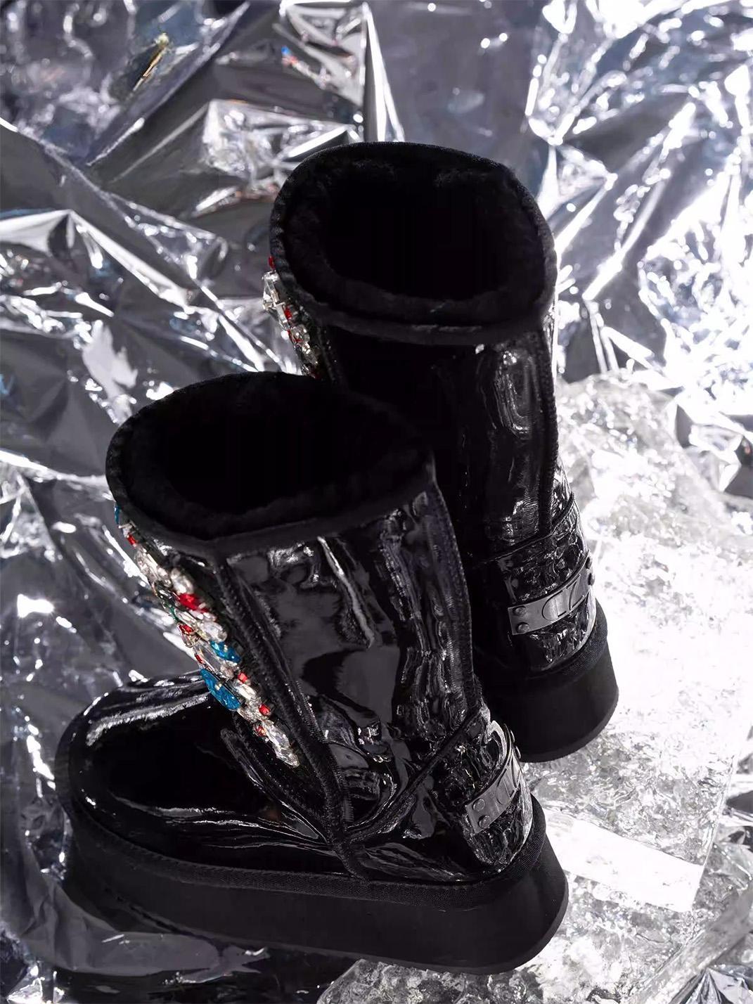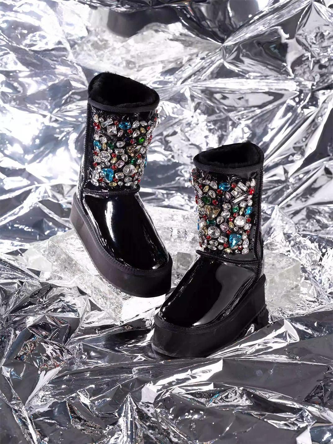 COMME ZOEY | Rhinestone Embellished Sheepskin Fleece Thick Sole Winter Skip to content