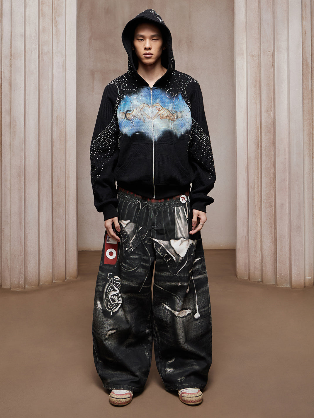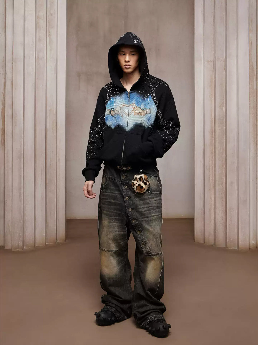 DND4DES | Graphic Print Hooded Zip-Up Sweatshirt-Black Skip to content