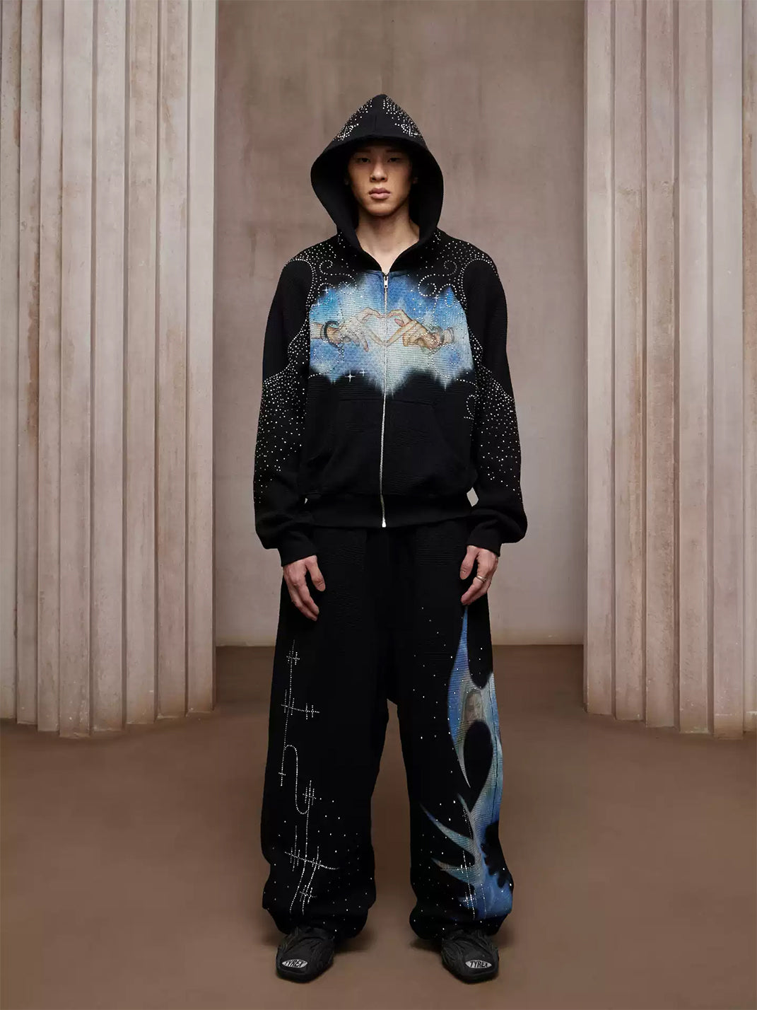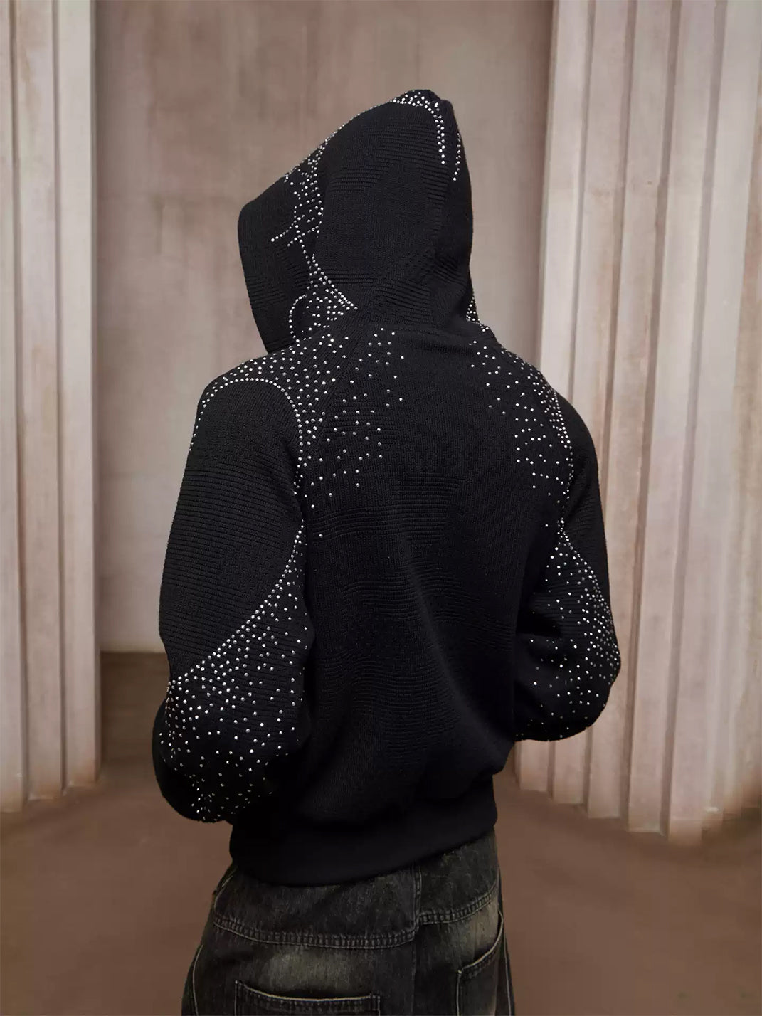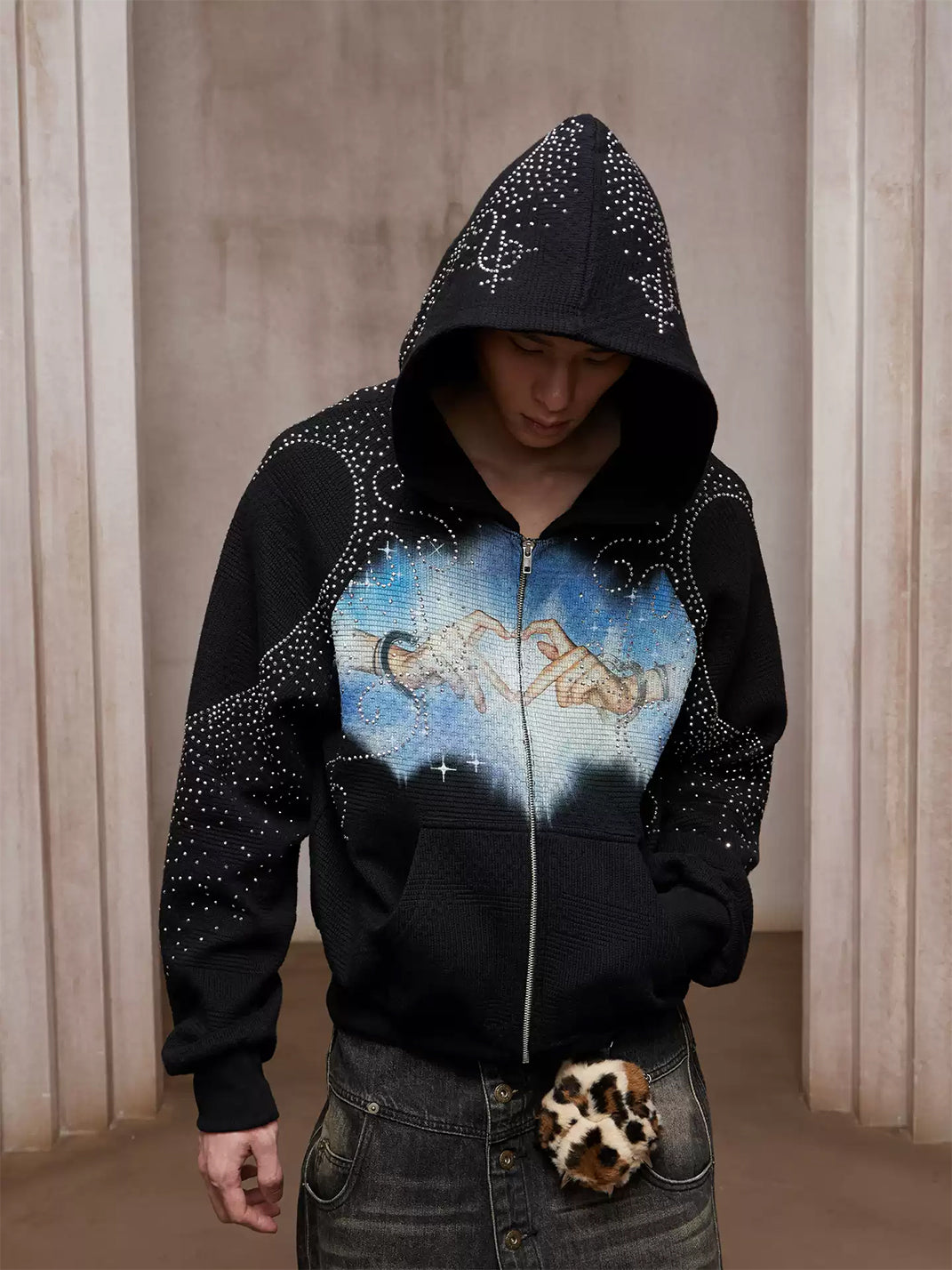 DND4DES | Graphic Print Hooded Zip-Up Sweatshirt-Black