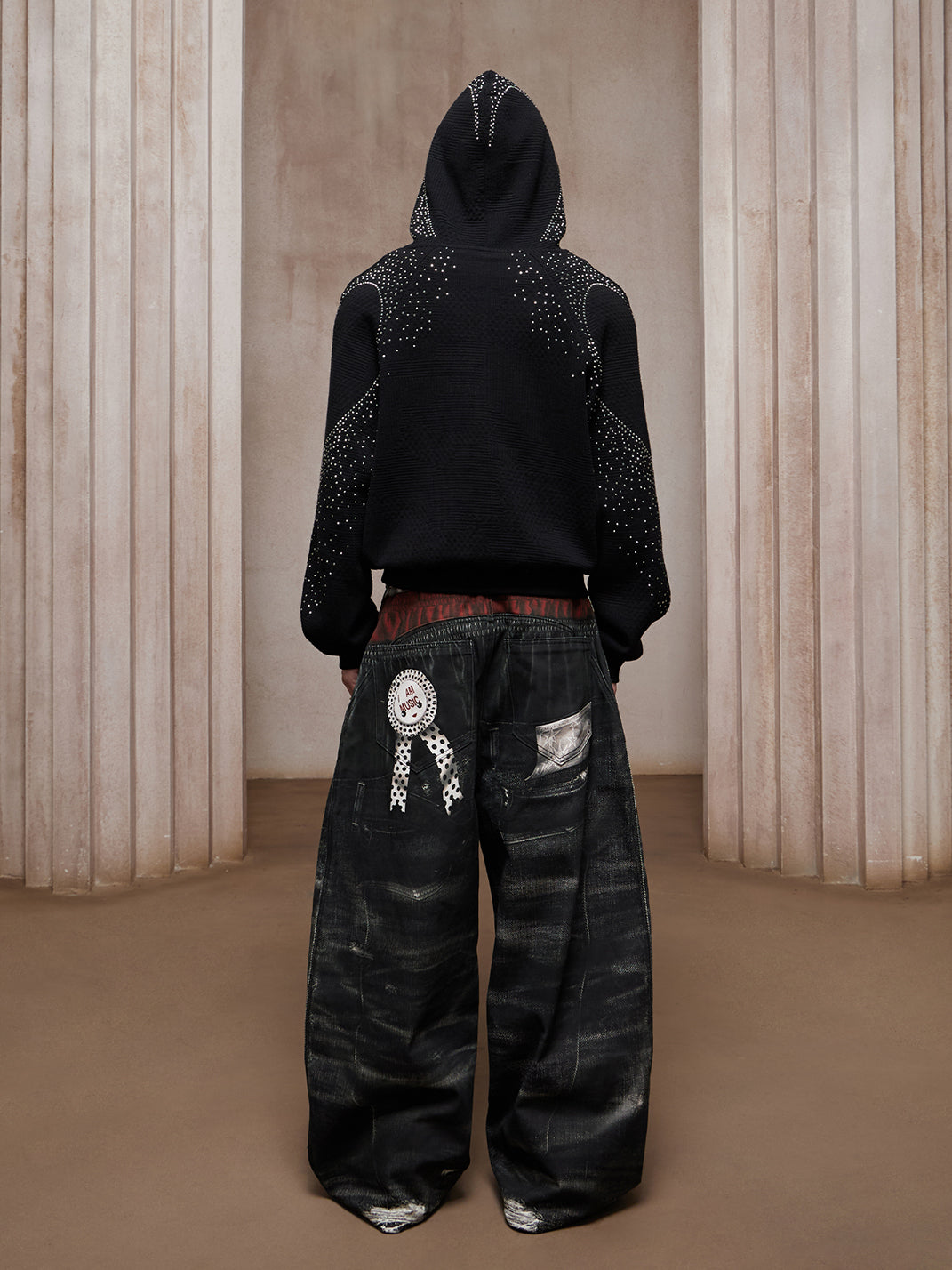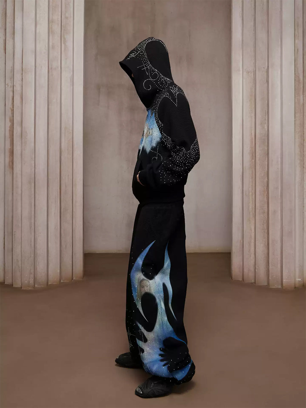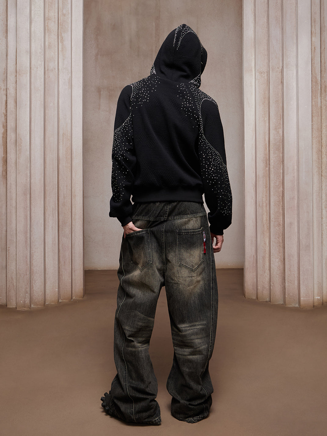 DND4DES | Graphic Print Hooded Zip-Up Sweatshirt-Black