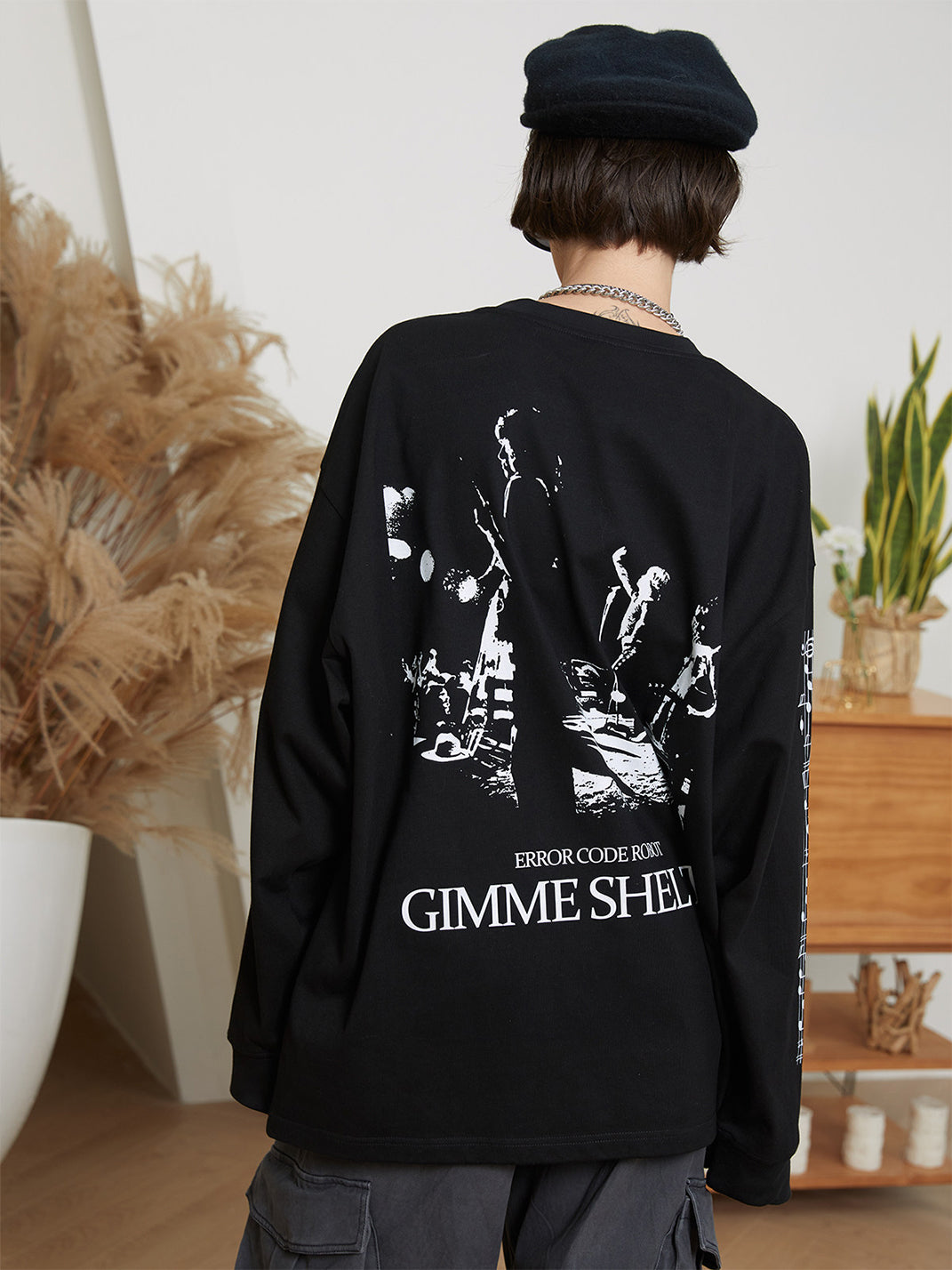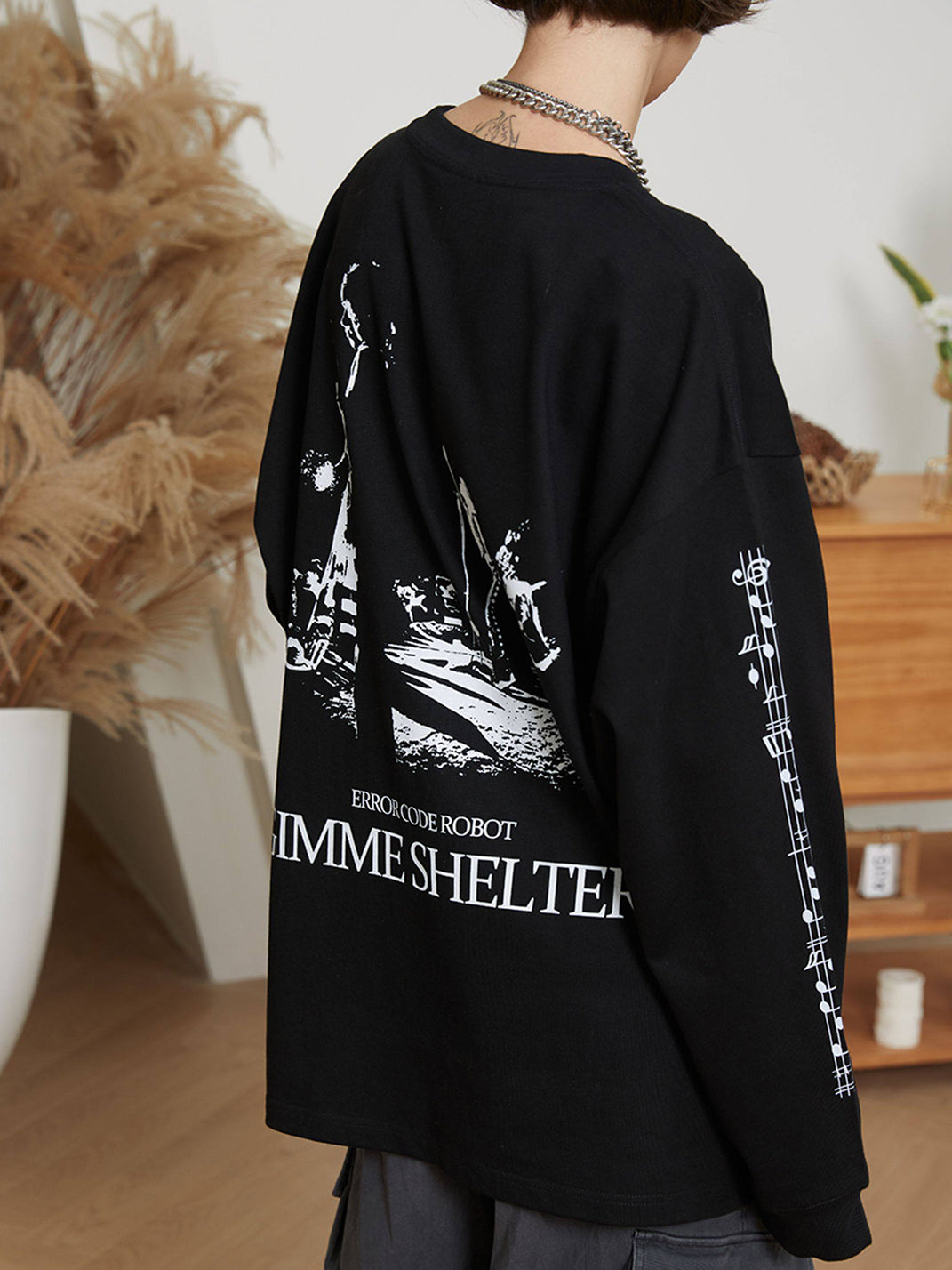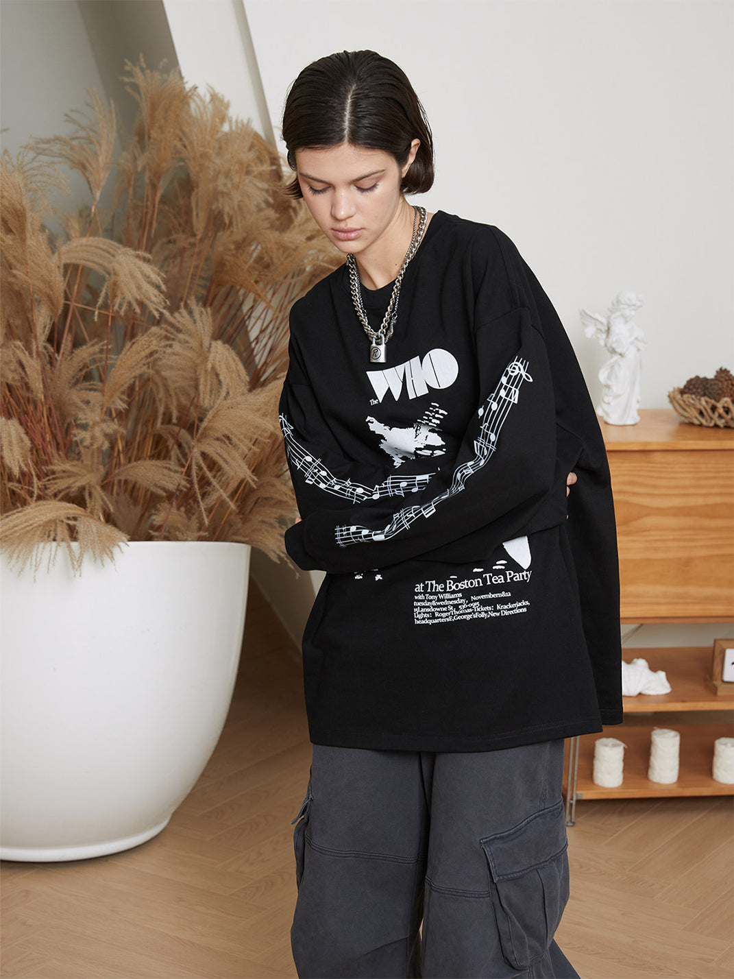 ECR | Band Stage Silhouette Sheet Music Style Long-Sleeved T-shirt