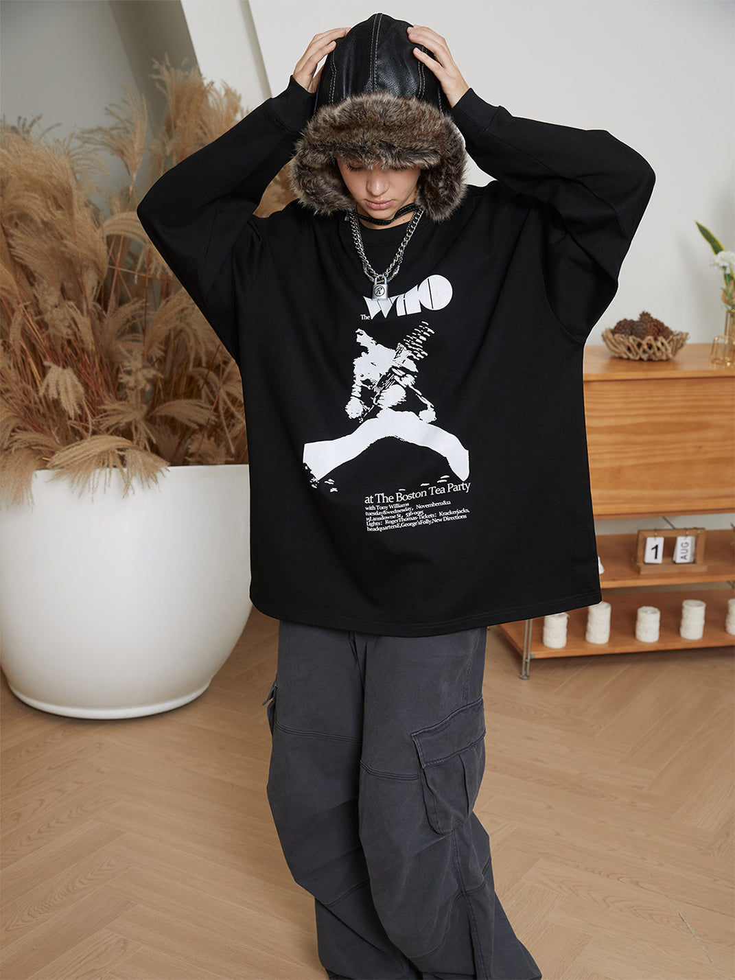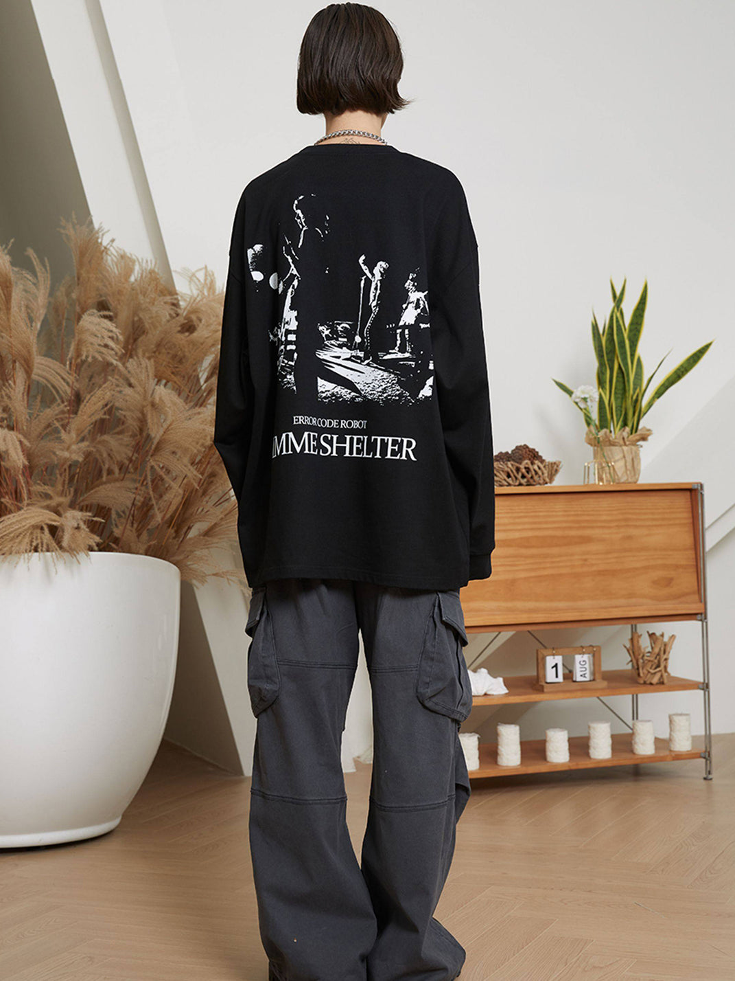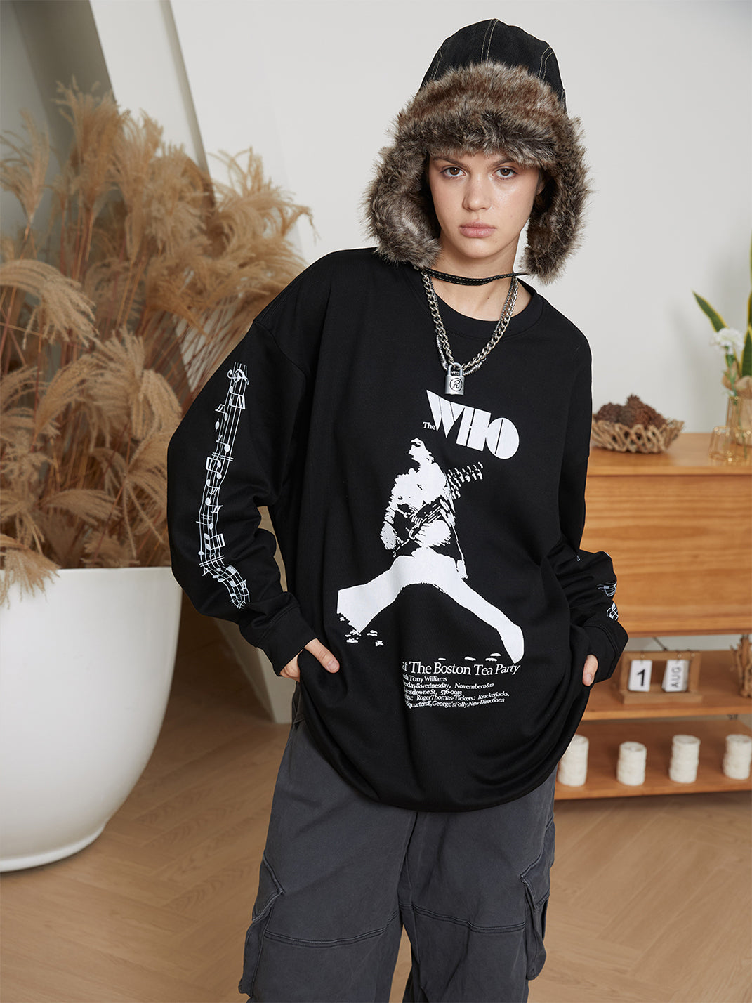 ECR | Band Stage Silhouette Sheet Music Style Long-Sleeved T-shirt