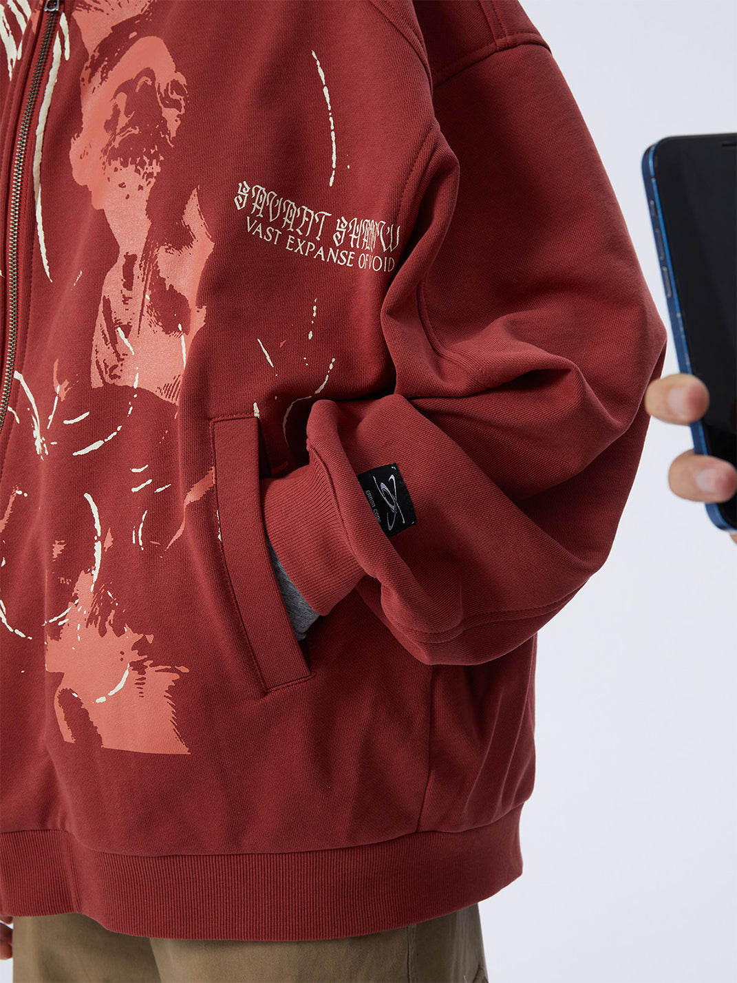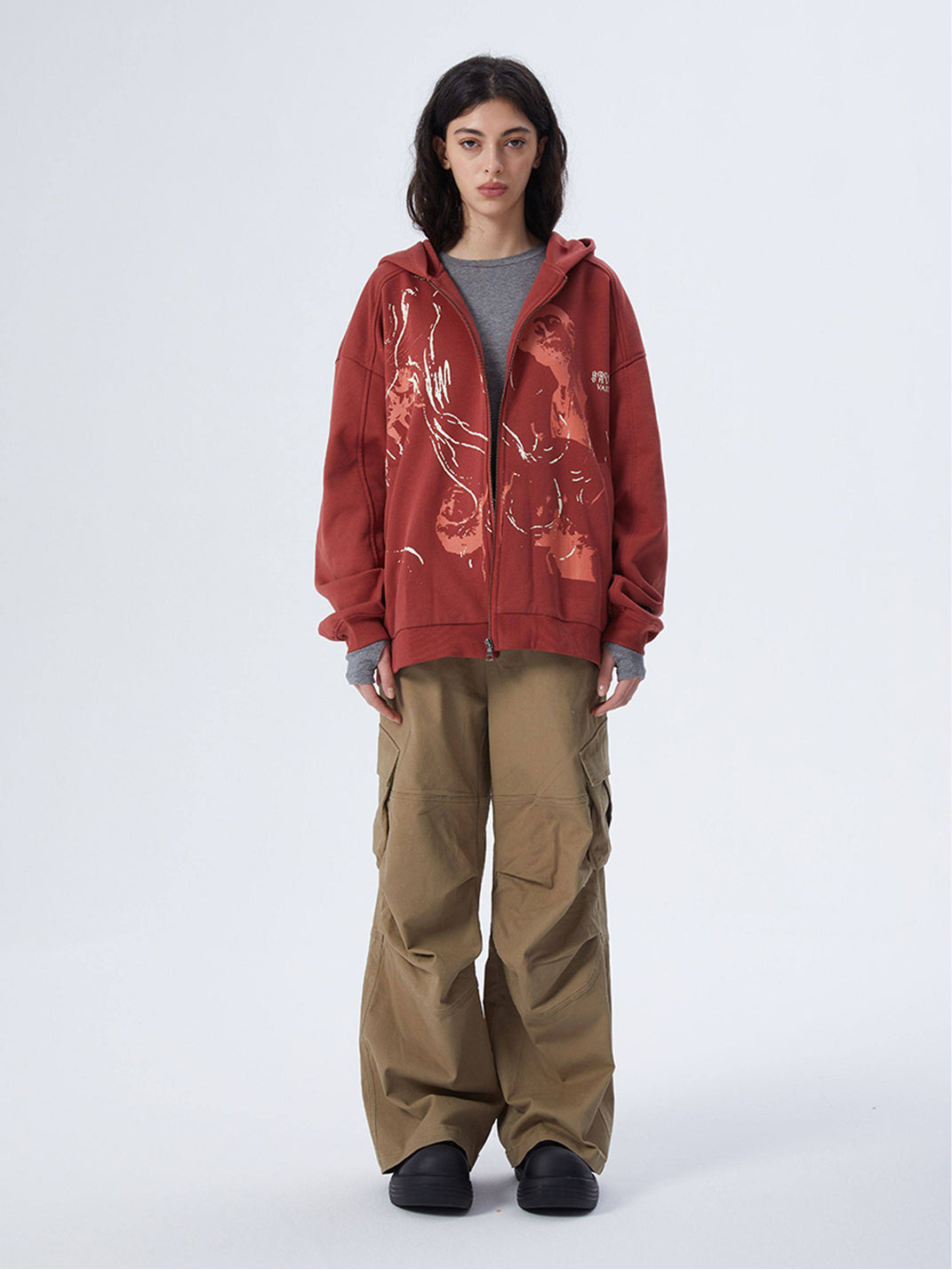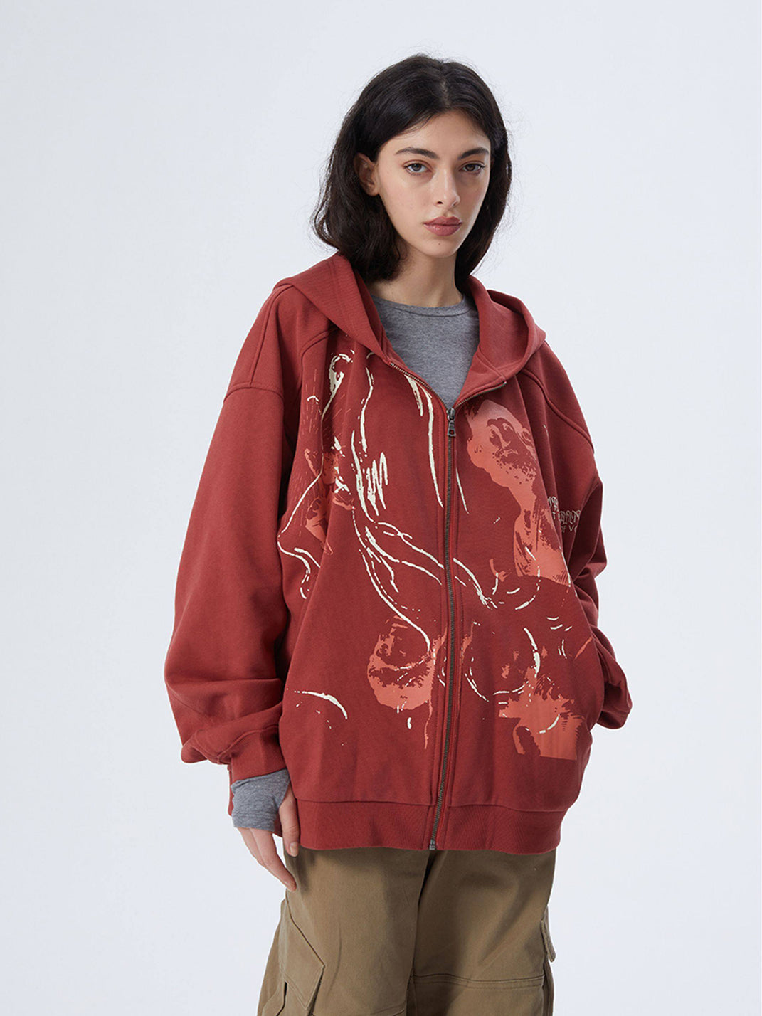 ECR | Sculptural Line Art Red Drop-Shoulder Sweatshirt