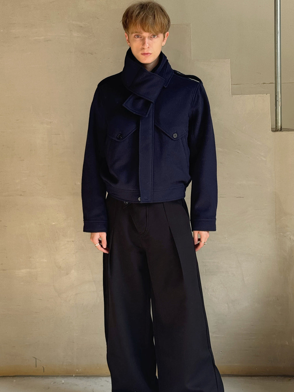 Esaias | Detachable Scarf Collar Wool Jacket