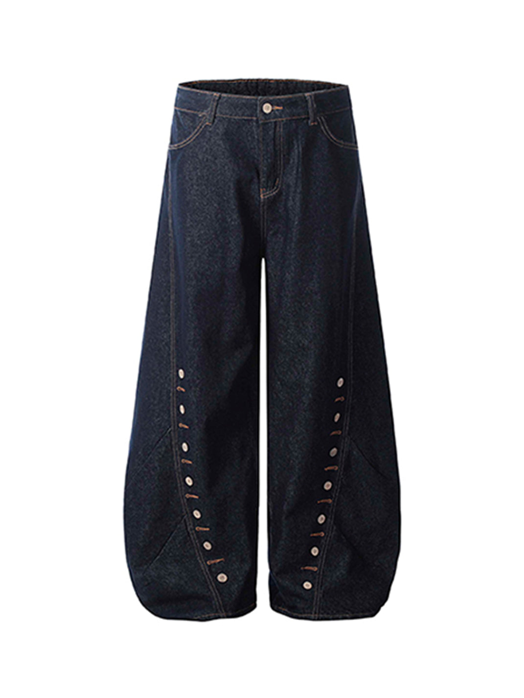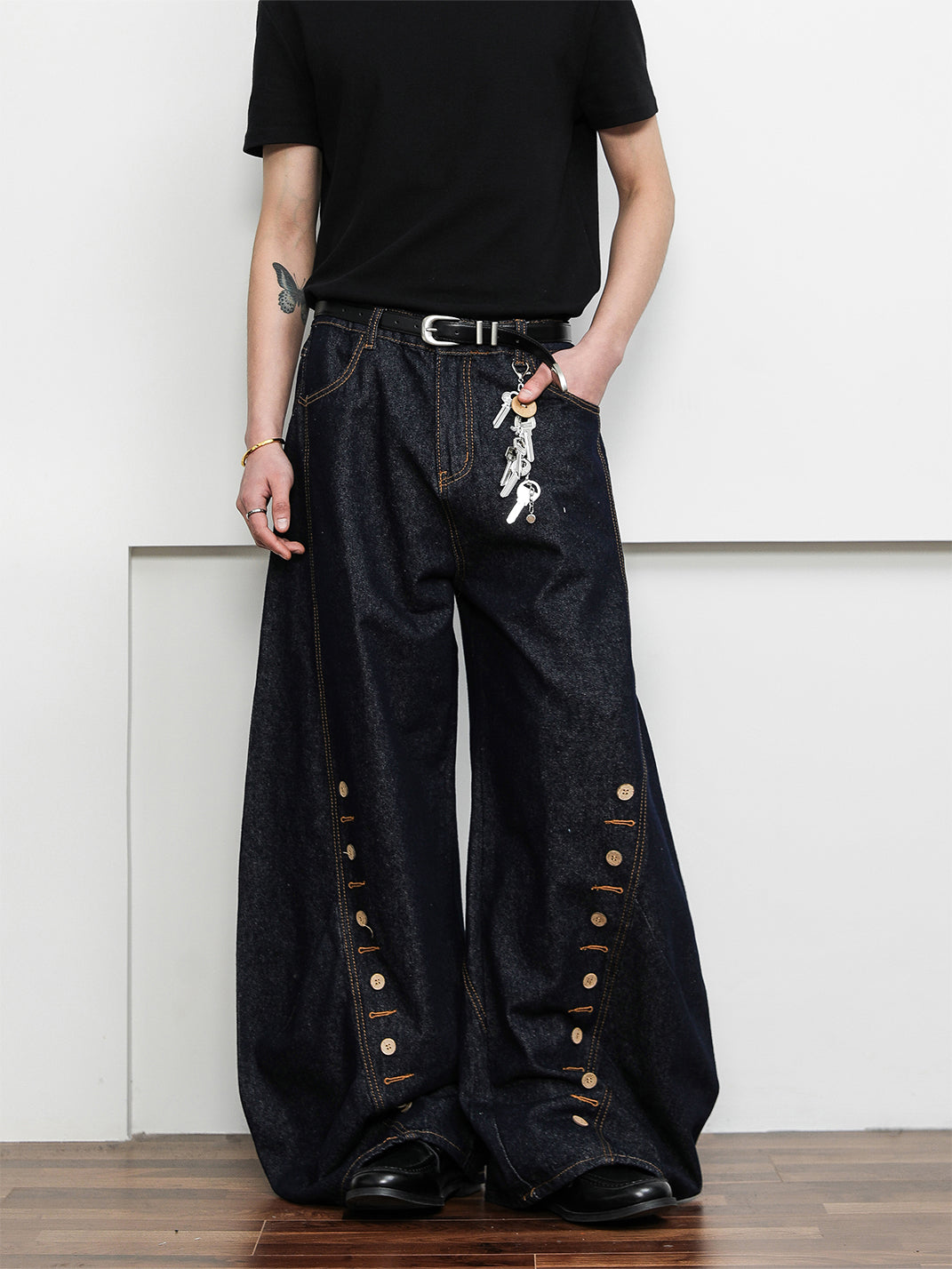 FLYOFF | Button Detail Wide-Legged Baggy Denim Pants Skip to content