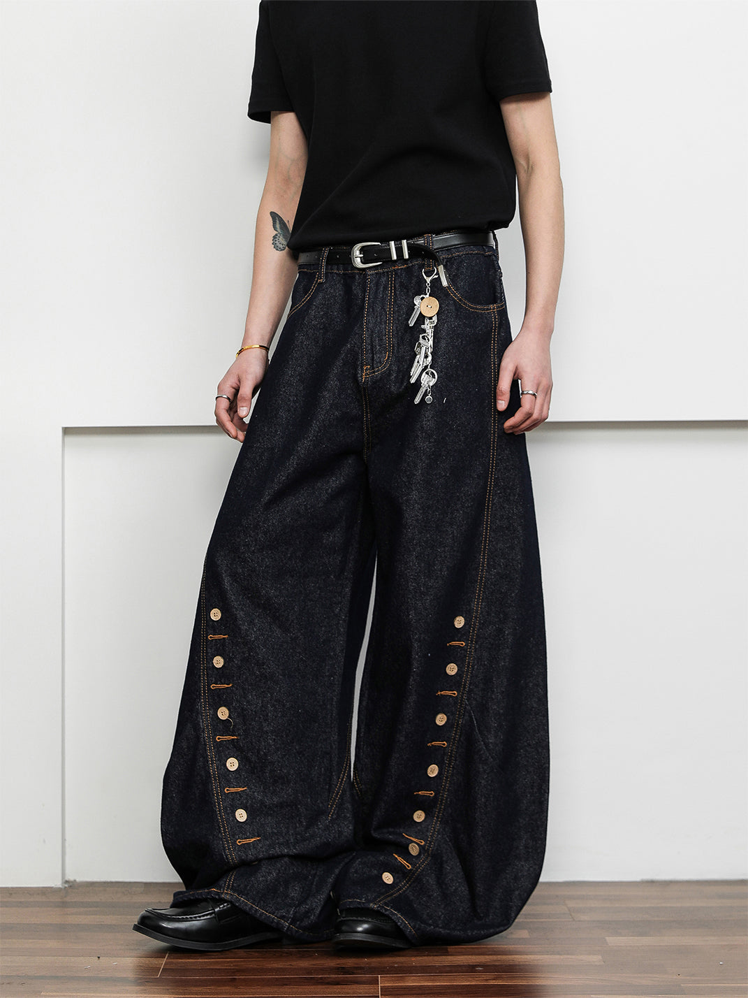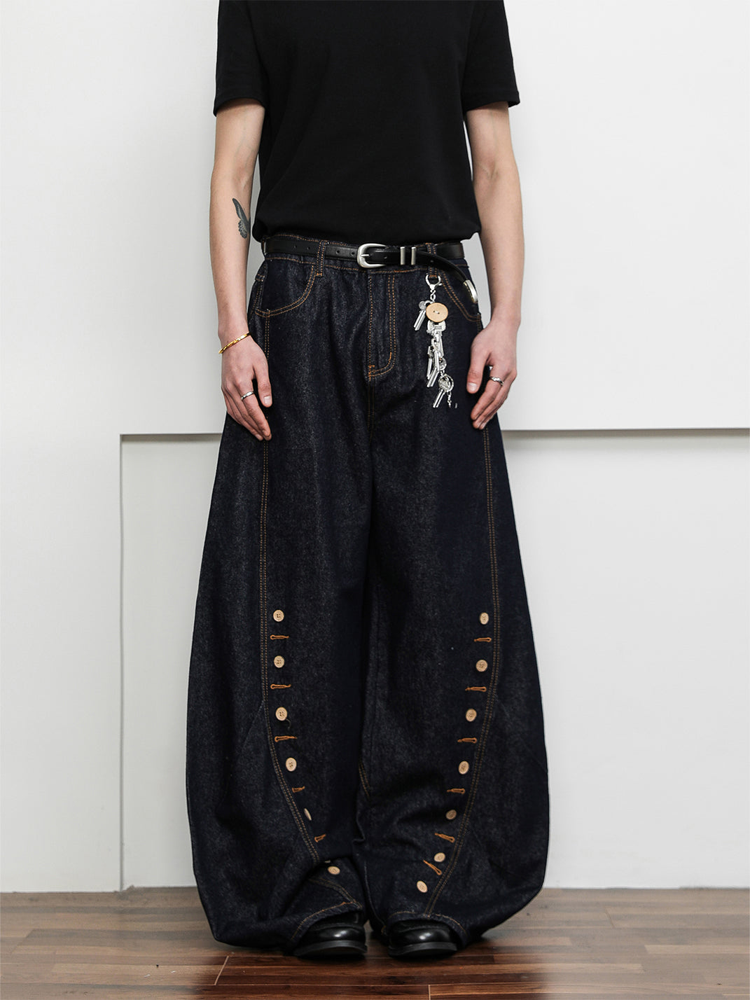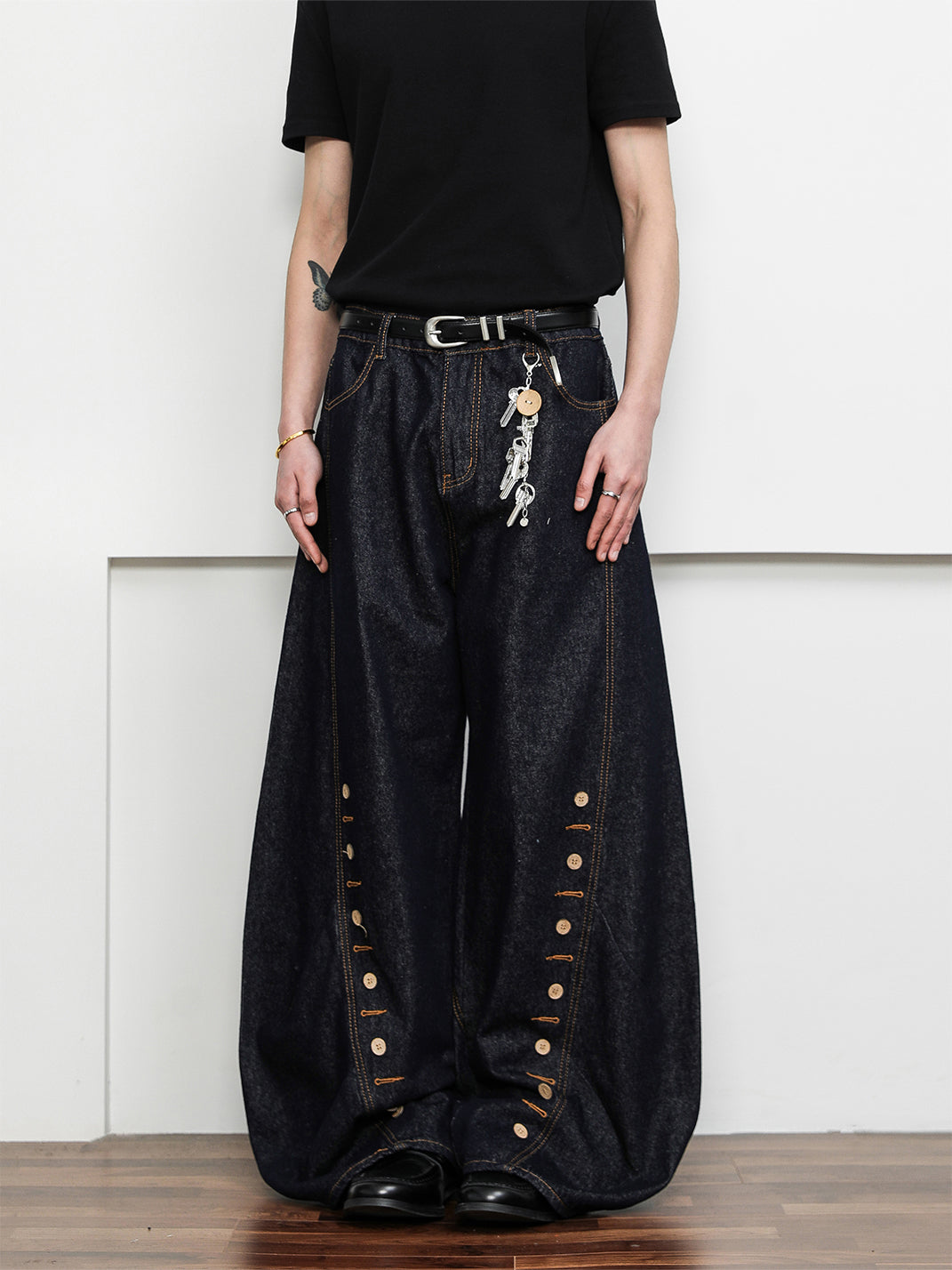 FLYOFF | Button Detail Wide-Legged Baggy Denim Pants
