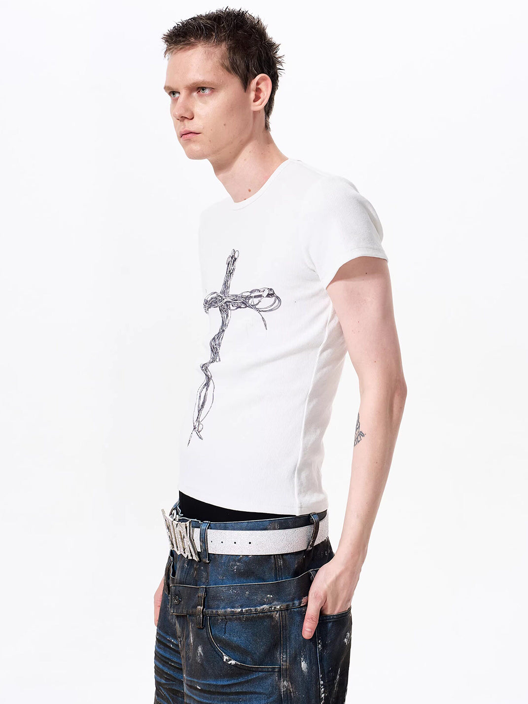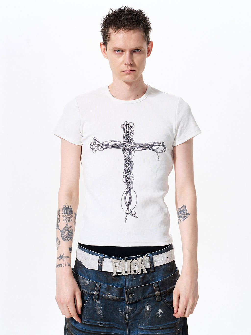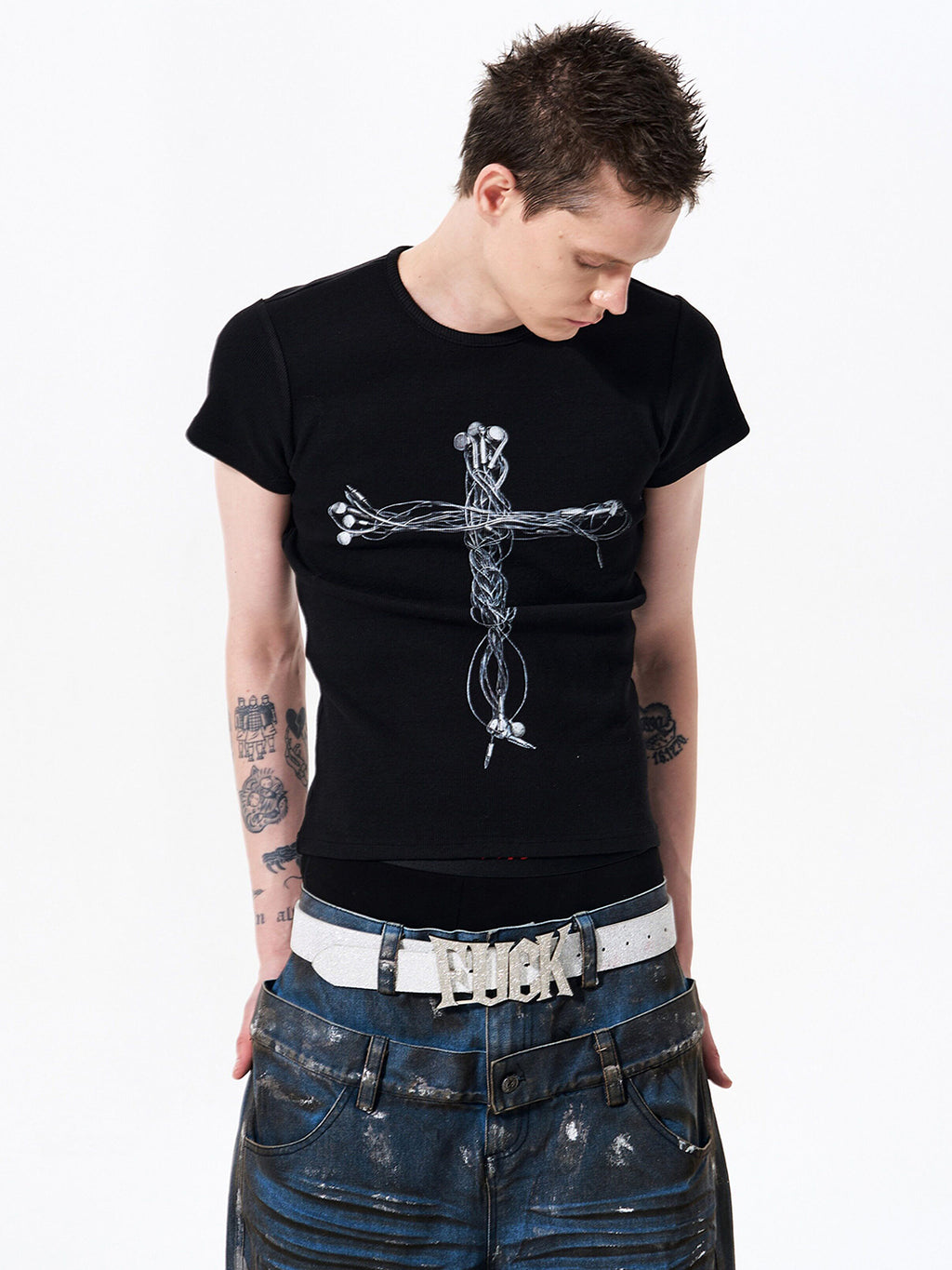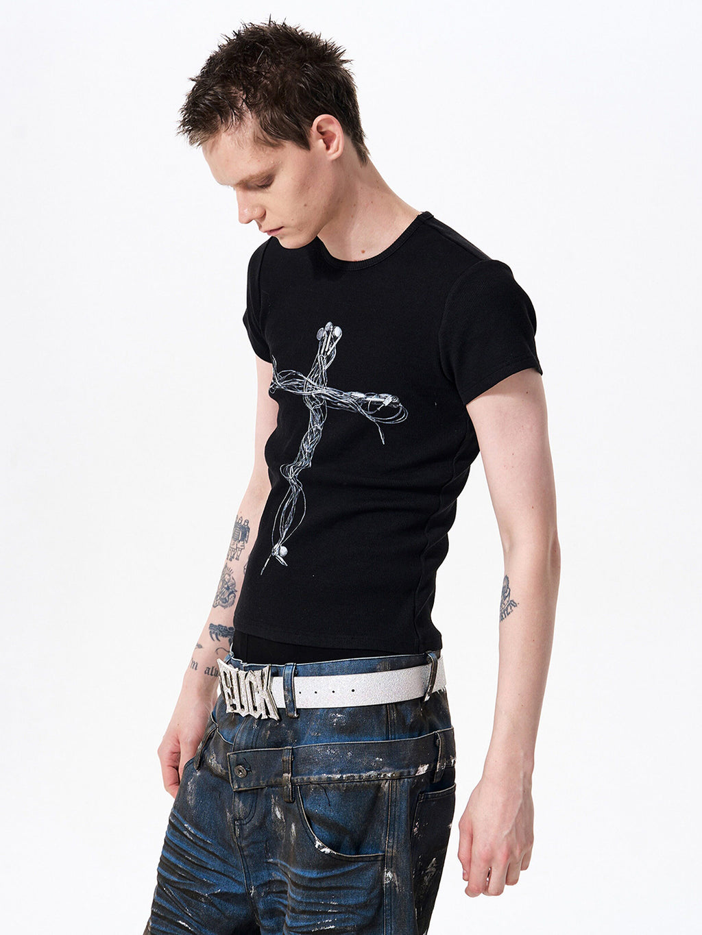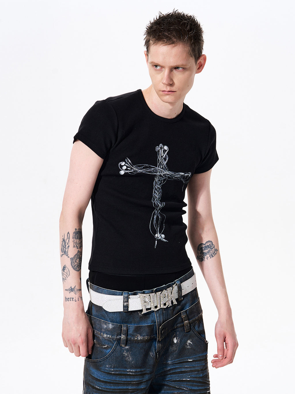Fourth3ex | Headphone Cross Print Short Sleeve T-shirt