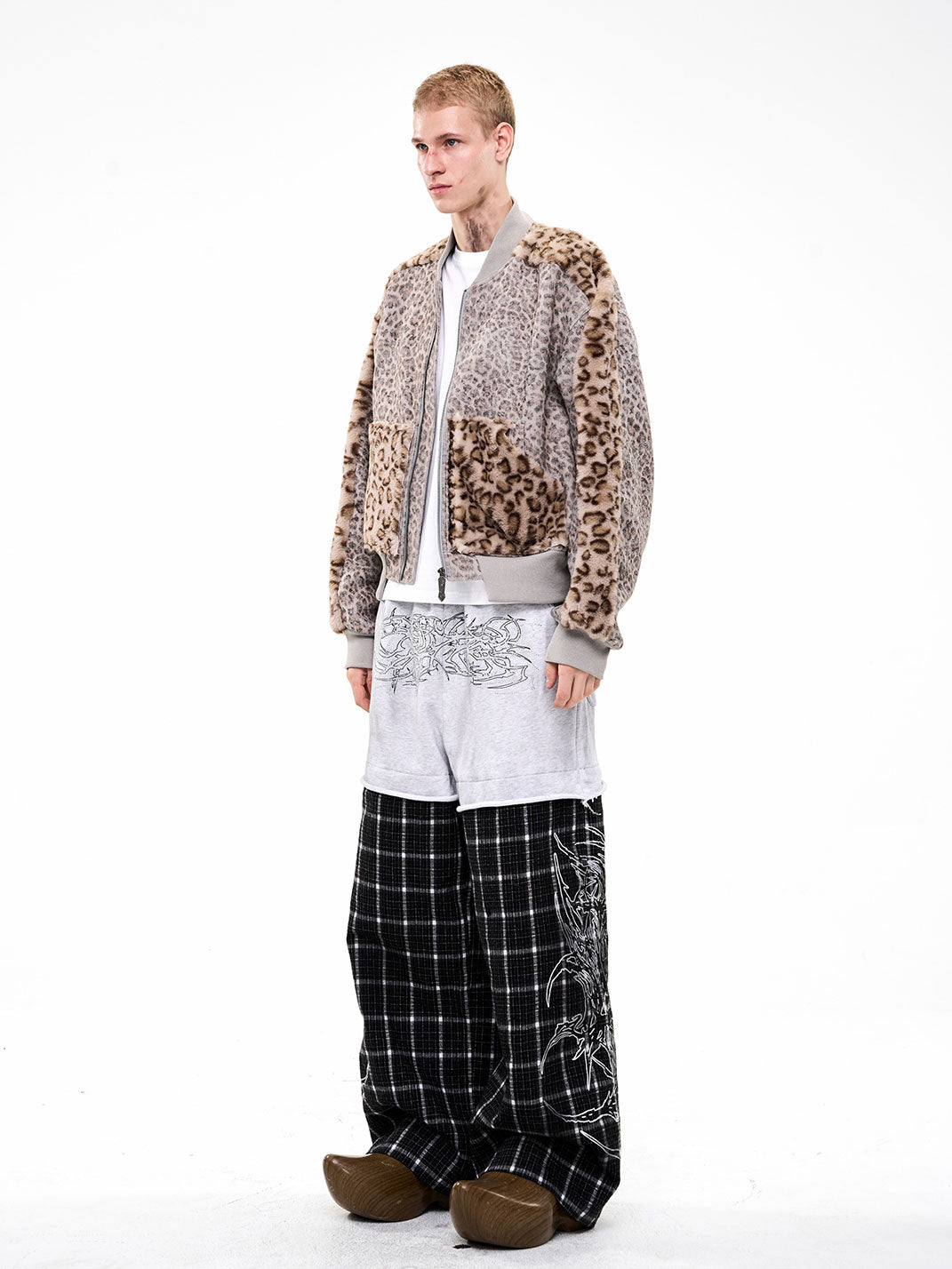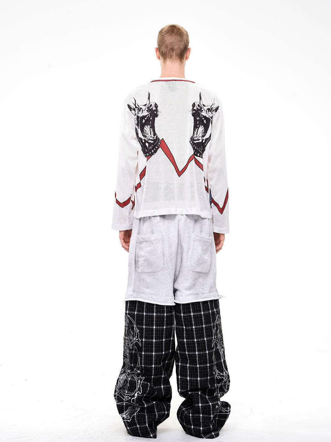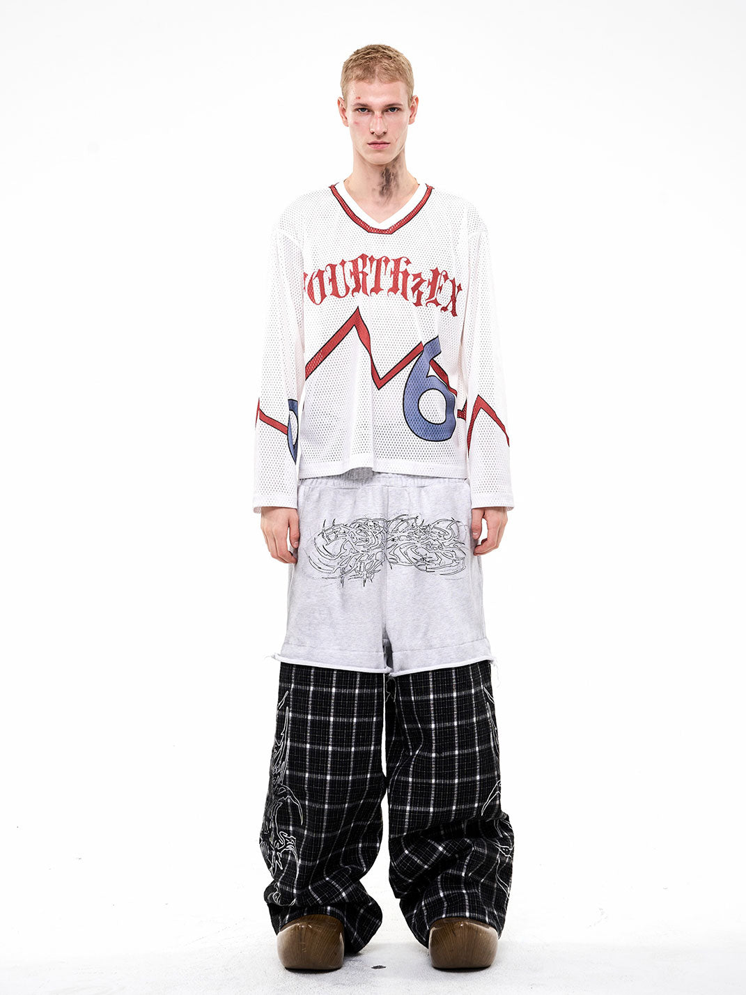 Fourth3ex | Rhinestone Print Splicing Plaid Wide-Leg Pants