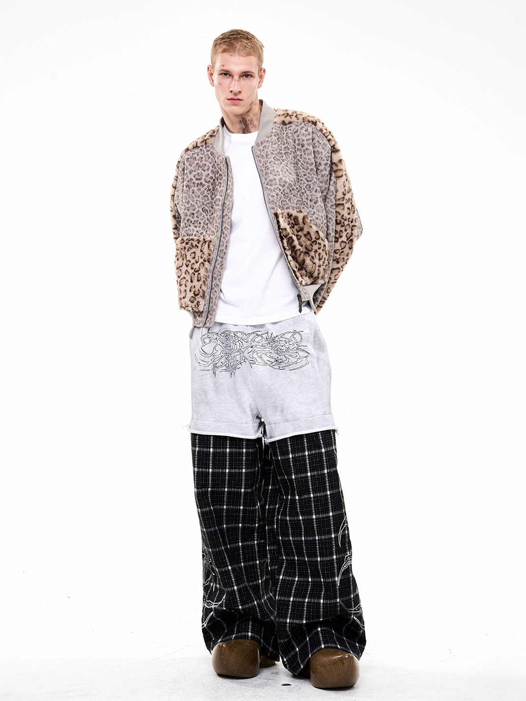 Fourth3ex | Rhinestone Print Splicing Plaid Wide-Leg Pants Skip to content
