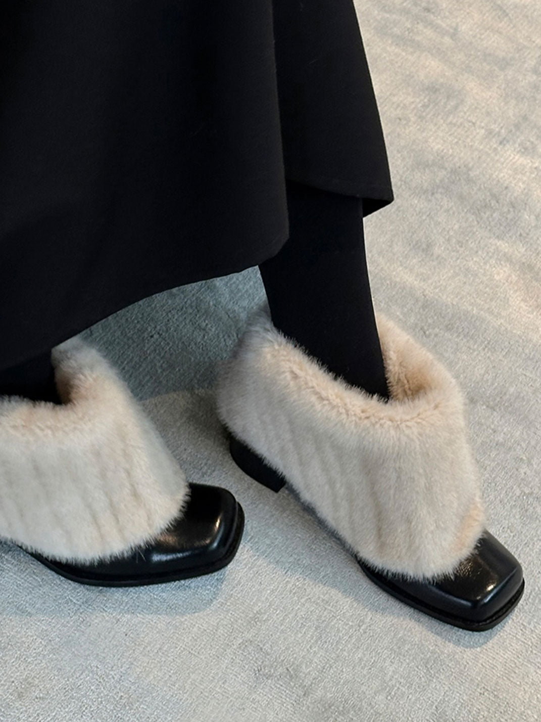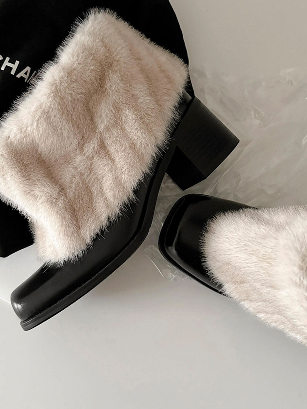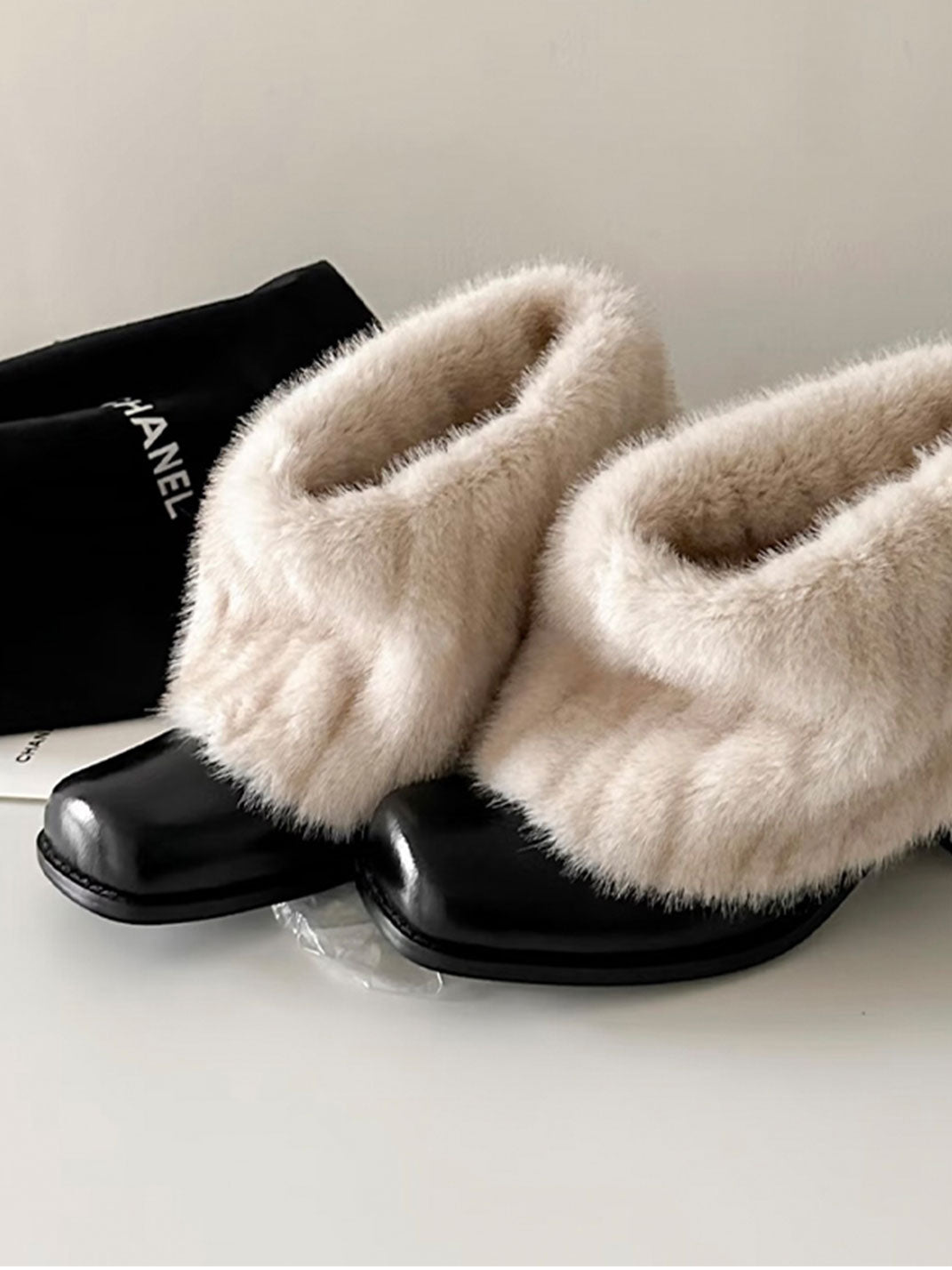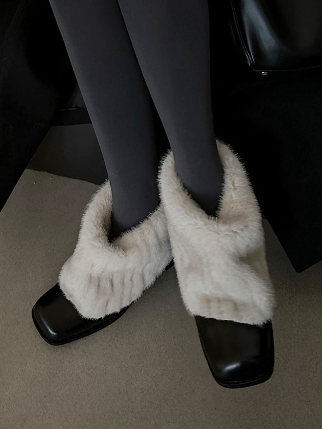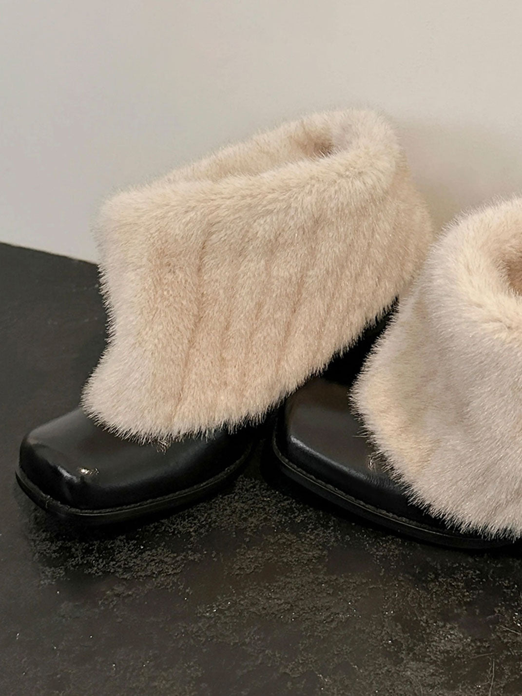 GIRLSHOME丨Vintage Square-Toe Faux Fur Snow Boots Skip to content