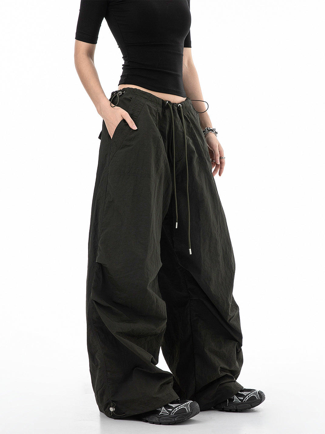 ICH MODE | Drawstring Straight-leg Cargo Pants Skip to content