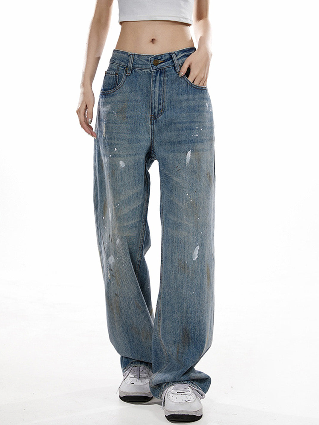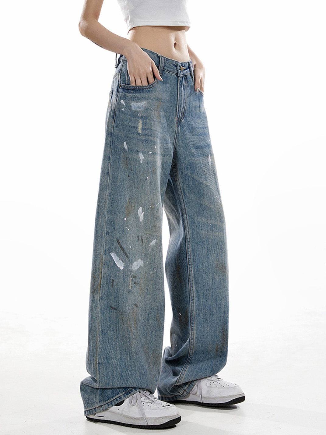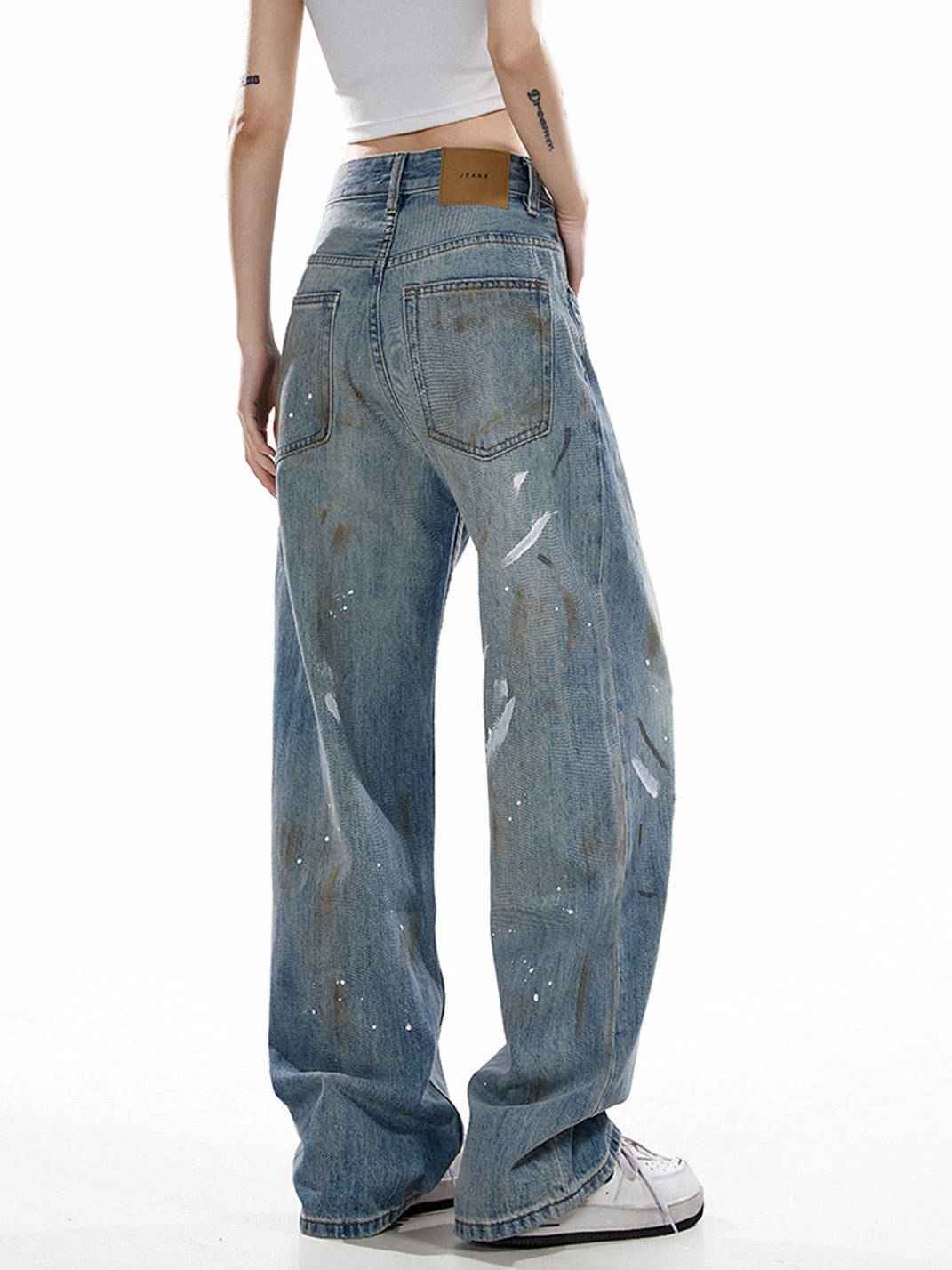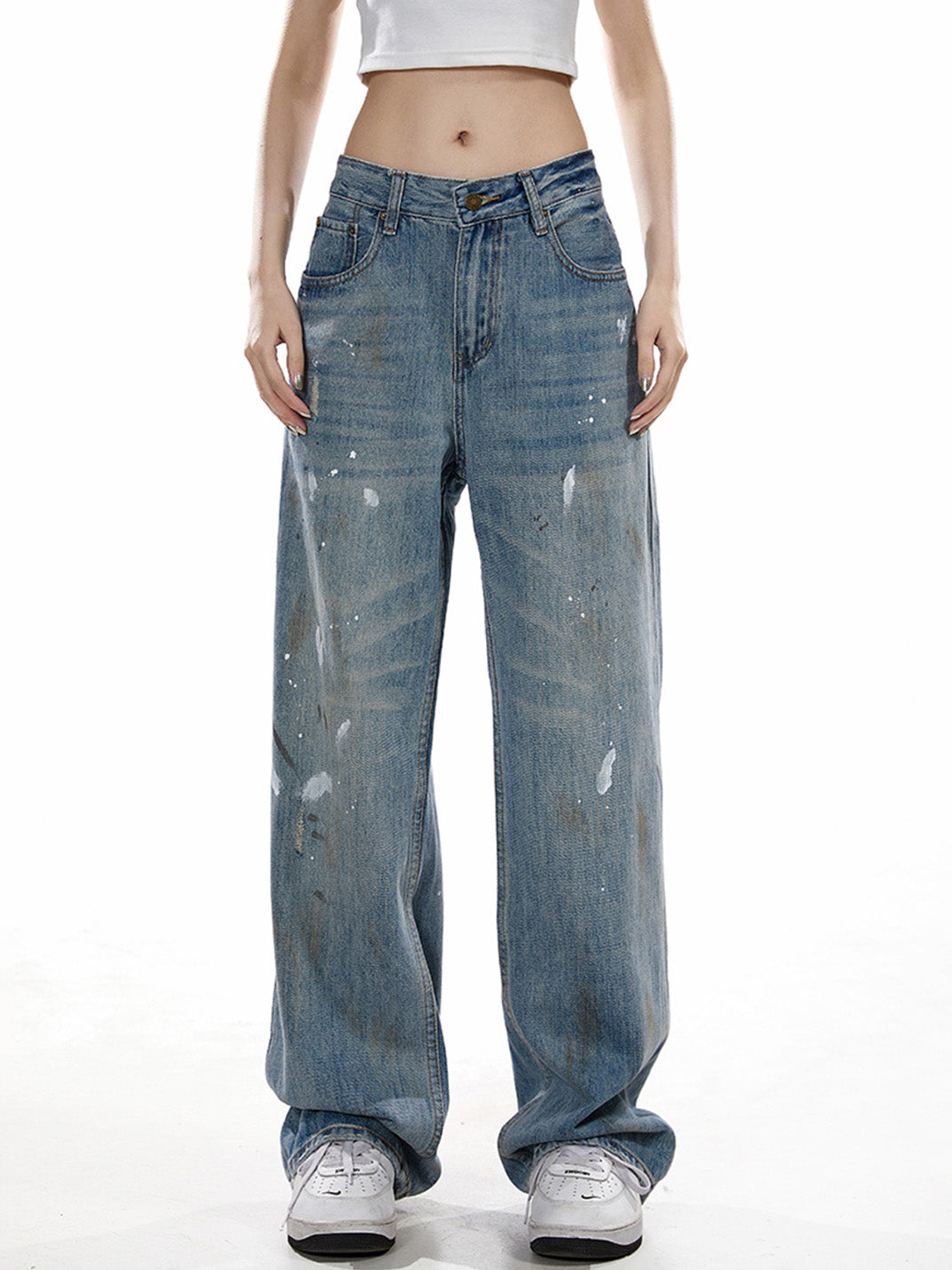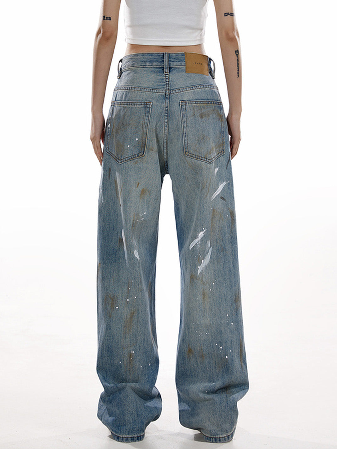 ICH MODE | Vintage Washed Distressed Splatter Paint Jeans Skip to content
