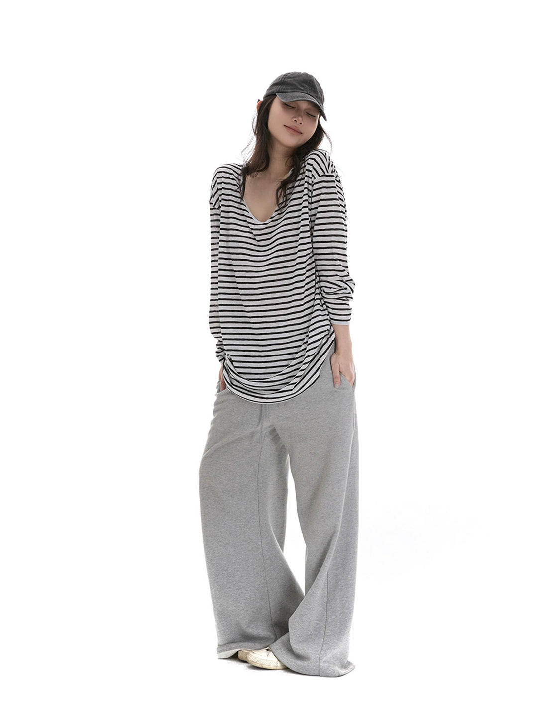 itsdinn | U-Neck Striped Long-Sleeved T-Shirt Skip to content