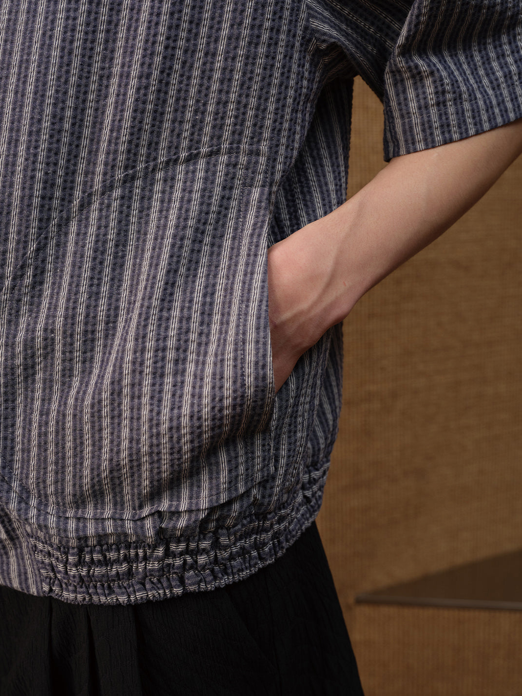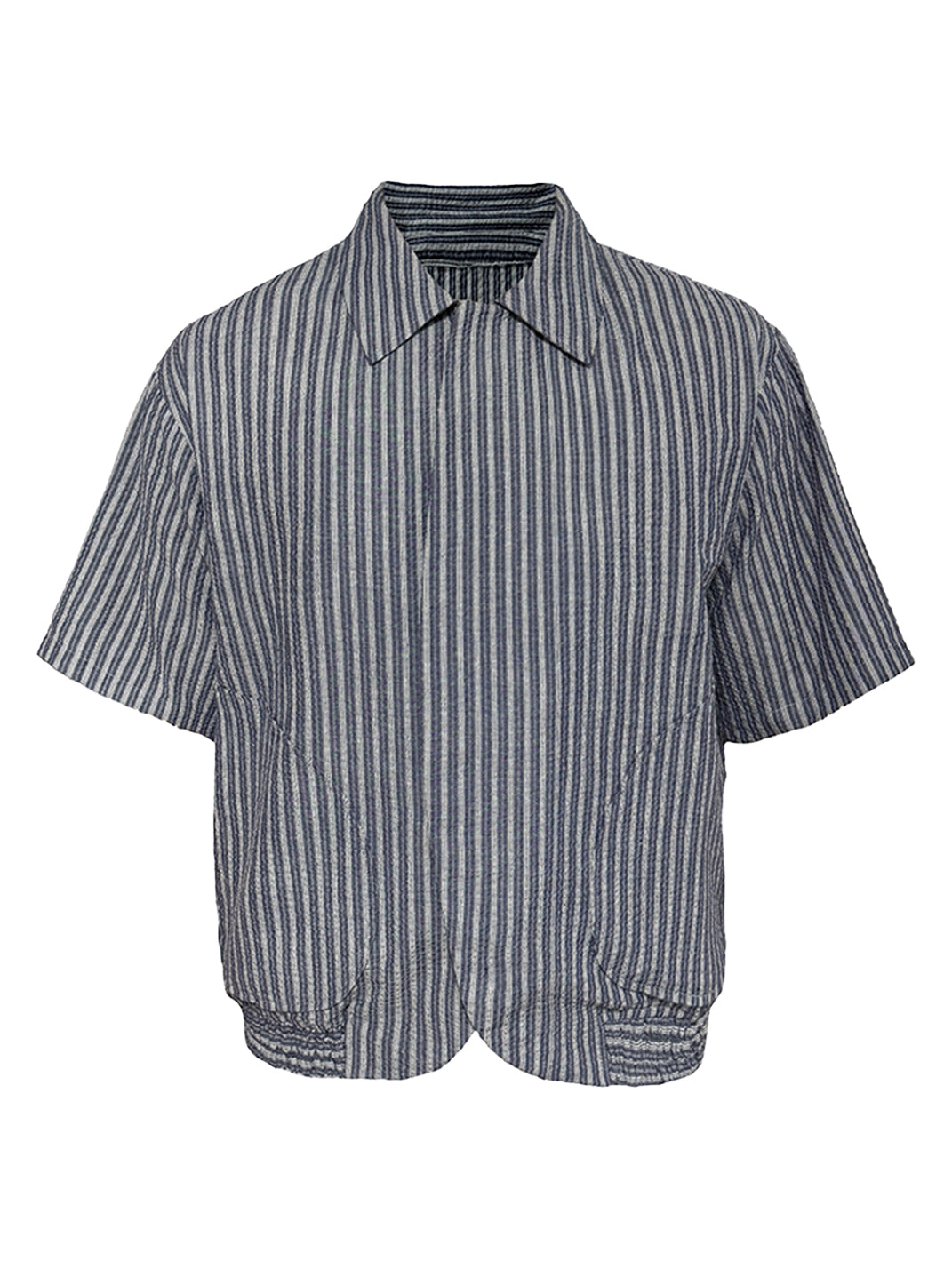 JCAESAR STUDIO | Boxy Fit Curved Hem Pin Stripe Shirt Skip to content