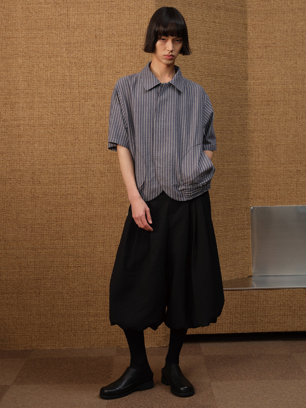 JCAESAR STUDIO | Boxy Fit Curved Hem Pin Stripe Shirt