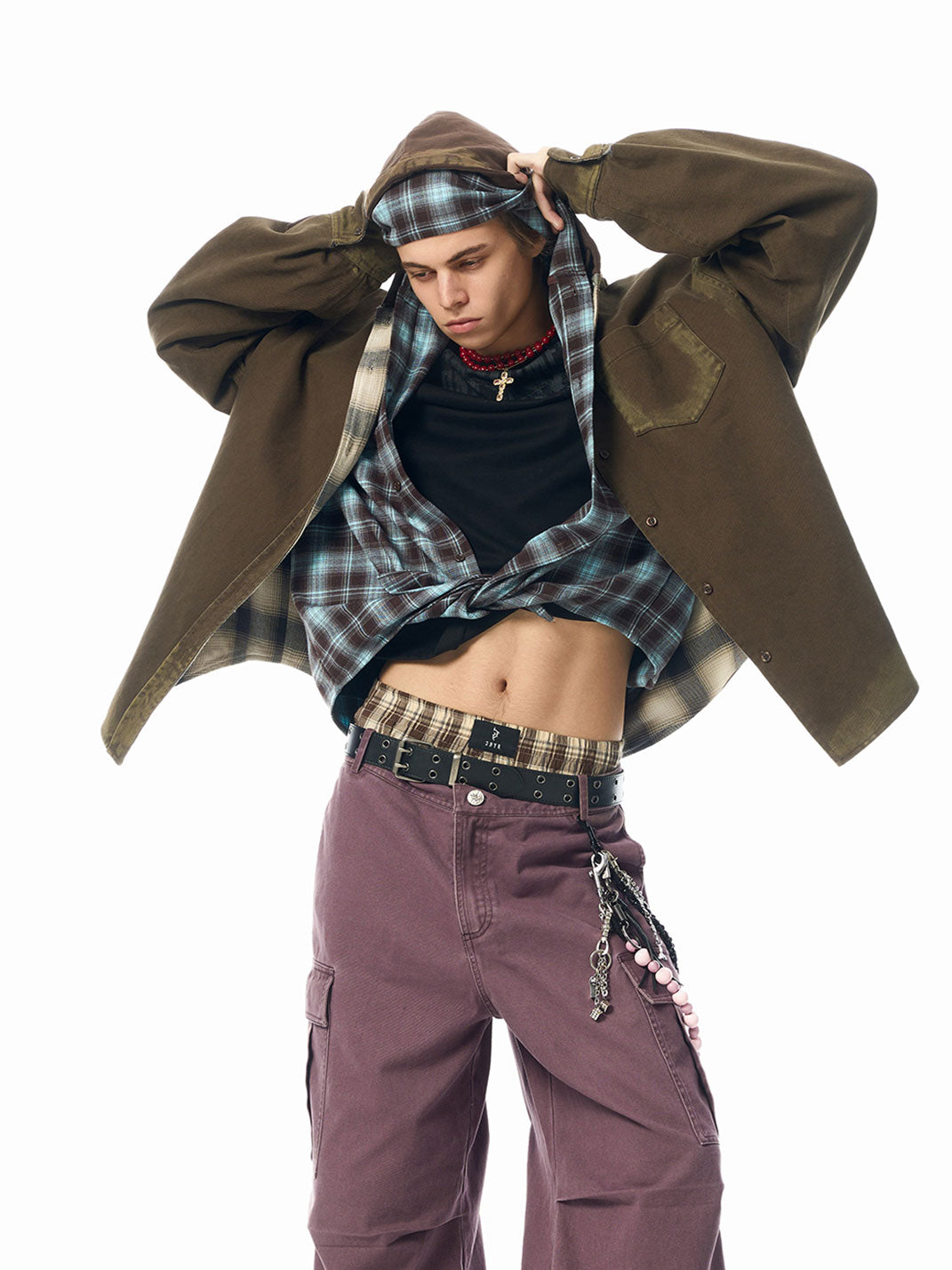 JHYQ | Reversible Vintage Hooded Checkered Jacket