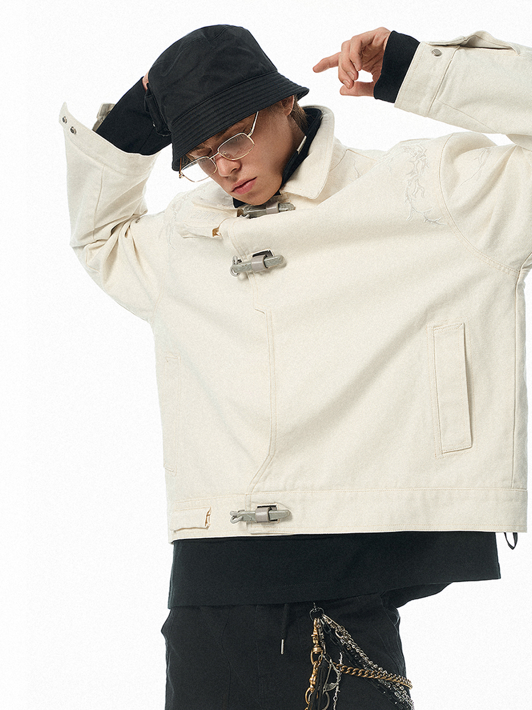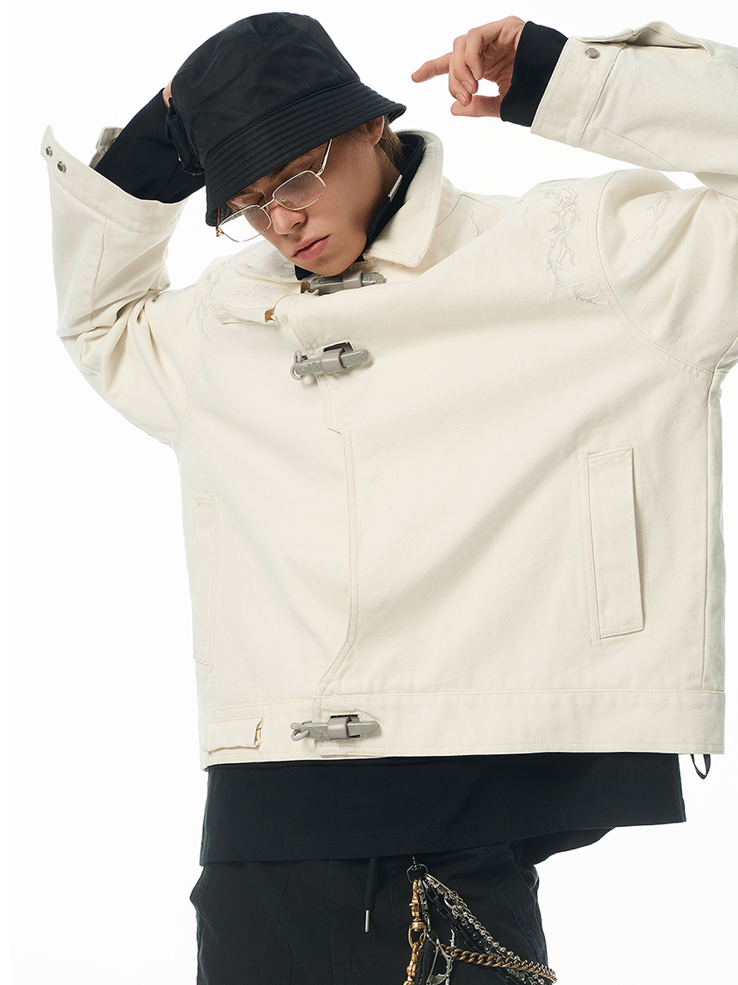 JHYQ | Thorn Embroidered Motorcycle Jacket for Men