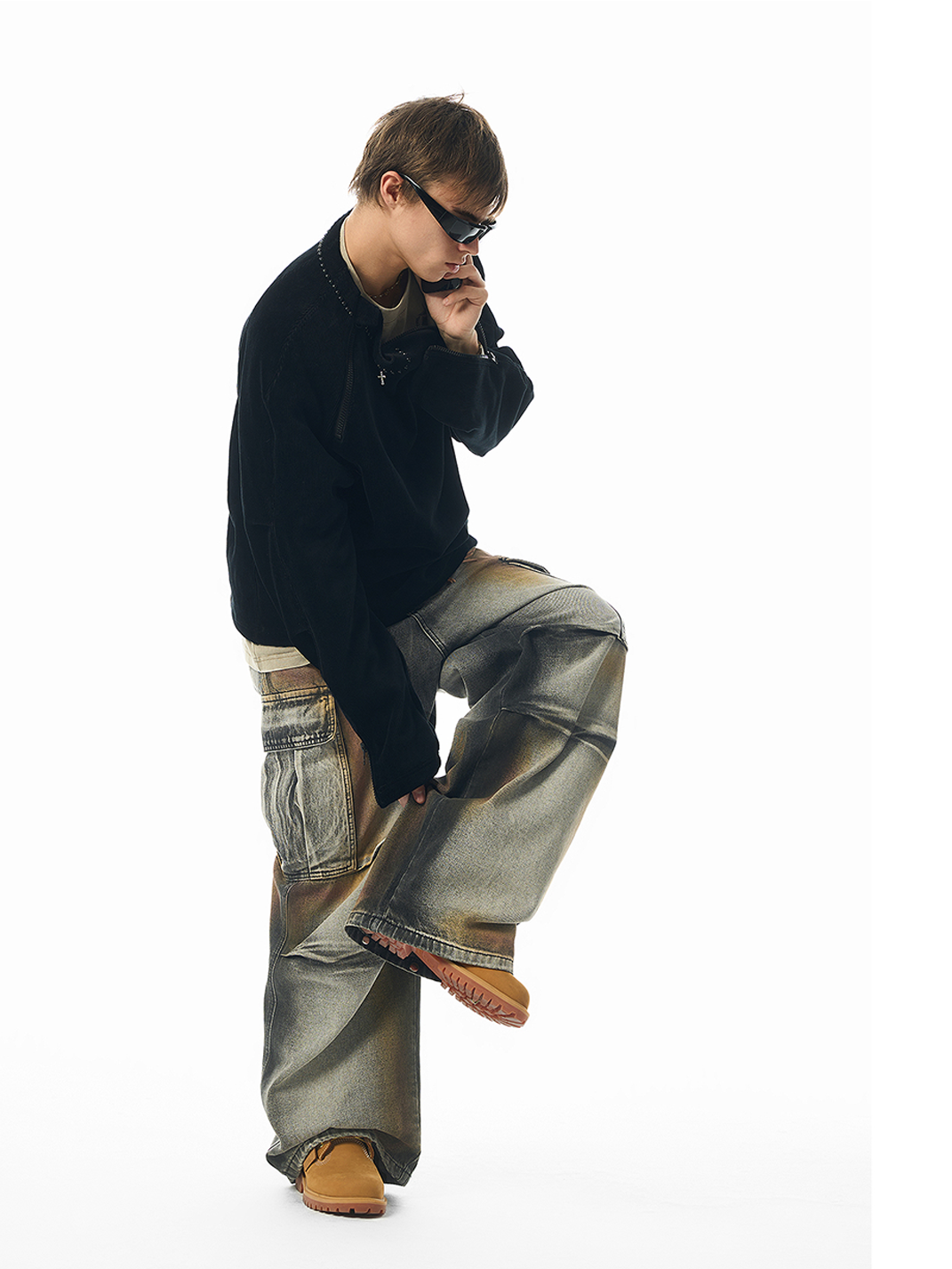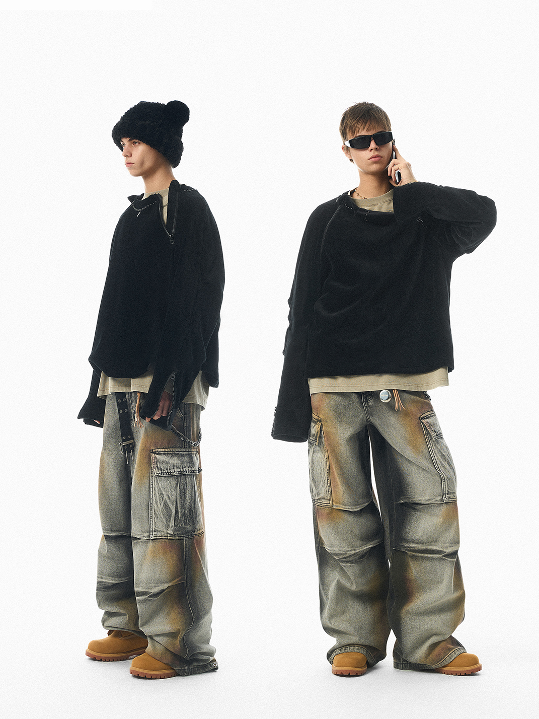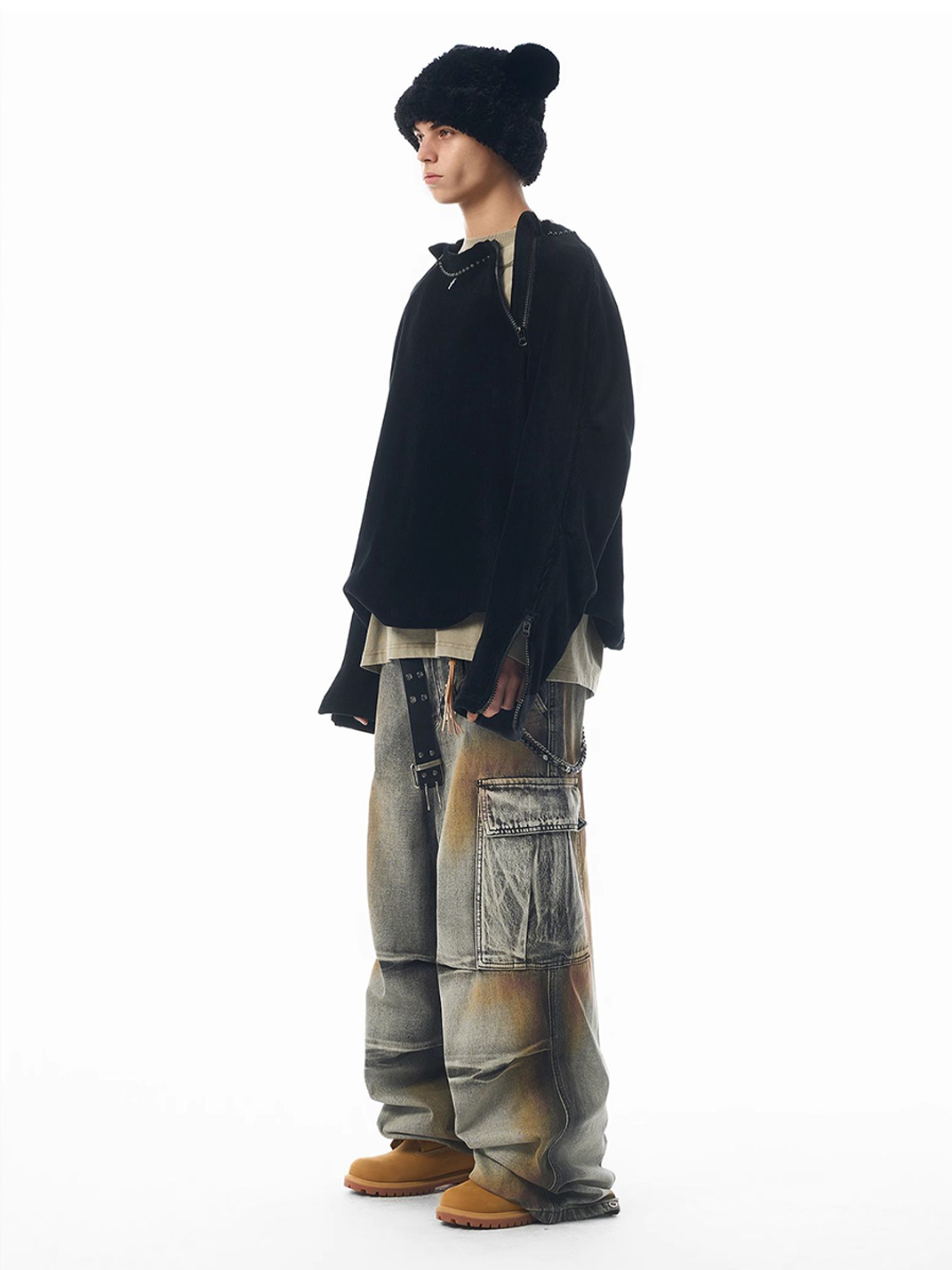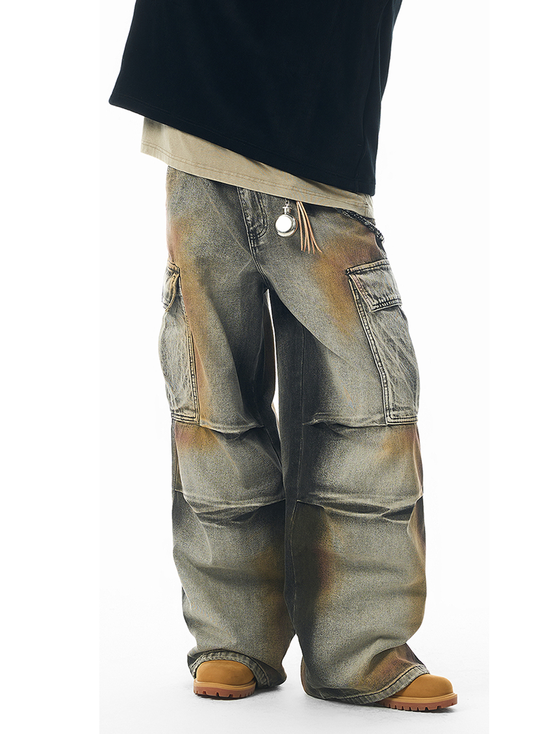 JHYQ | Vintage-Style Cargo Work Denim Pants with Distressed Detailing Skip to content