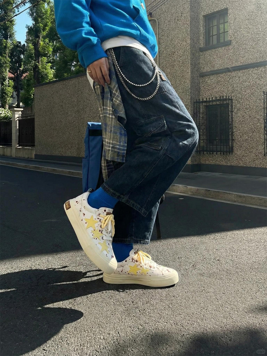 KAALIXTO | Star Embroidered Canvas Platform Sneakers-White Skip to content