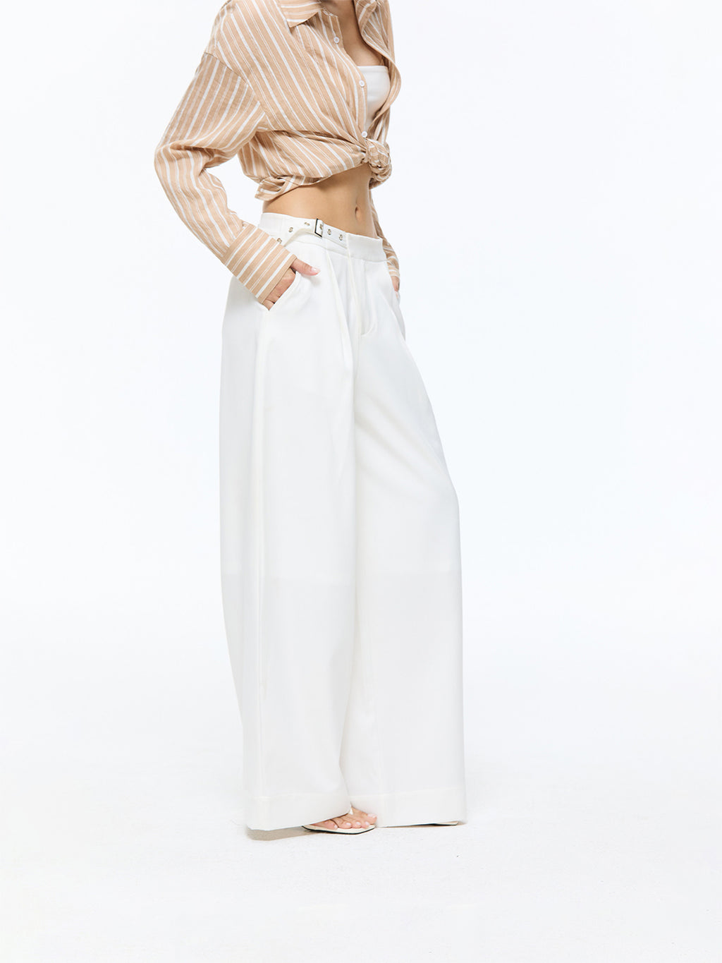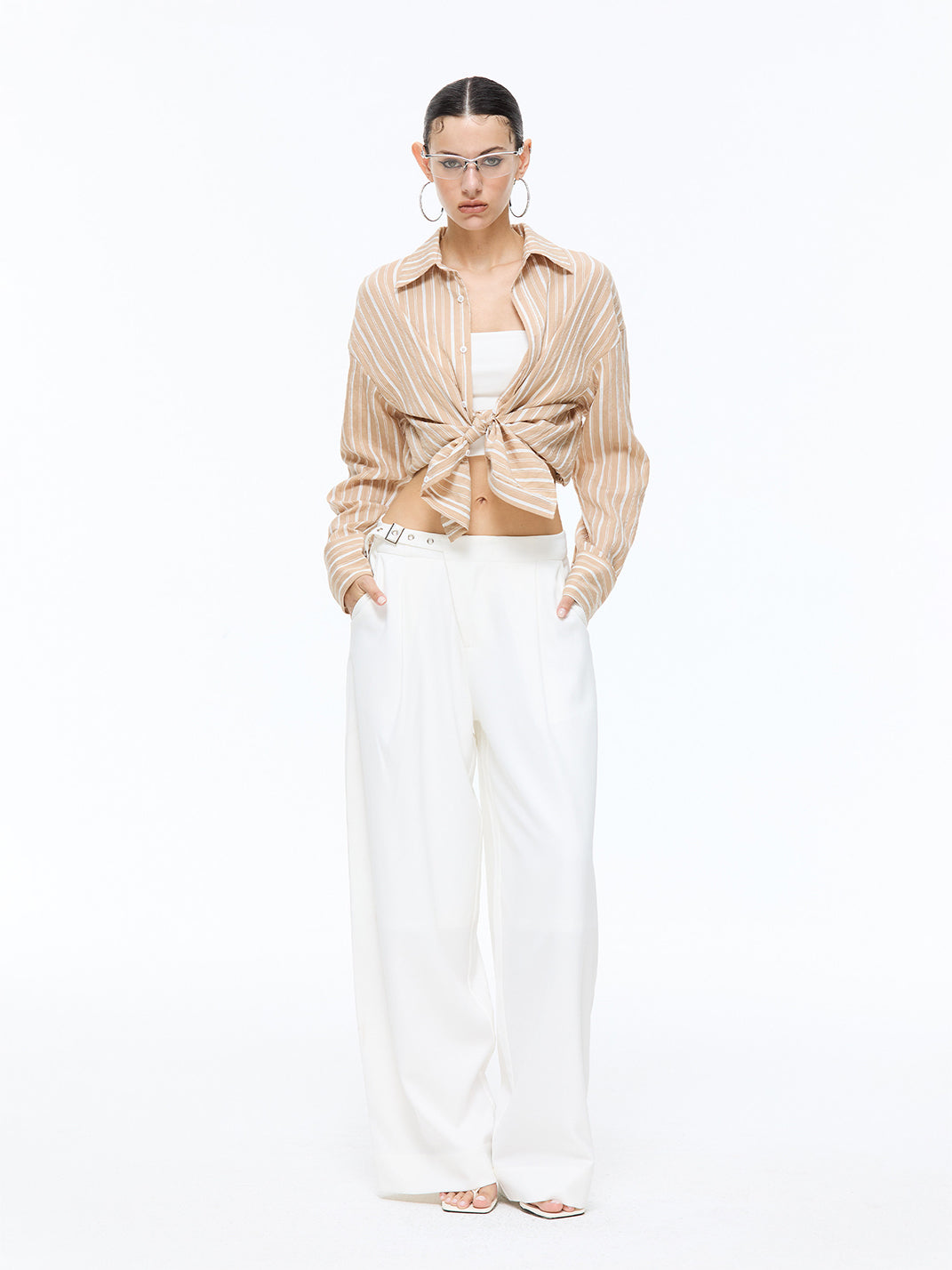 Latelylab | Asymmetrical Waistband With Metal Buckle Trousers