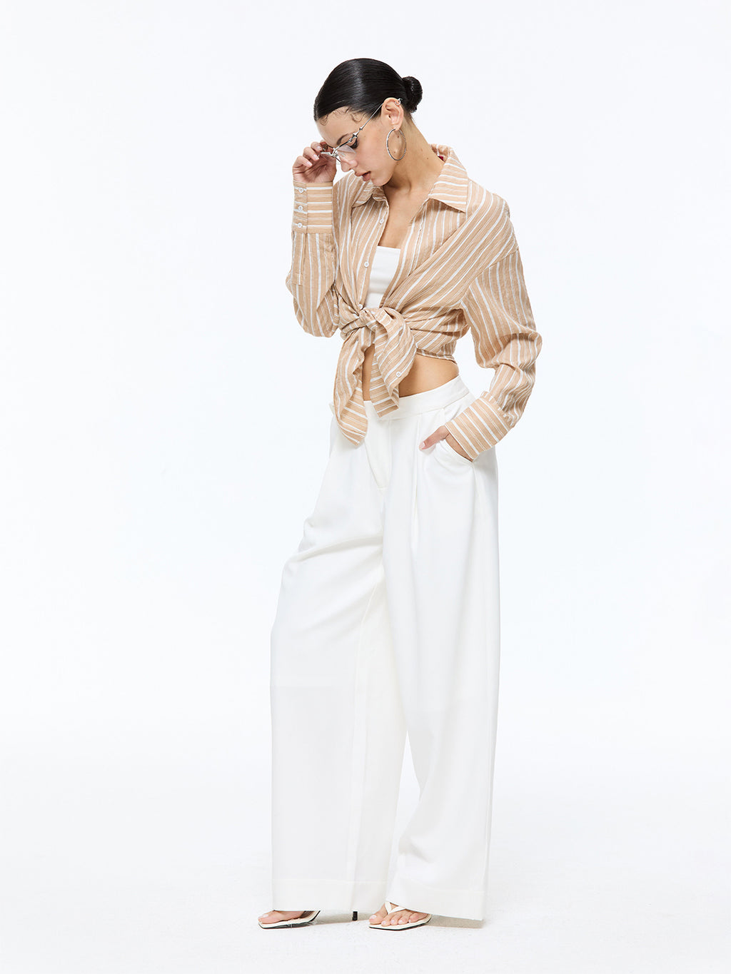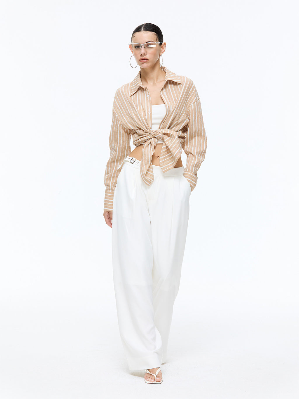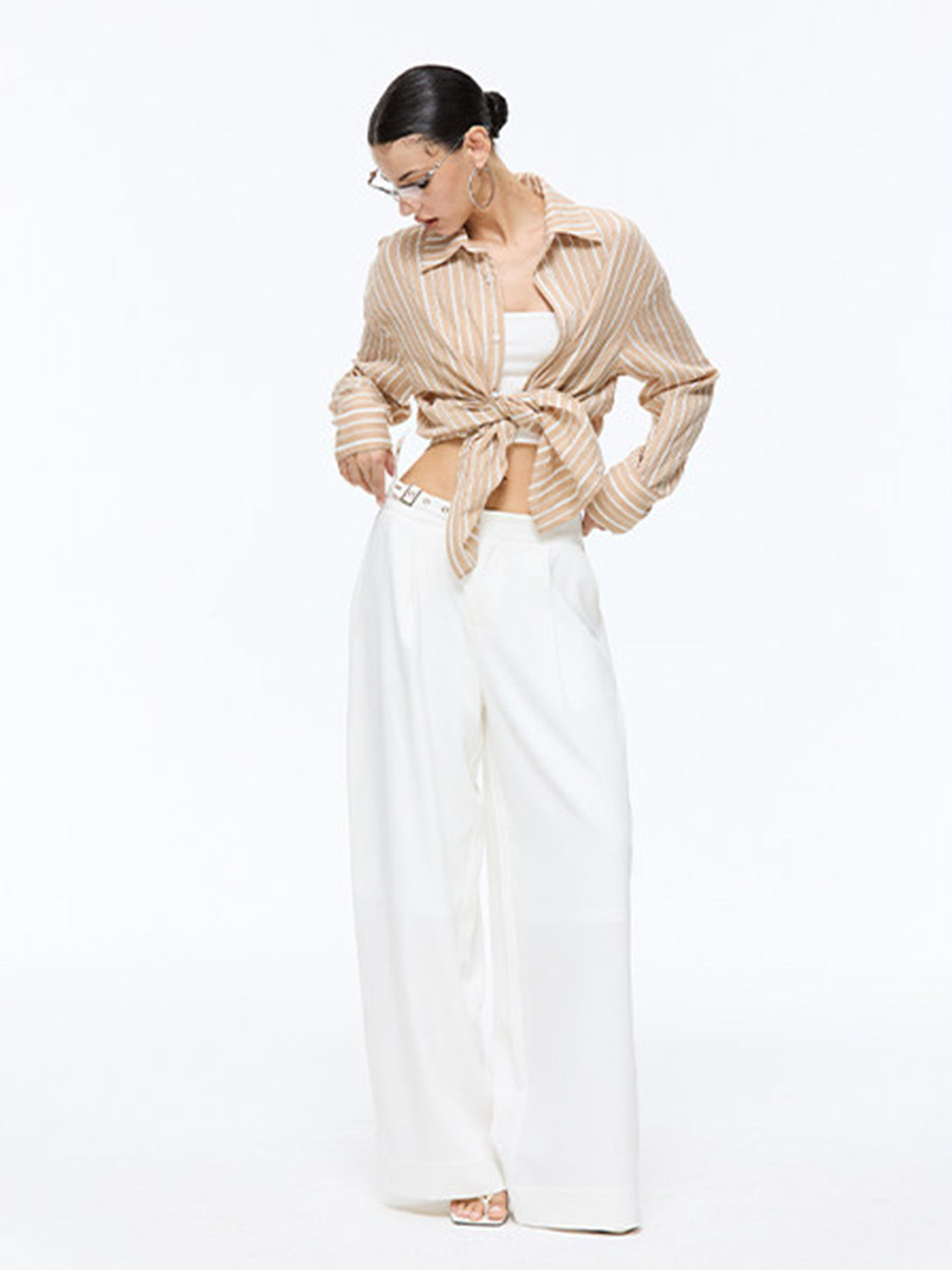 Latelylab | Asymmetrical Waistband With Metal Buckle Trousers Skip to content