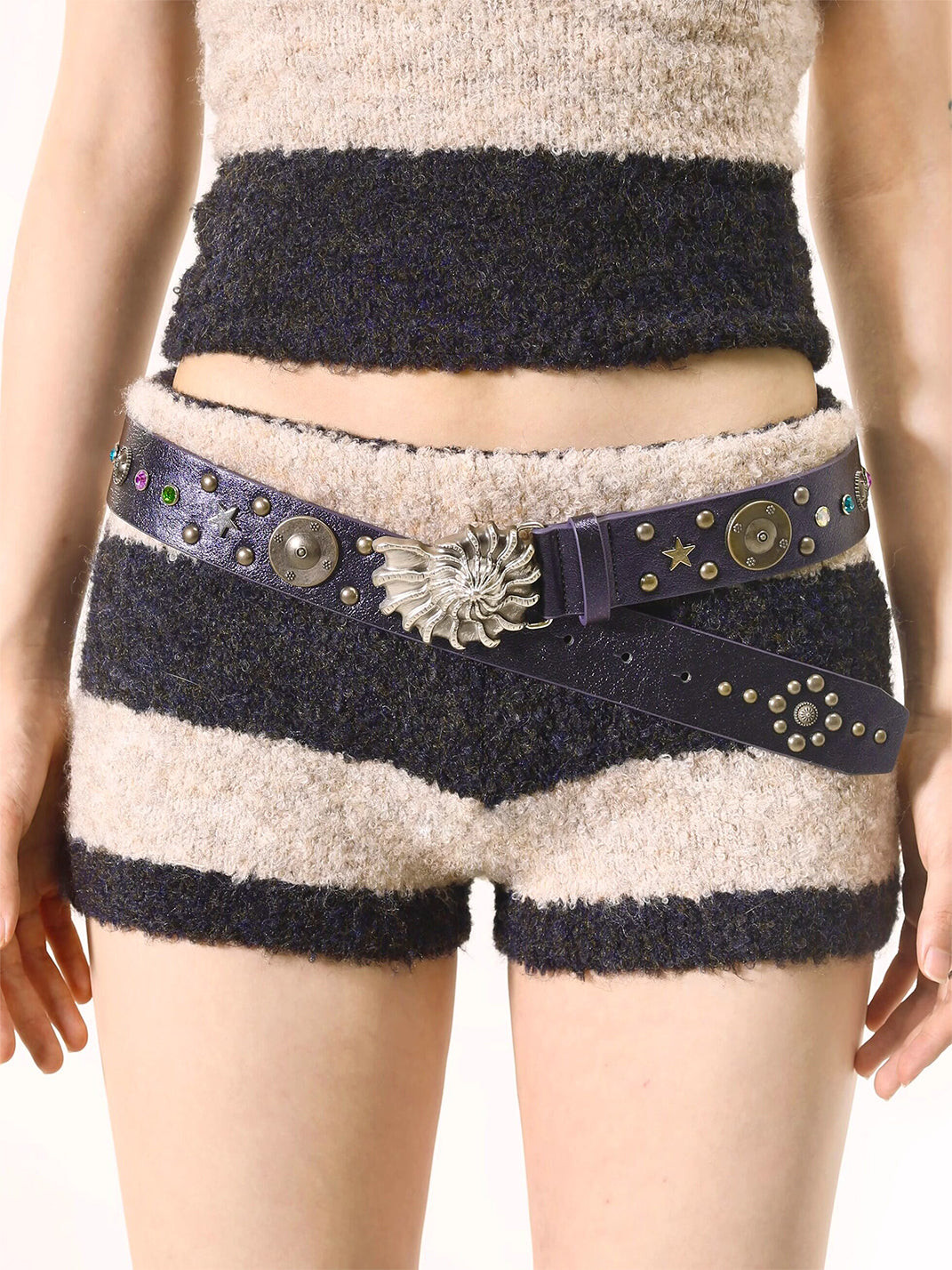 LIMBOWEB | Conch-Shaped Rhinestone Rivet Belt Skip to content