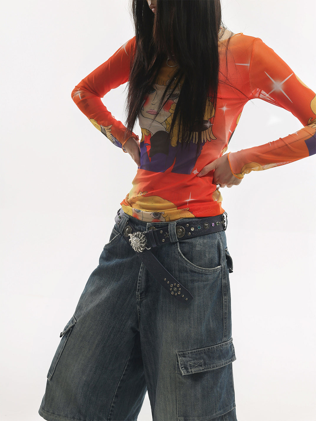 LIMBOWEB | Conch-Shaped Rhinestone Rivet Belt