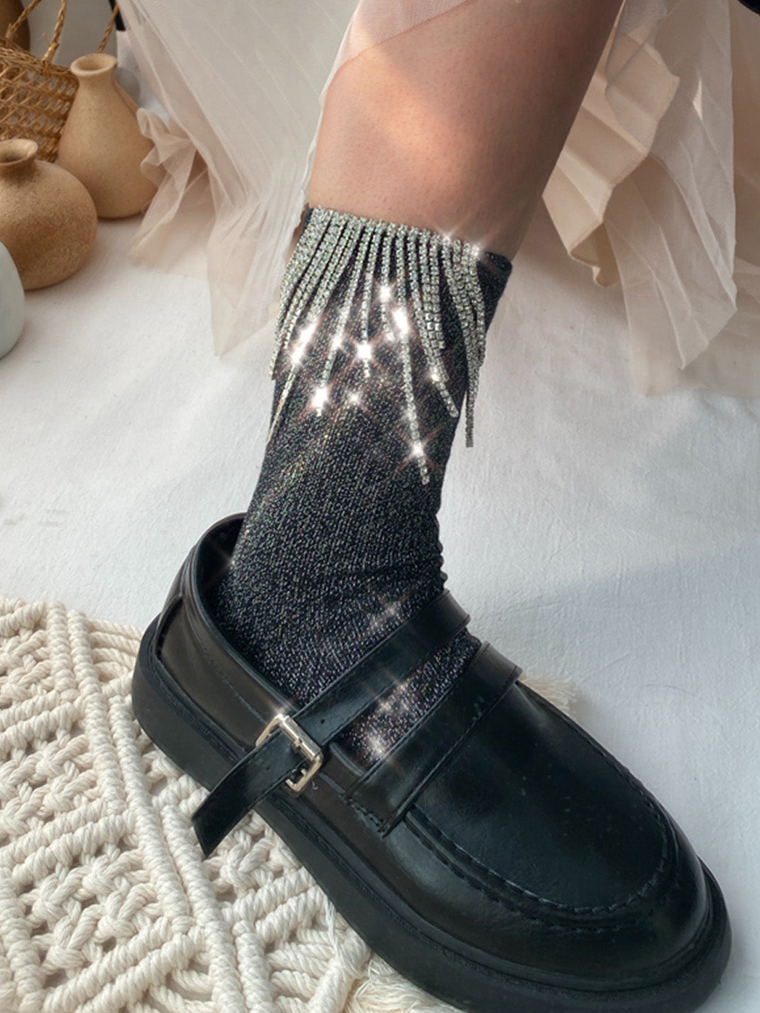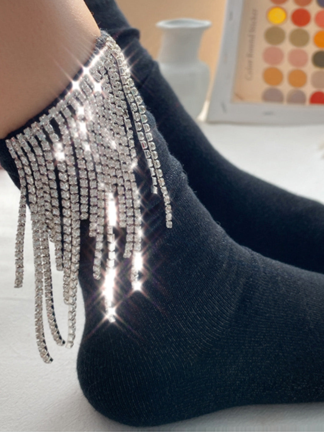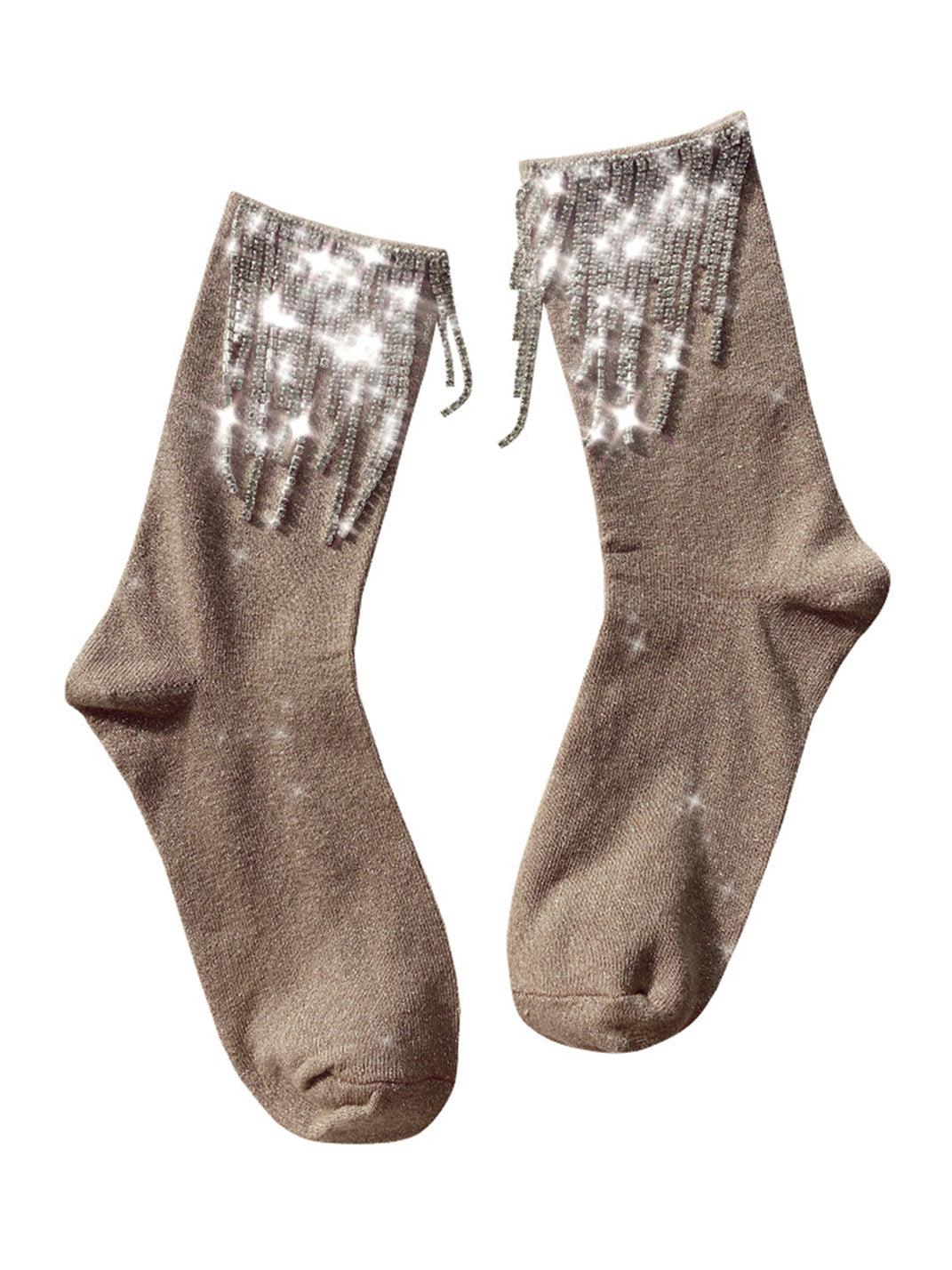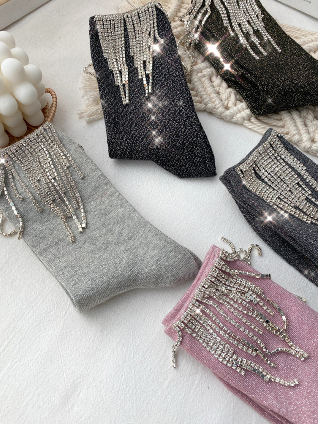 LWZW丨Shiny Rhinestone Tassel Mid-Calf Socks Skip to content