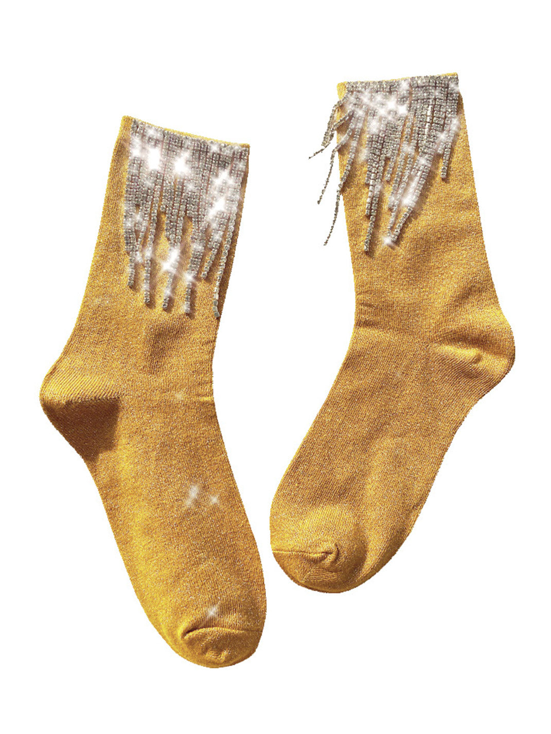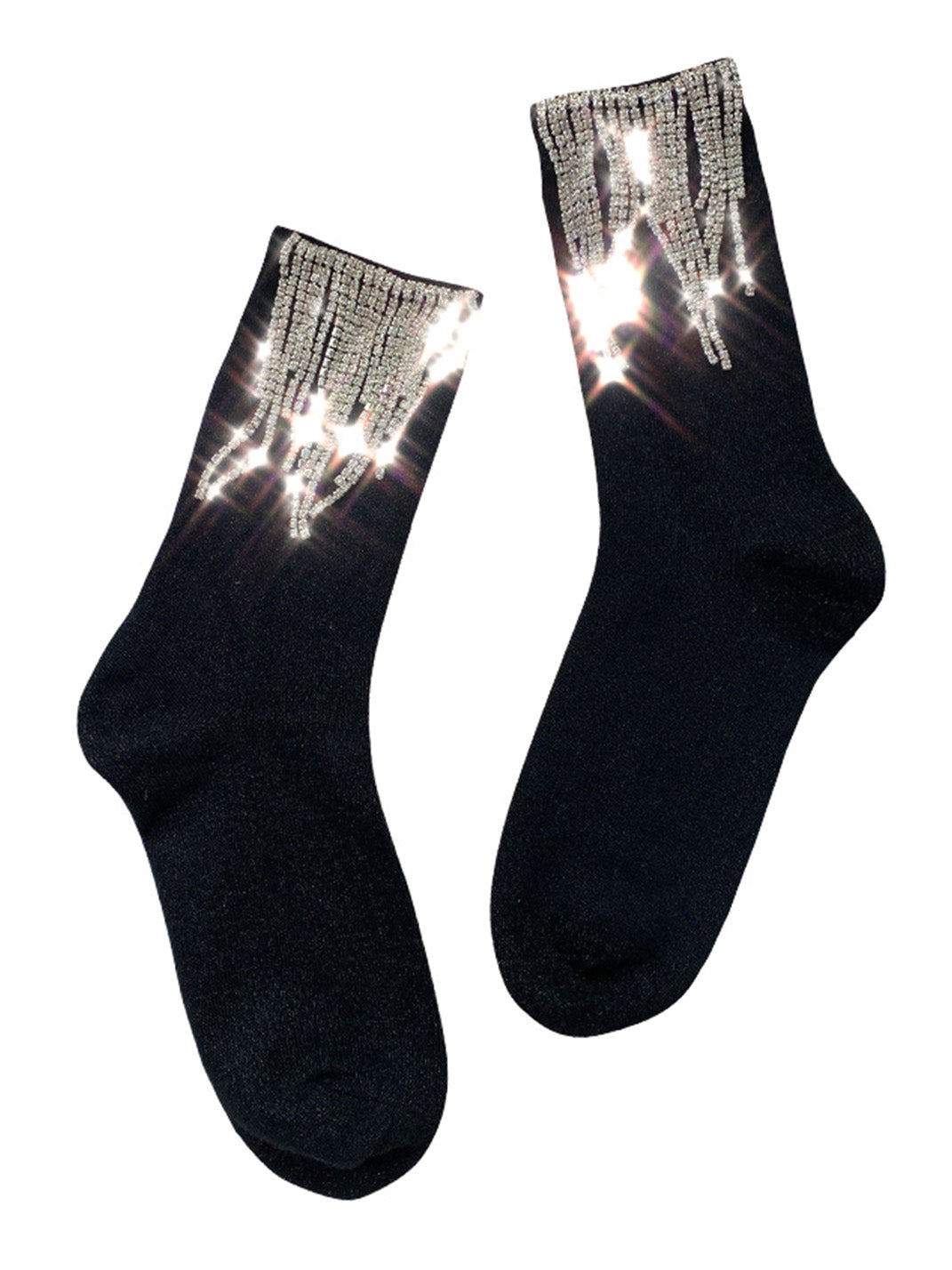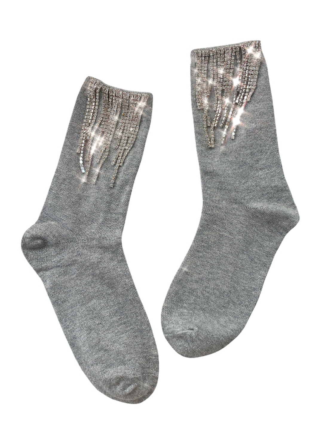 LWZW丨Shiny Rhinestone Tassel Mid-Calf Socks Skip to content