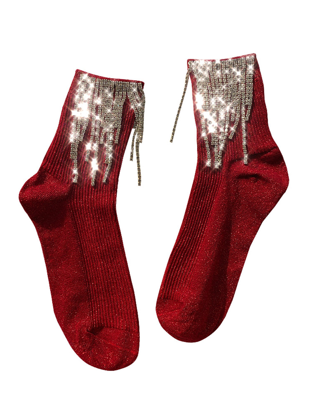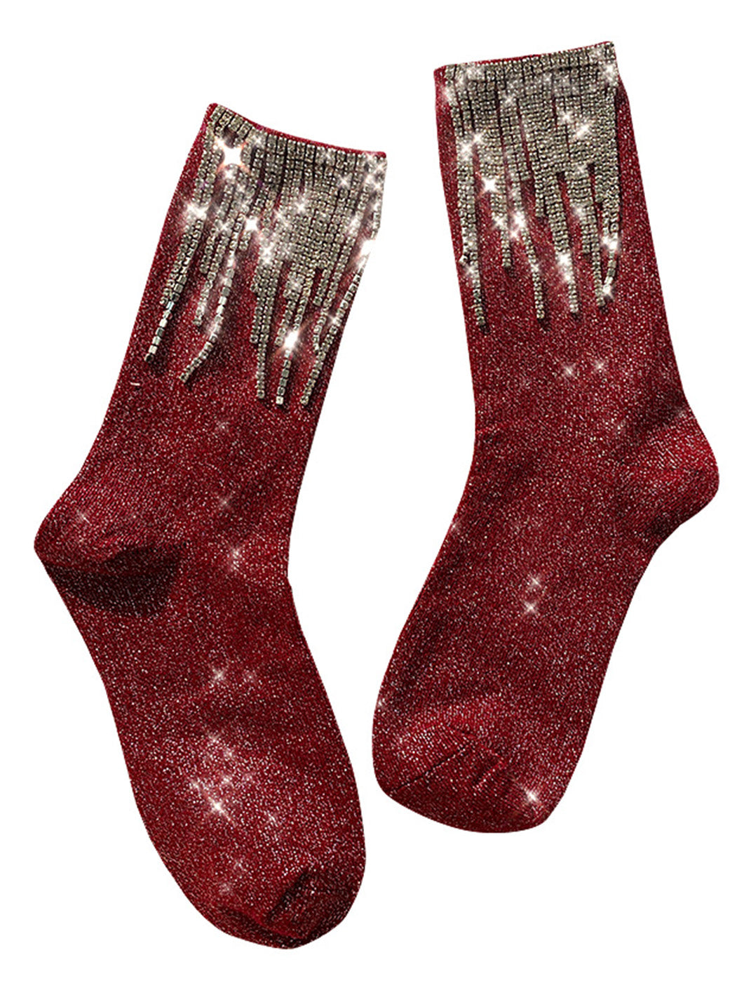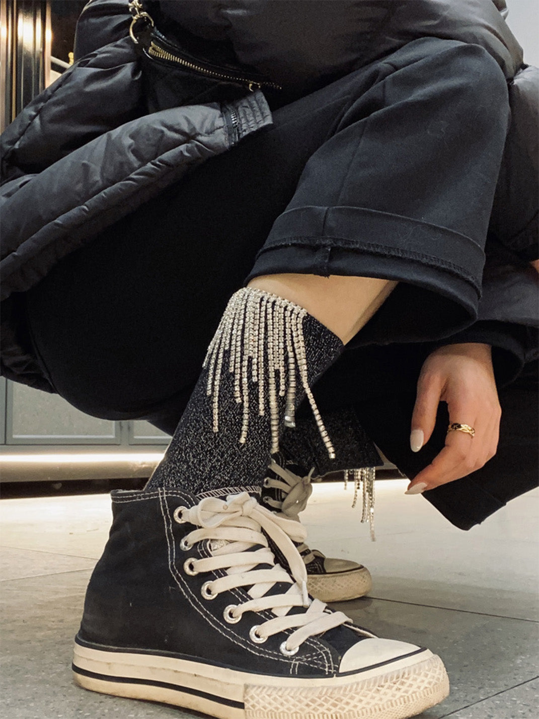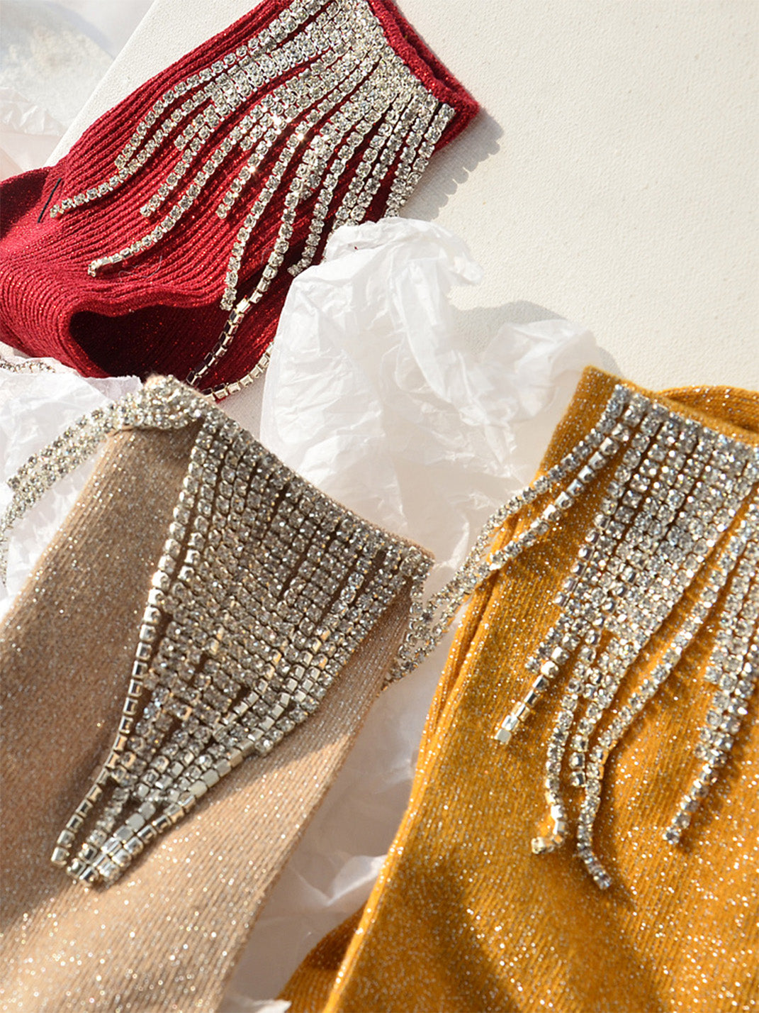 LWZW丨Shiny Rhinestone Tassel Mid-Calf Socks Skip to content