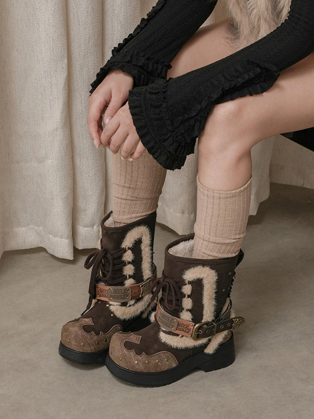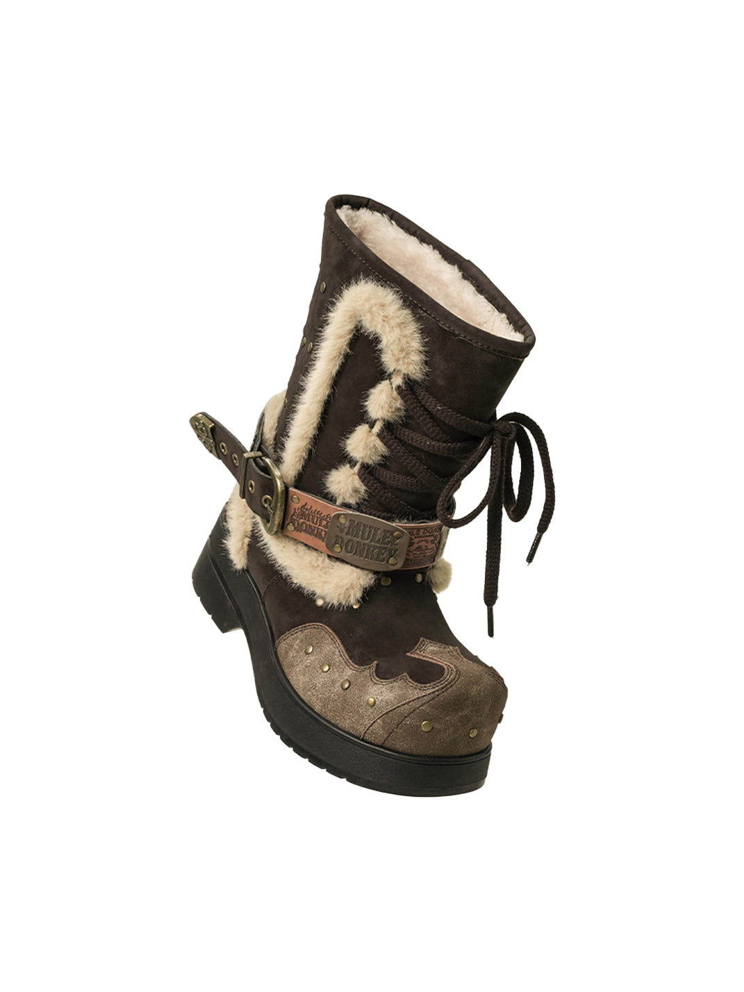 MULE DONKEY | Retro Western Lace-up Plush Boots Skip to content