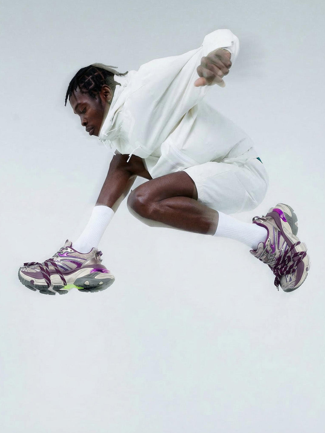 A bold fusion of chunky dad shoe aesthetics and deconstructed, heavy-duty soles¡ªprojecting impact, strength, and style. -