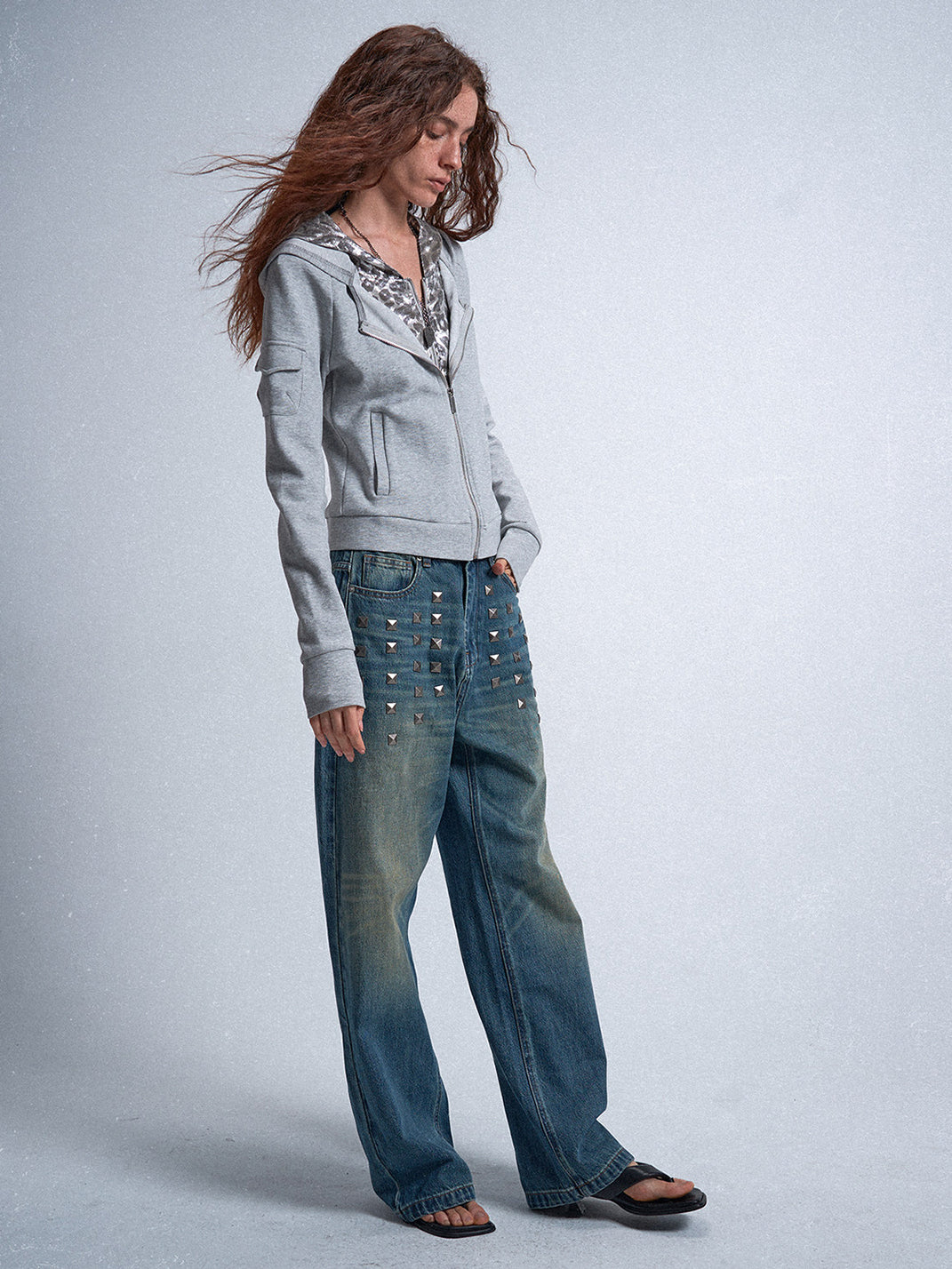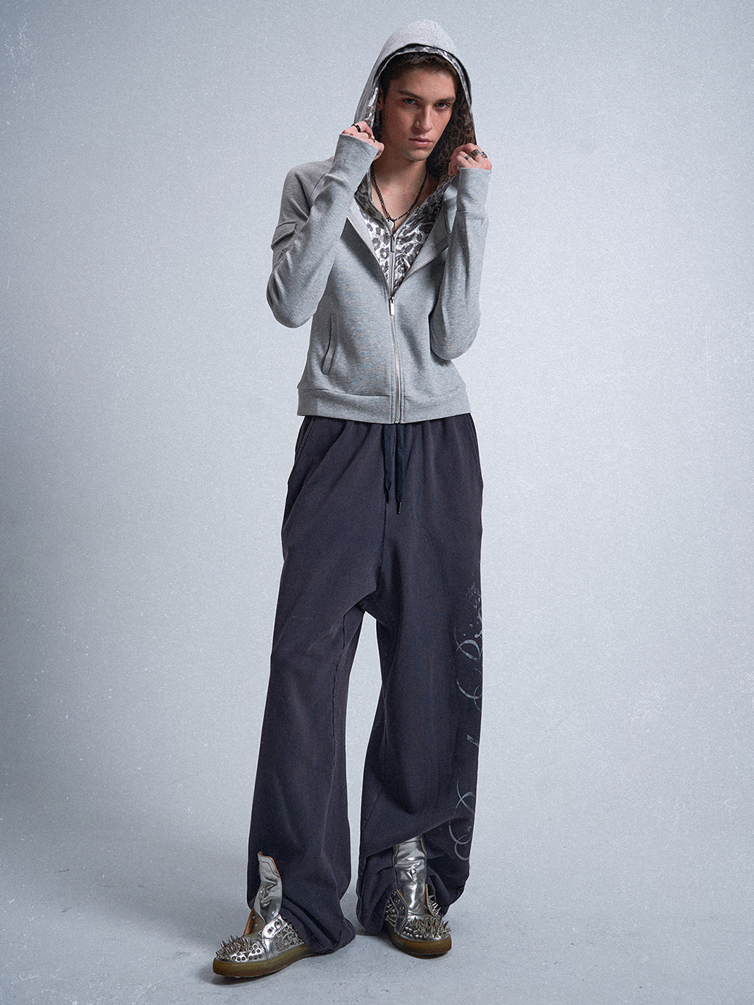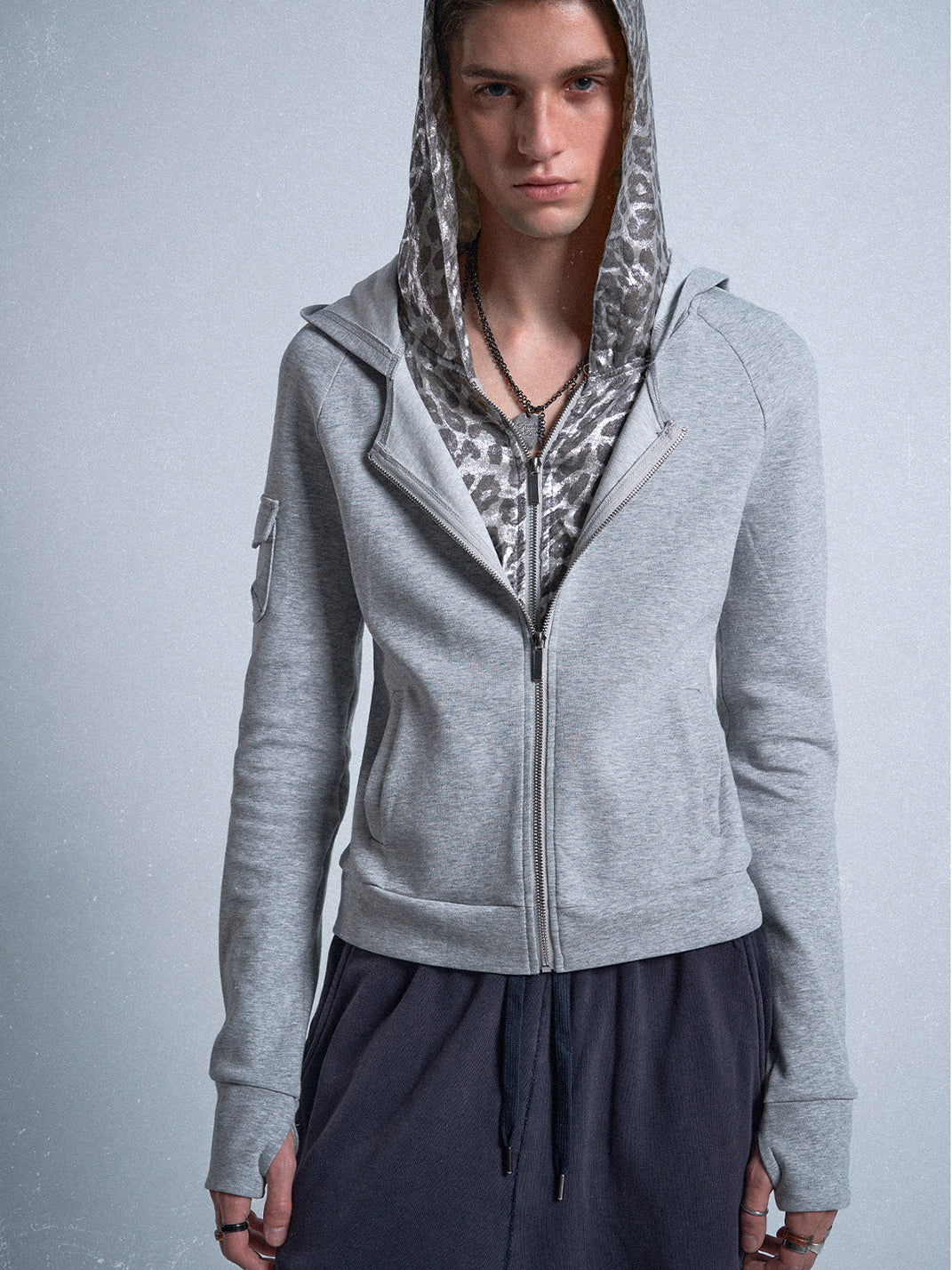 noEmosen | Faux Two-piece Silver Leopard Print Sweatshirt