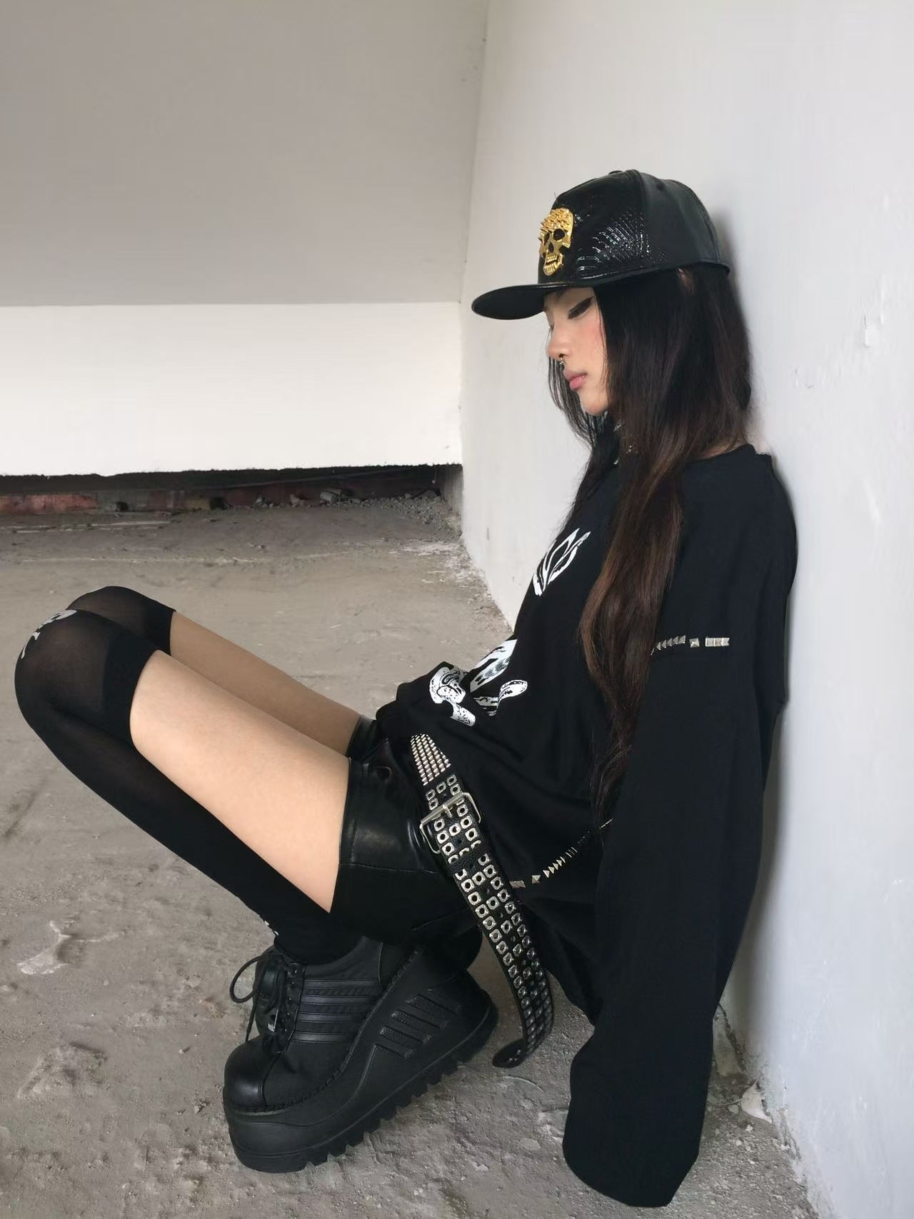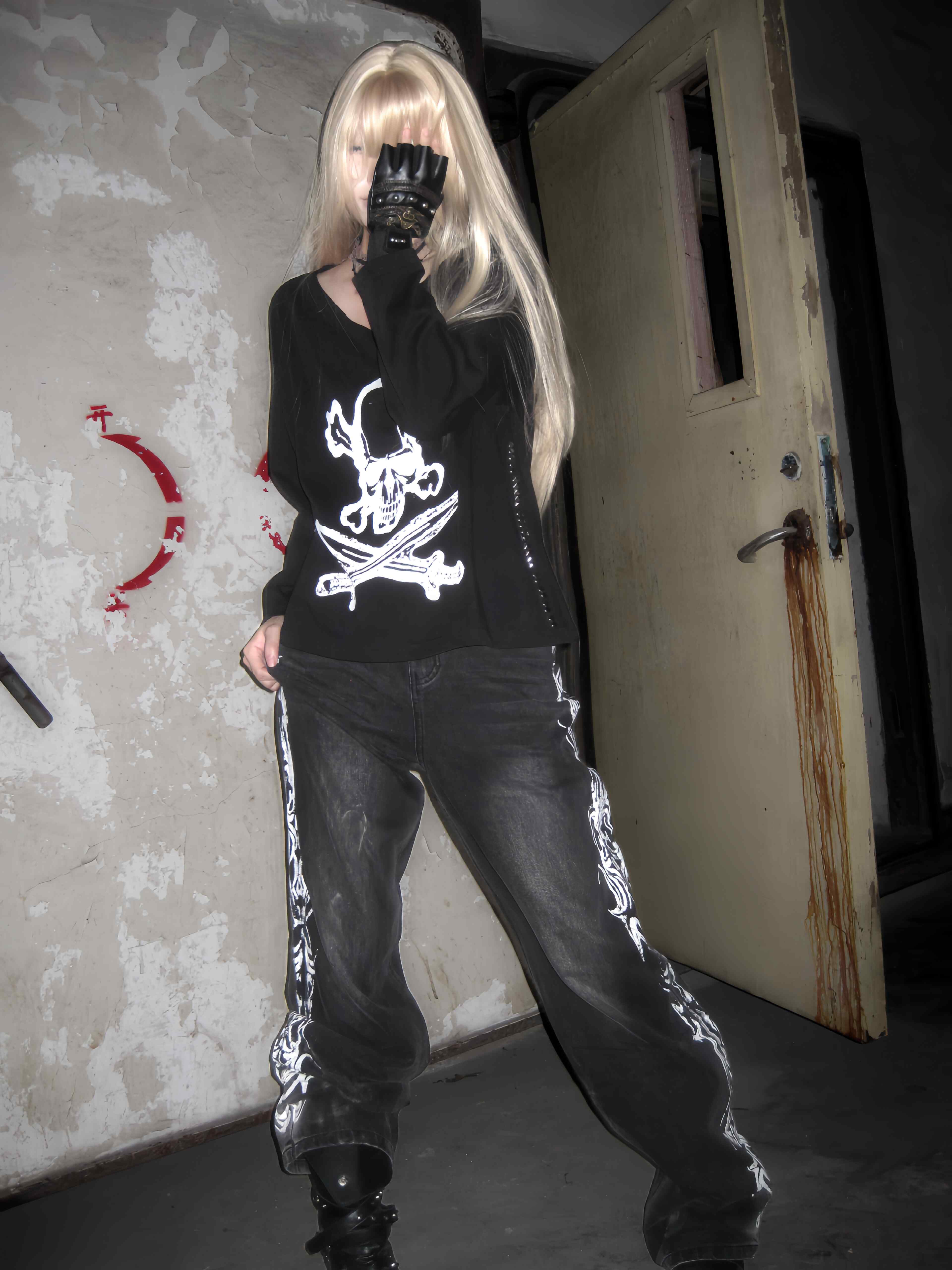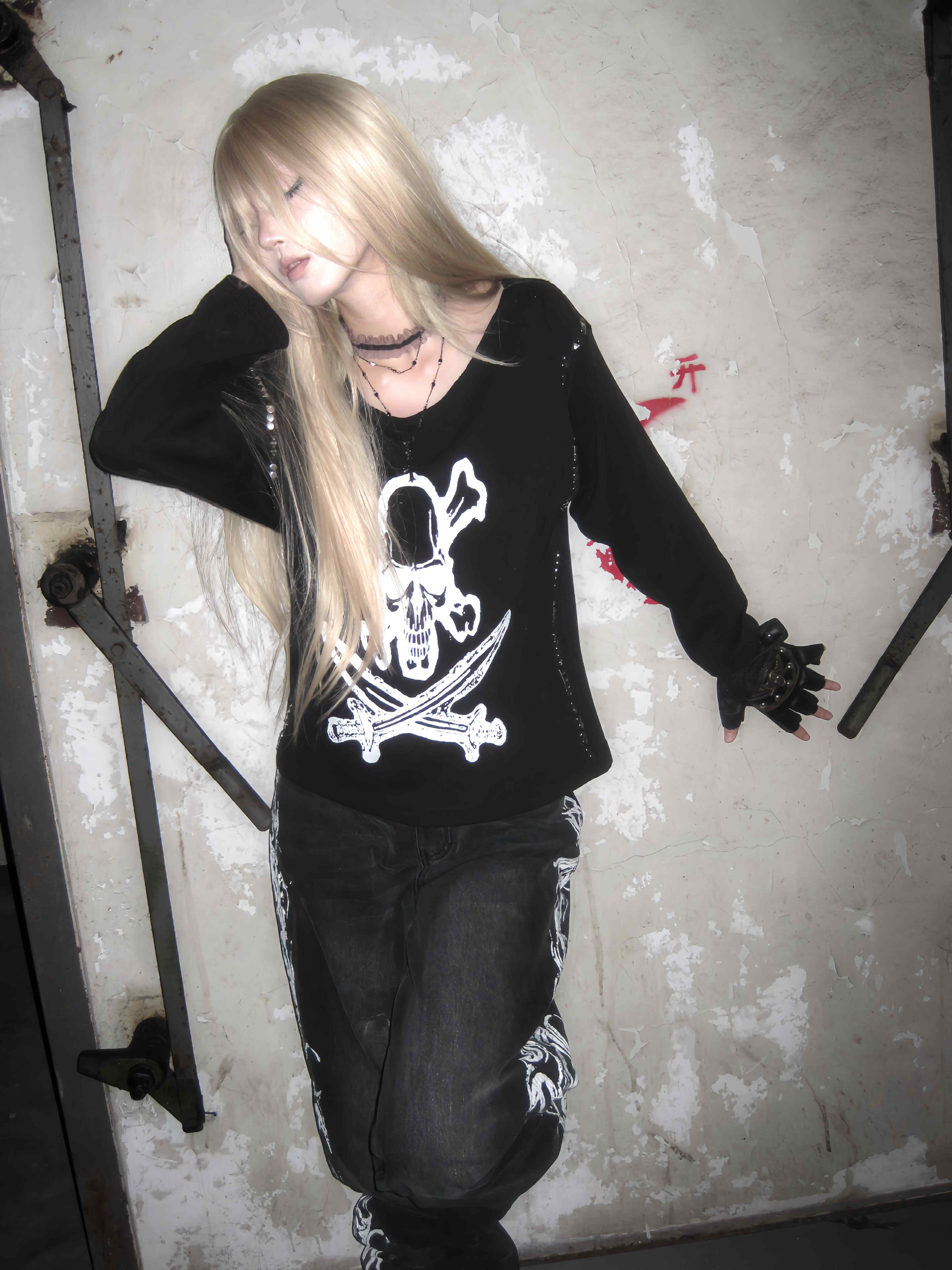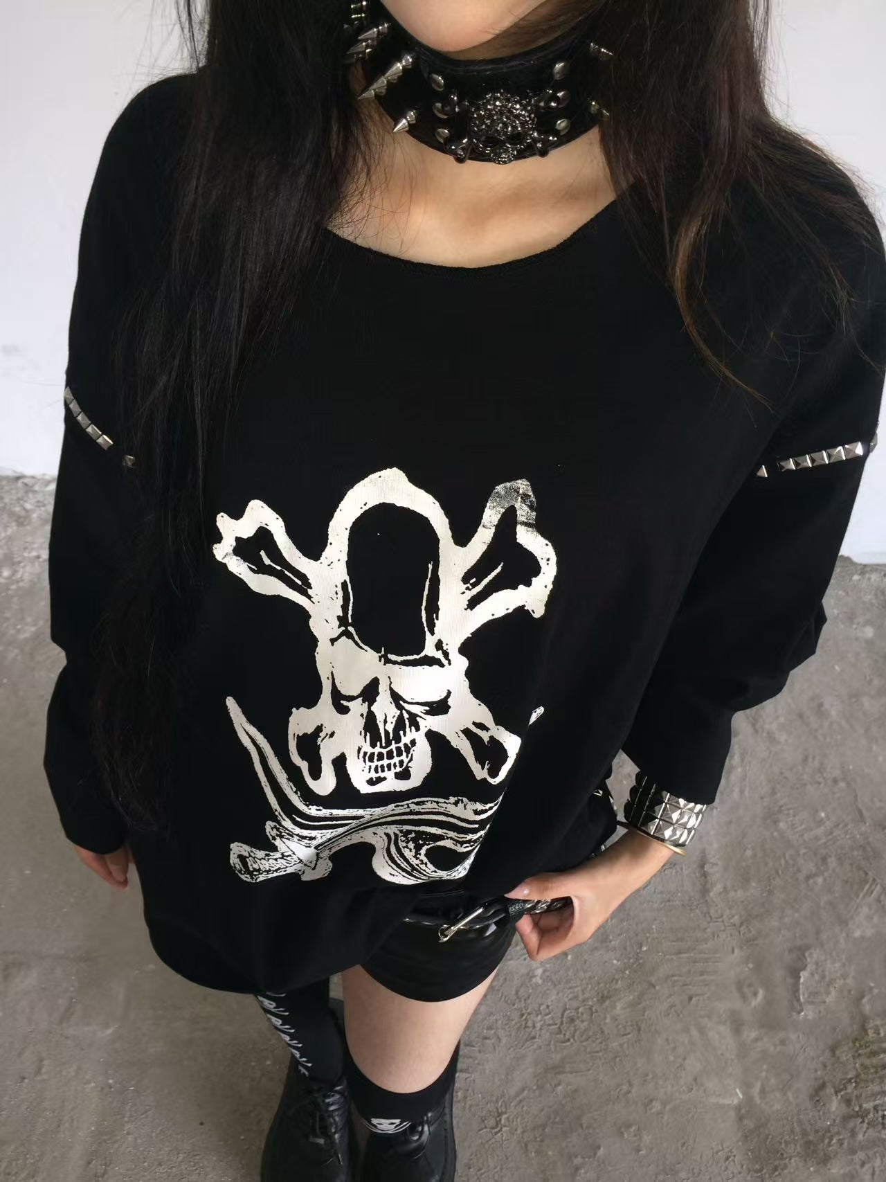 NOTHINGNESS WORLD | Double Knife Skull Studded Long Sleeve