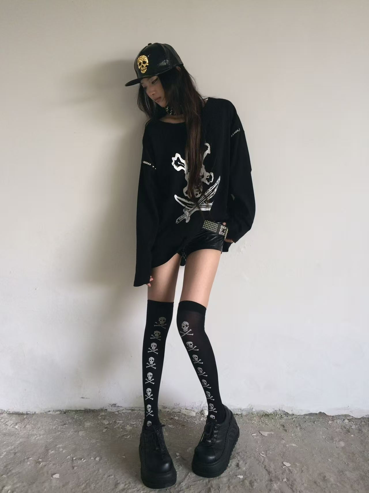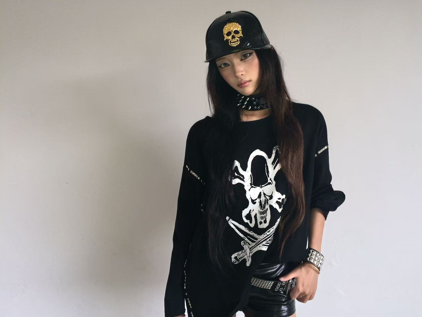 NOTHINGNESS WORLD | Double Knife Skull Studded Long Sleeve Skip to content