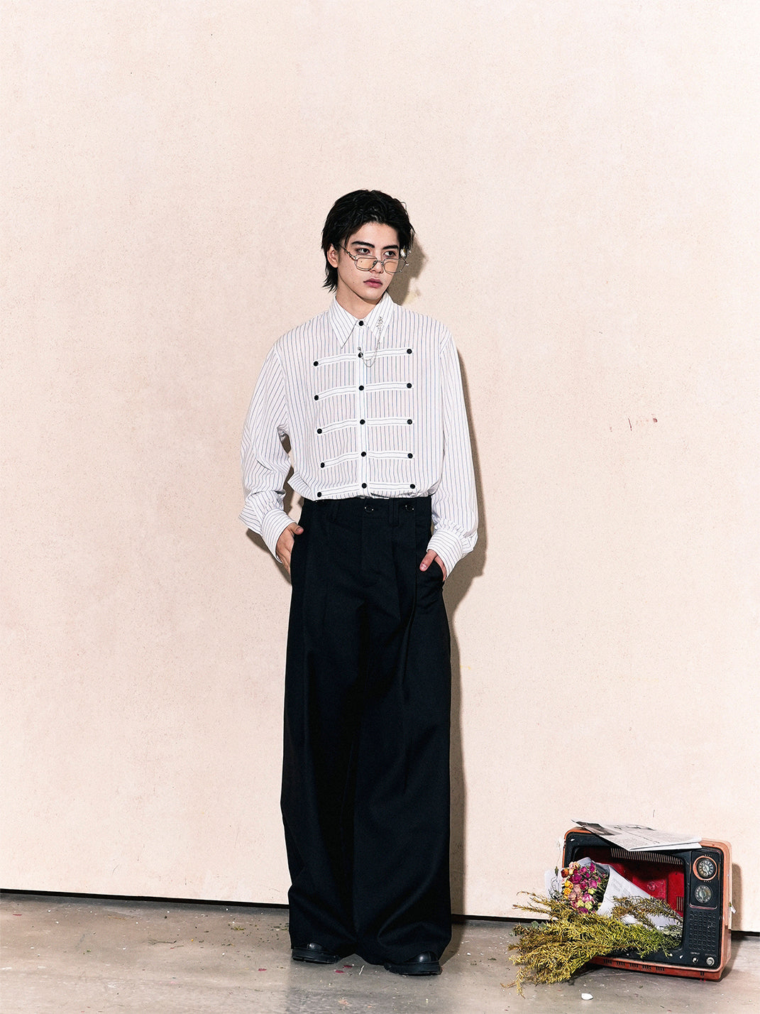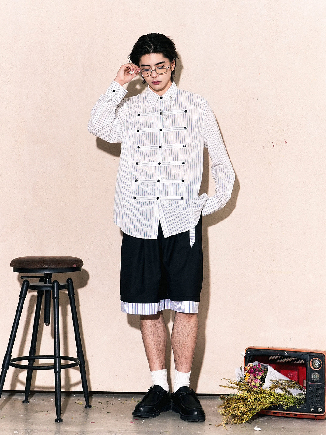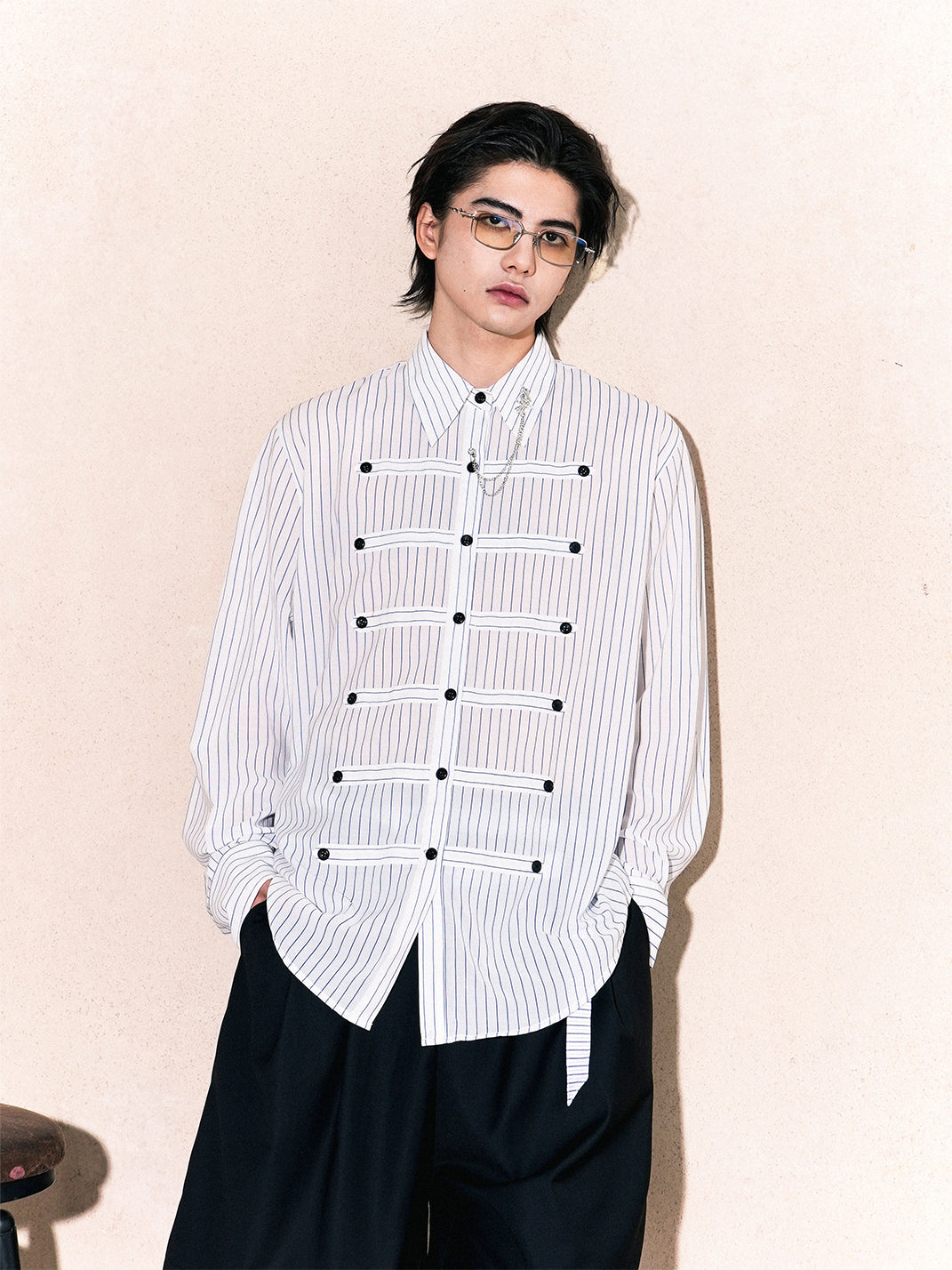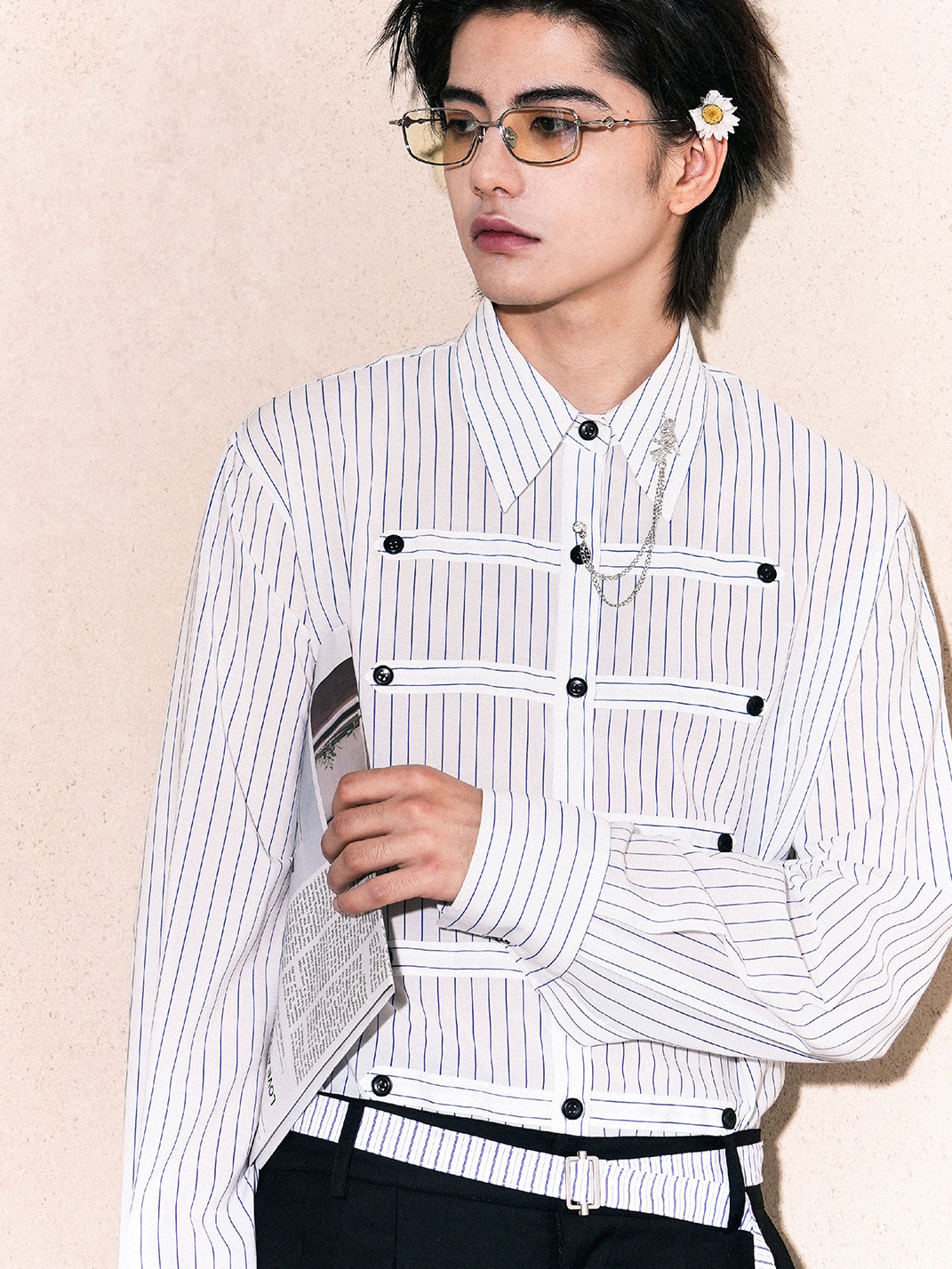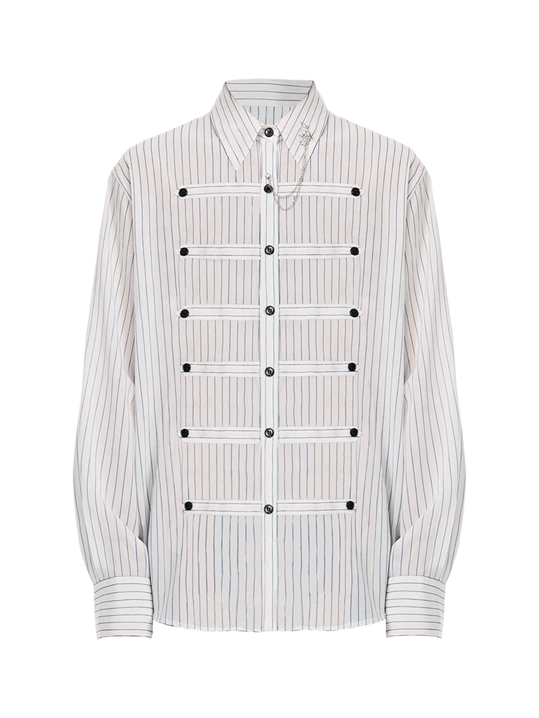 OIPWORD | Courtly Multi-Strap Pinstriped Shirt
