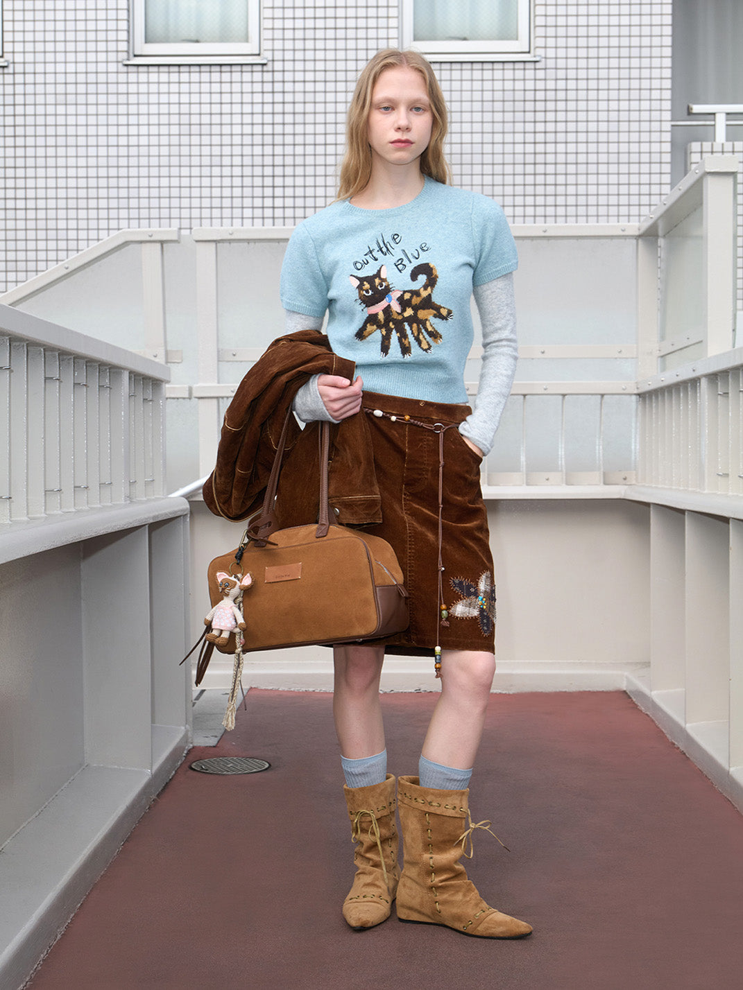 Outthe Blue | Cat Embroidered Fake Two-piece Sweater Skip to content